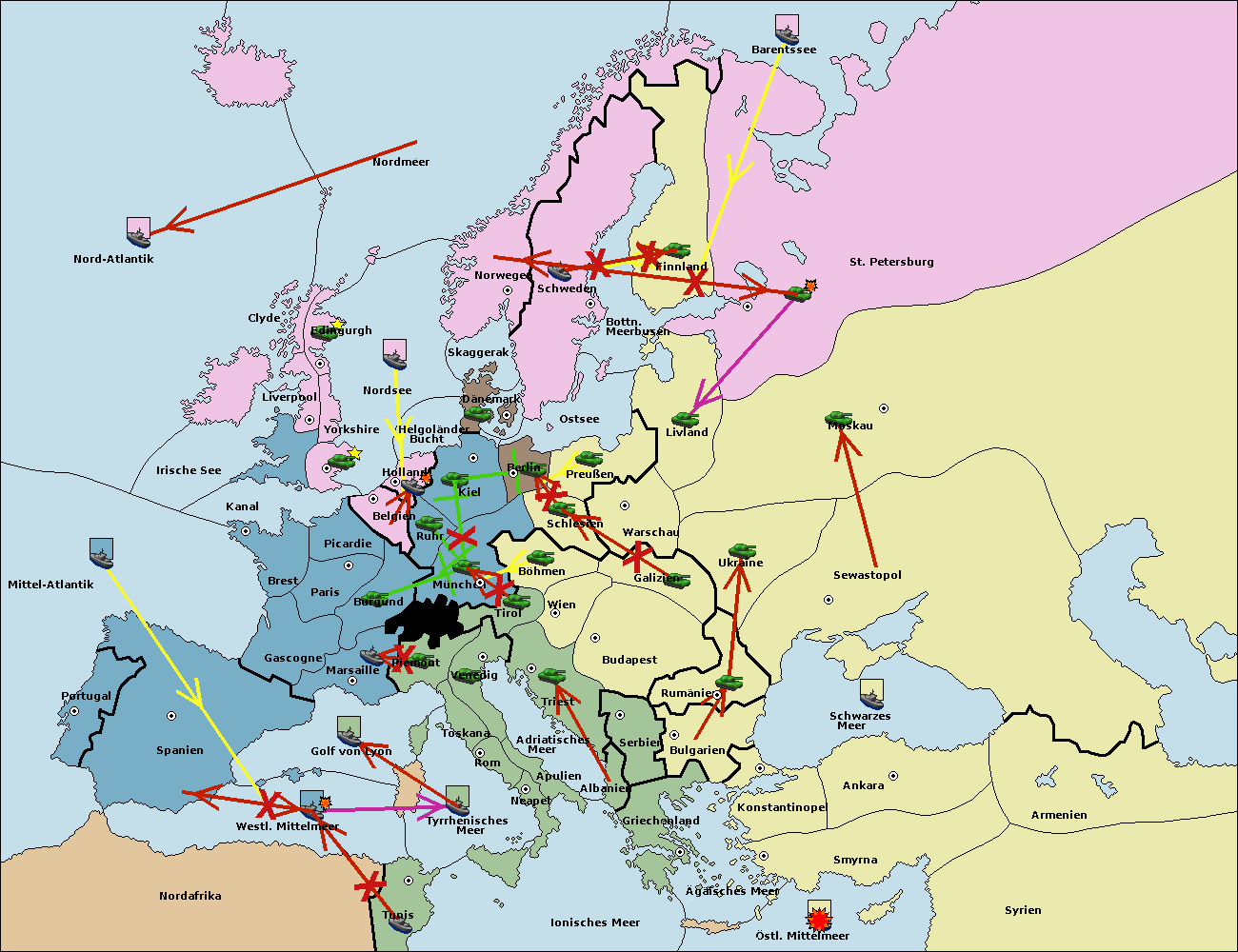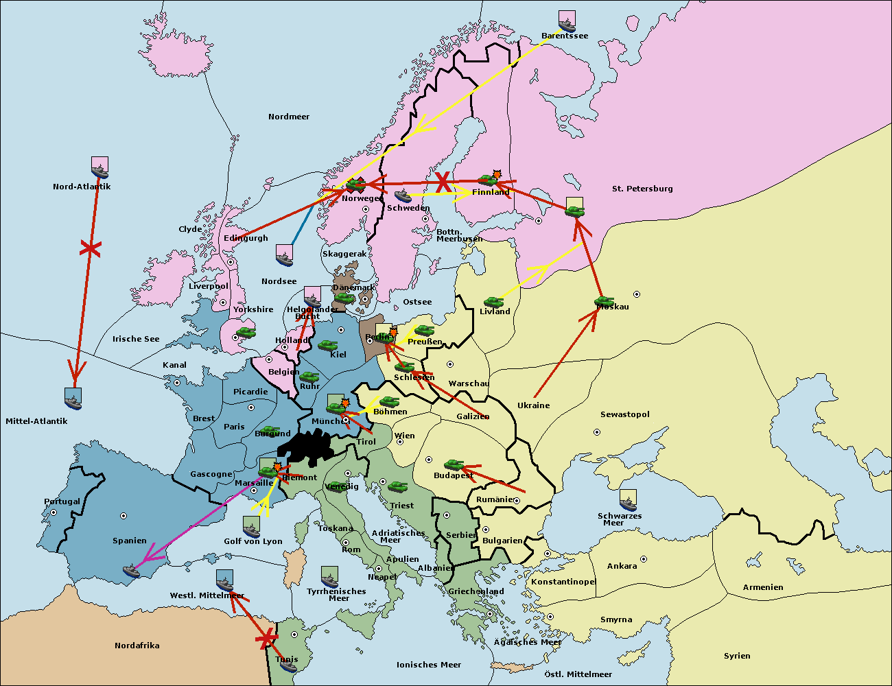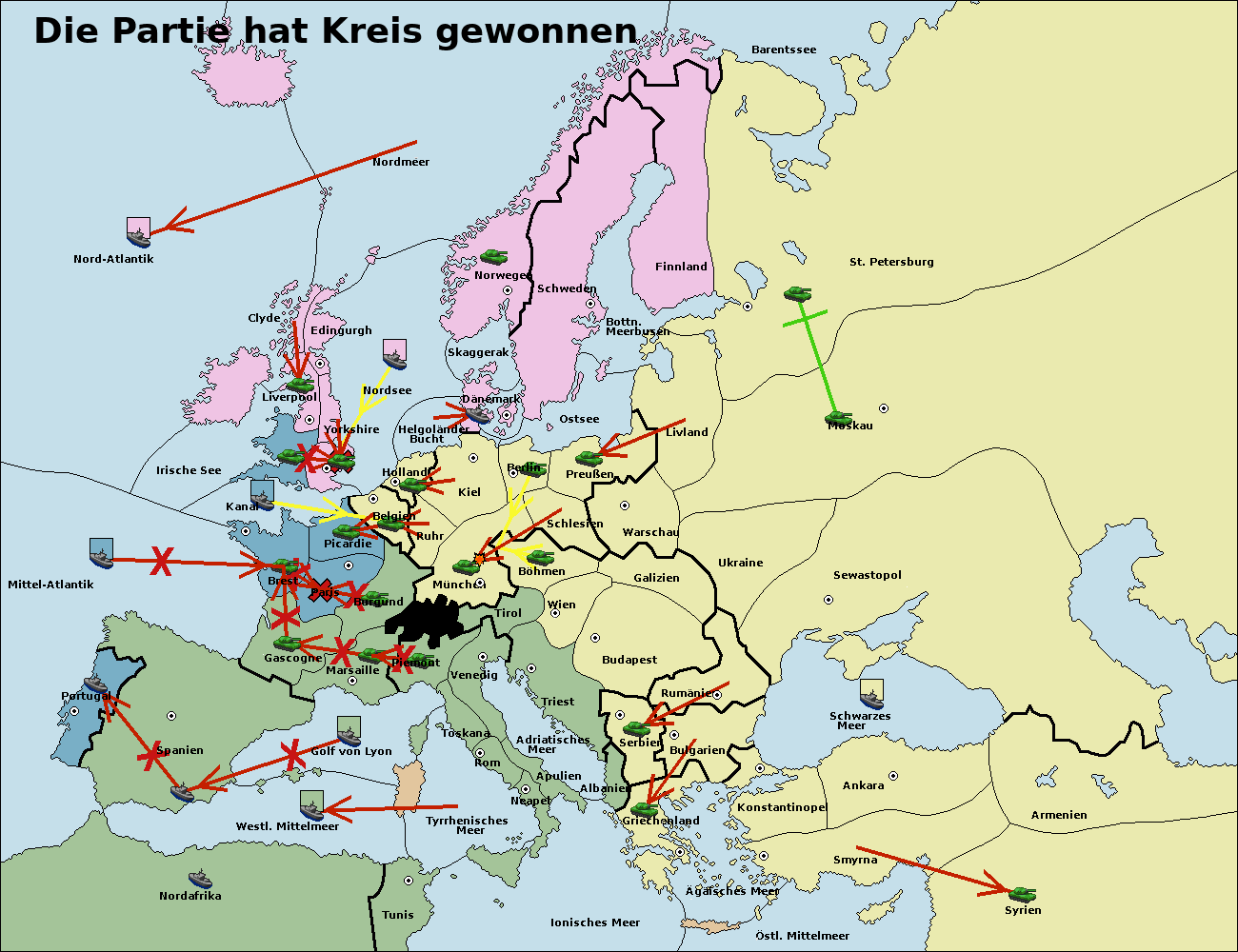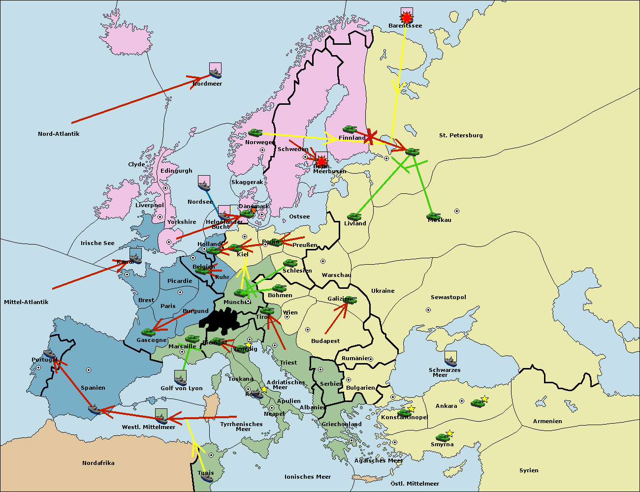 • Die Flotte in St. Petersburg (Nordküste) move nach Barentssee.