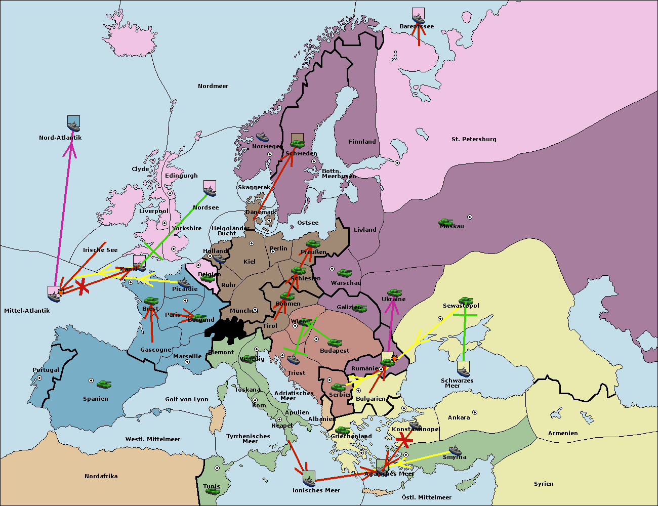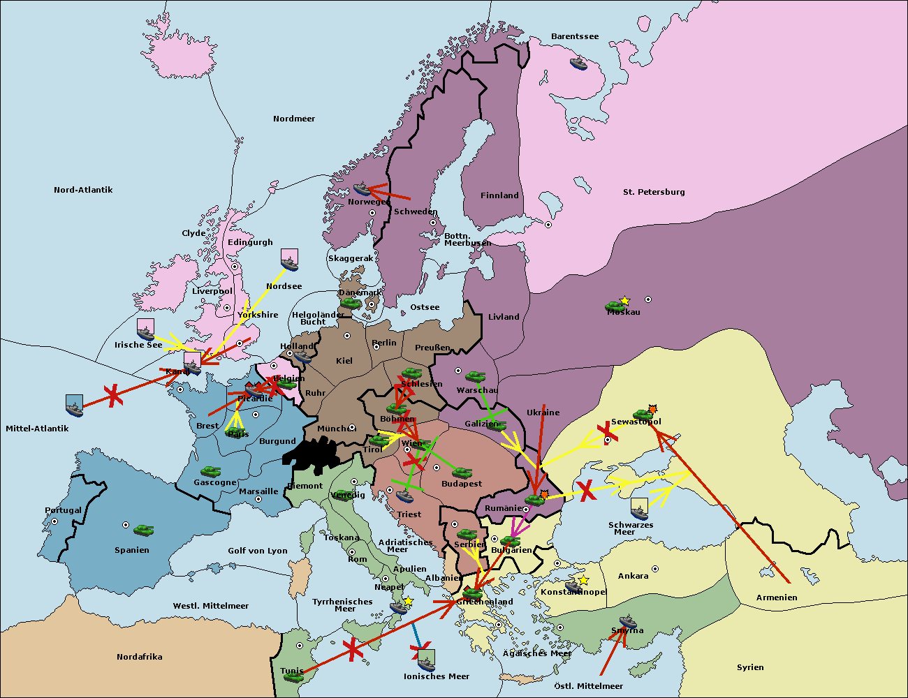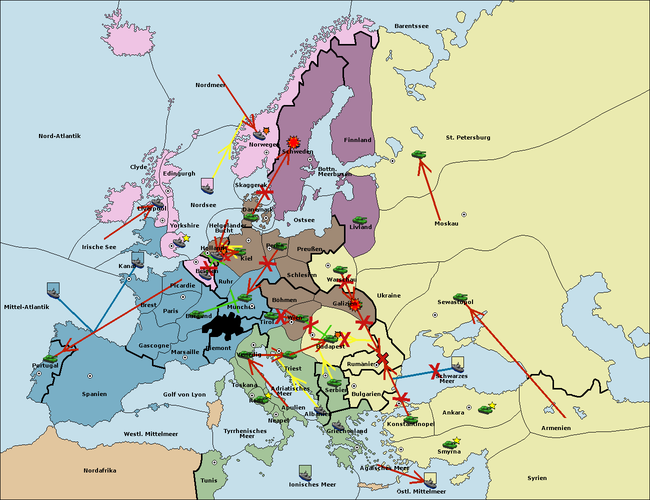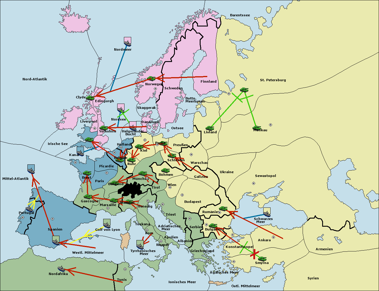 • Die Flotte in St. Petersburg (Nordküste) move nach Barentssee.