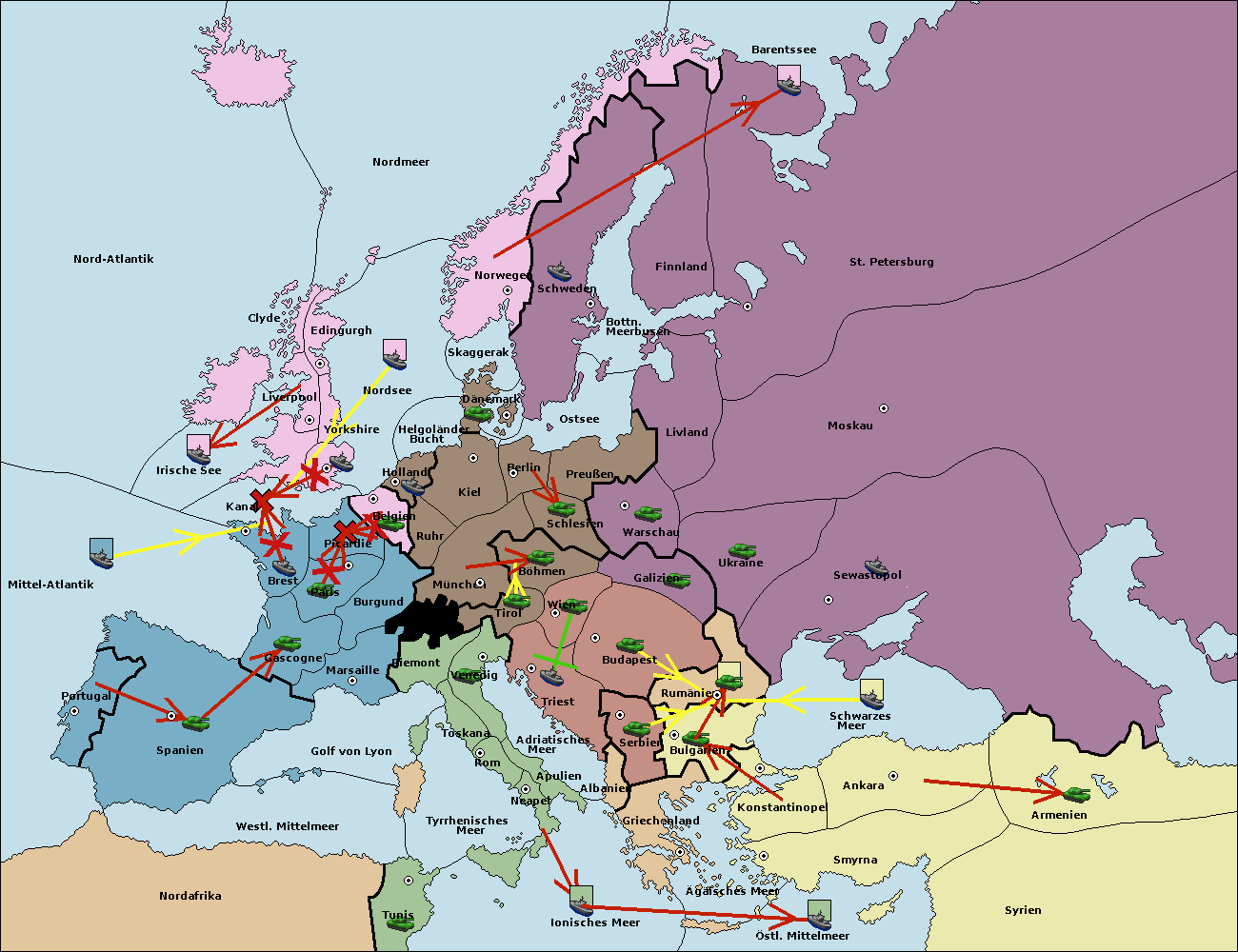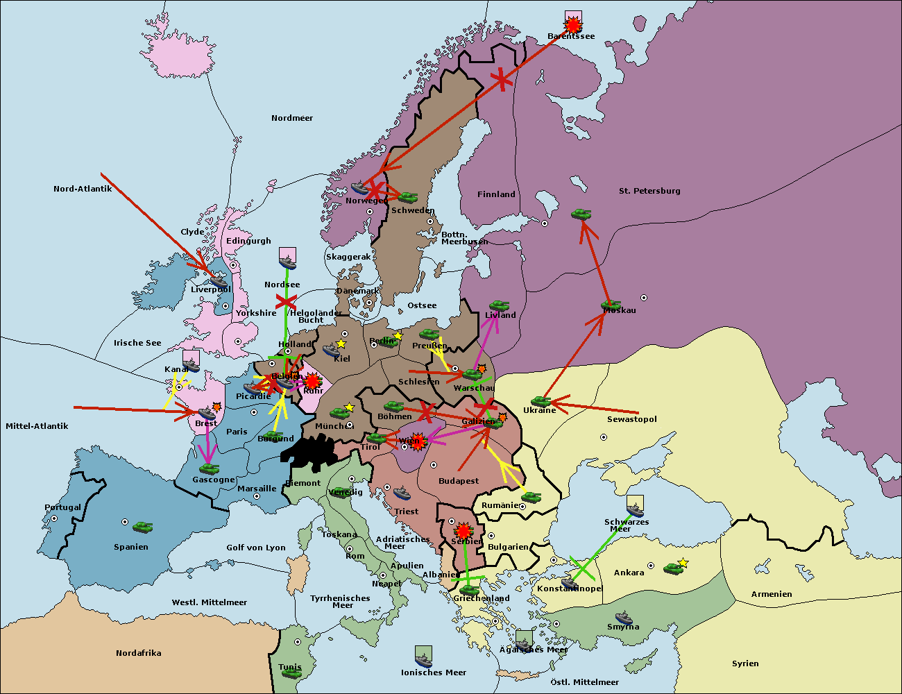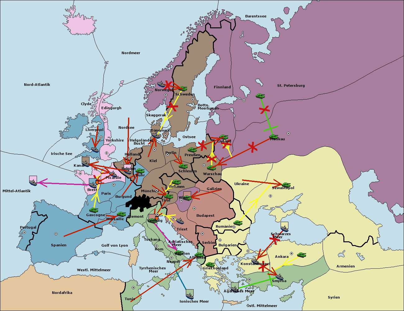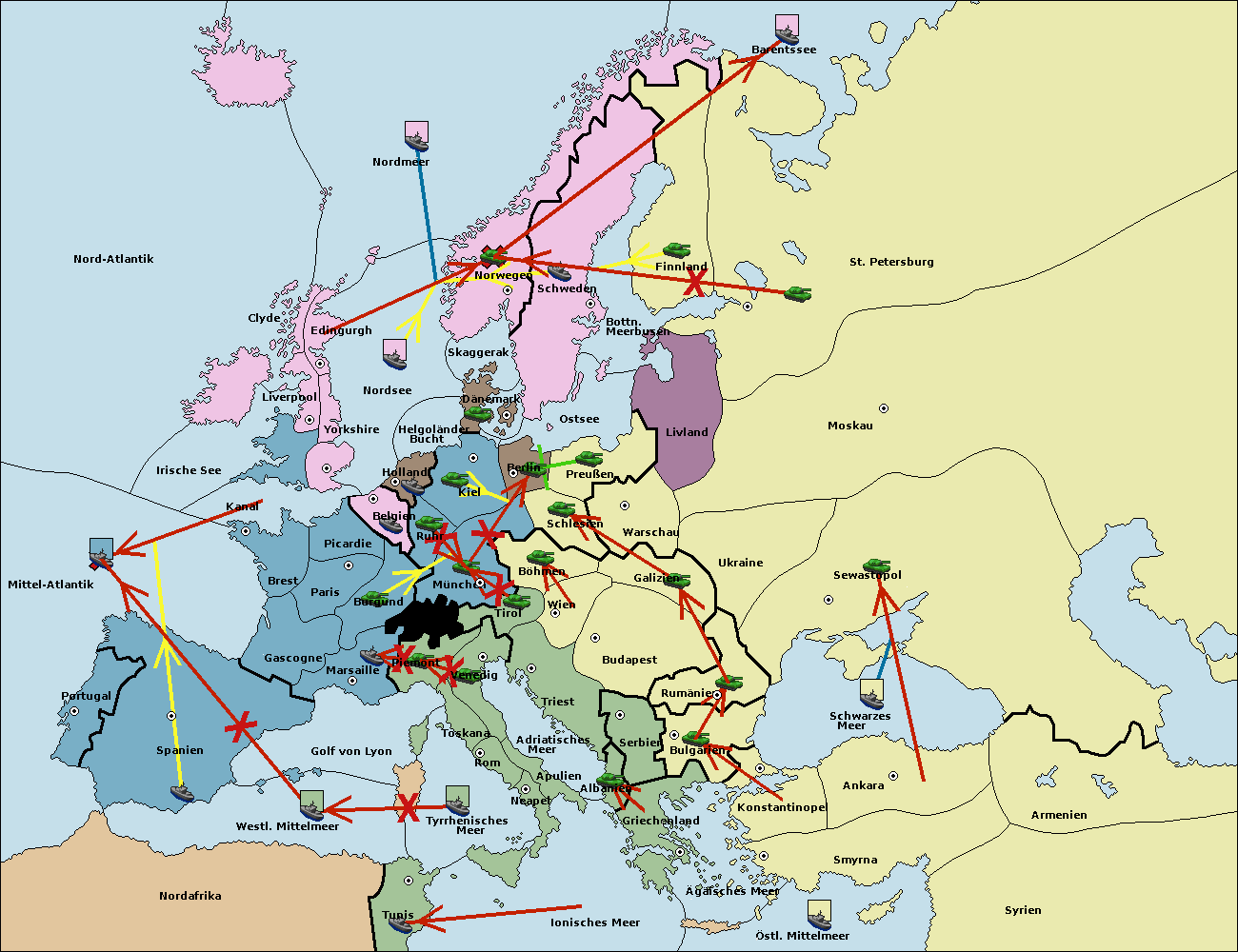 • Die Flotte in St. Petersburg (Nordküste) move nach Barentssee.