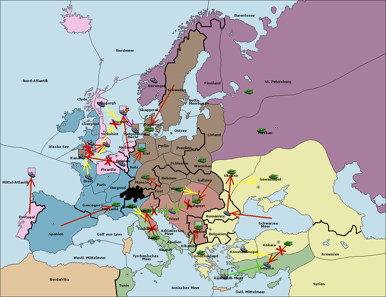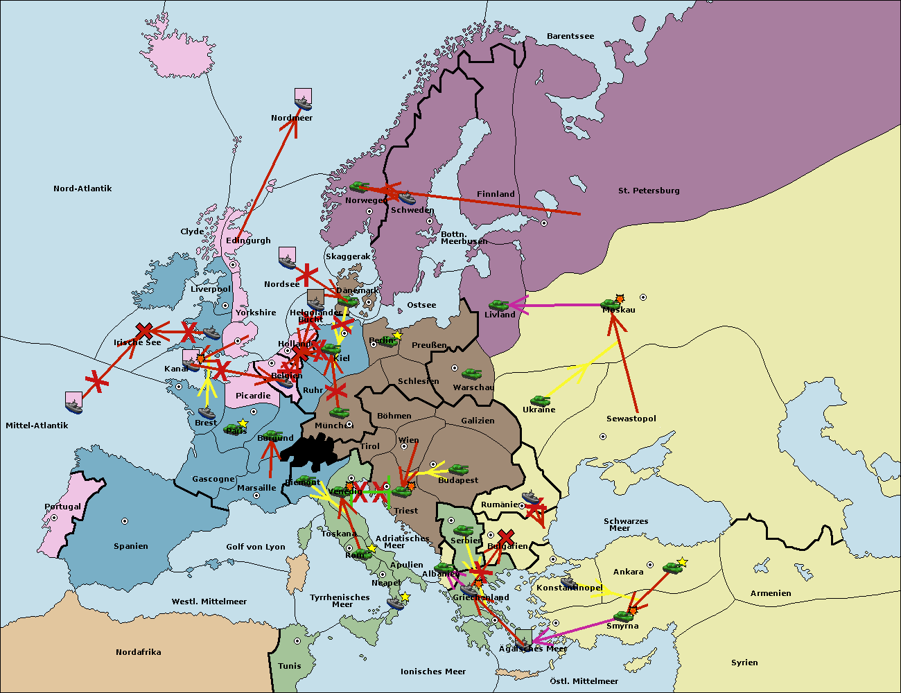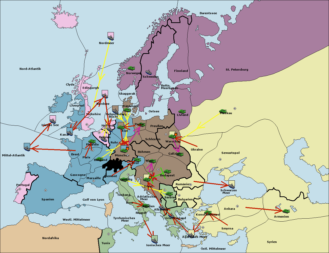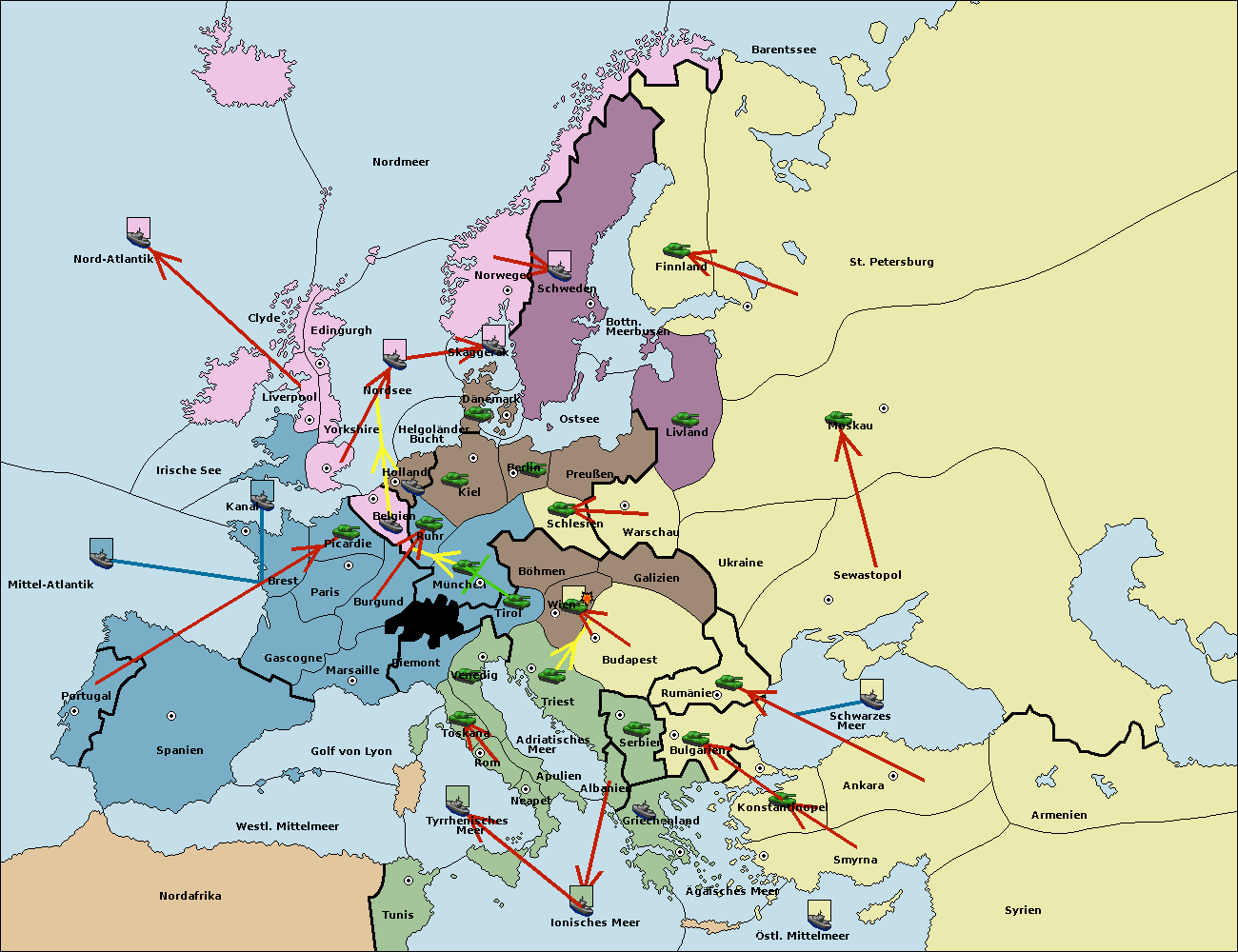 • Die Flotte in St. Petersburg (Nordküste) move nach Barentssee.