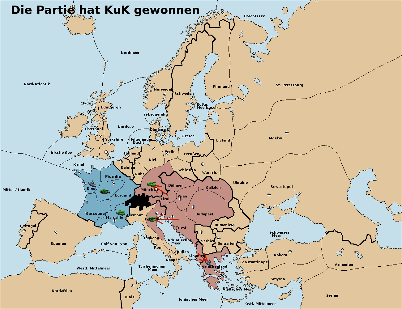 Die Partie hat KuK (1463 D / R100) gewonnen
