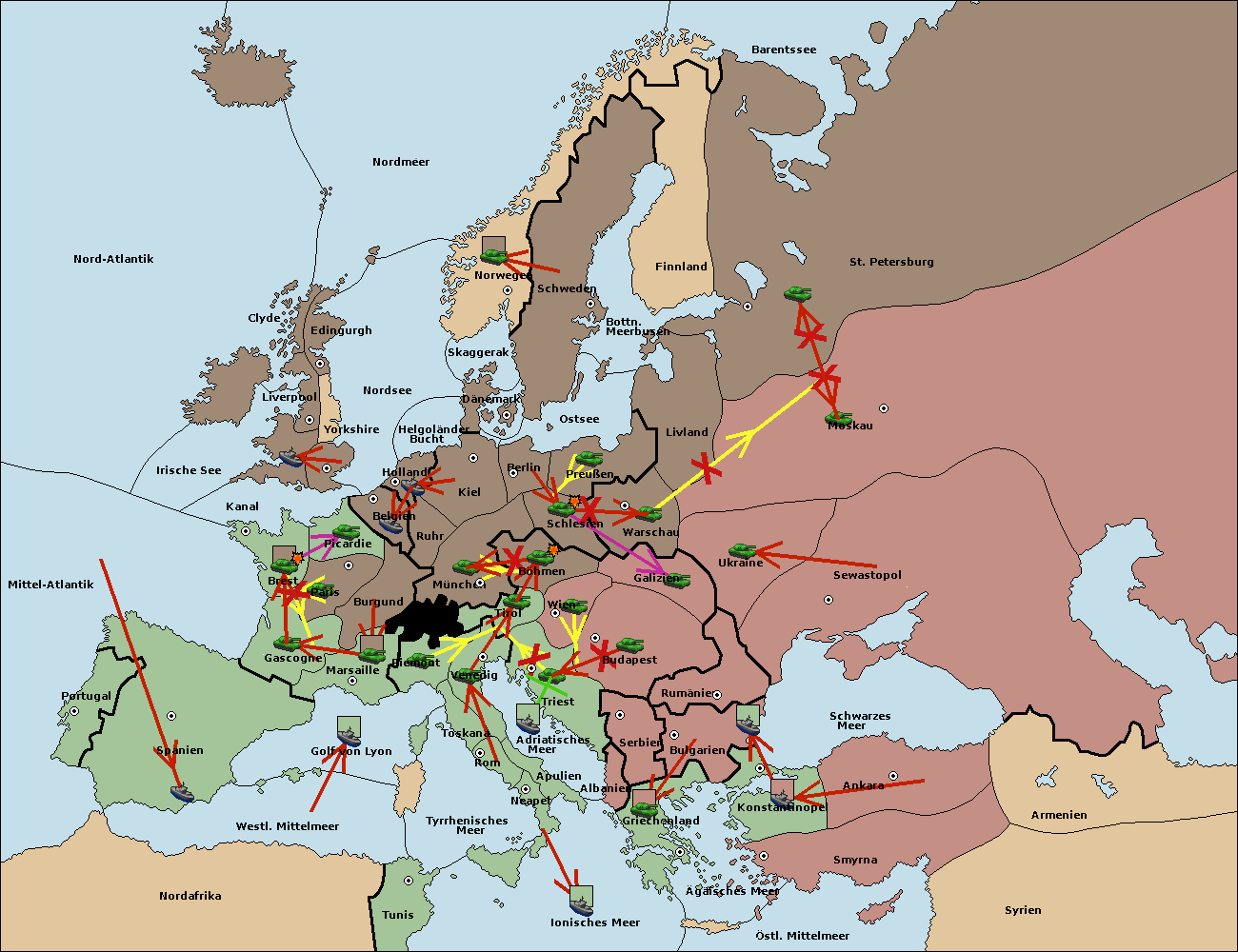 • Die Flotte in Bulgarien (Südküste) move nach Konstantinopel.