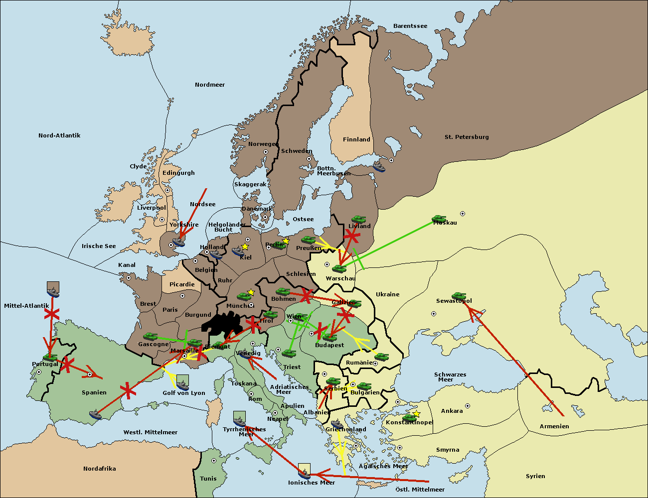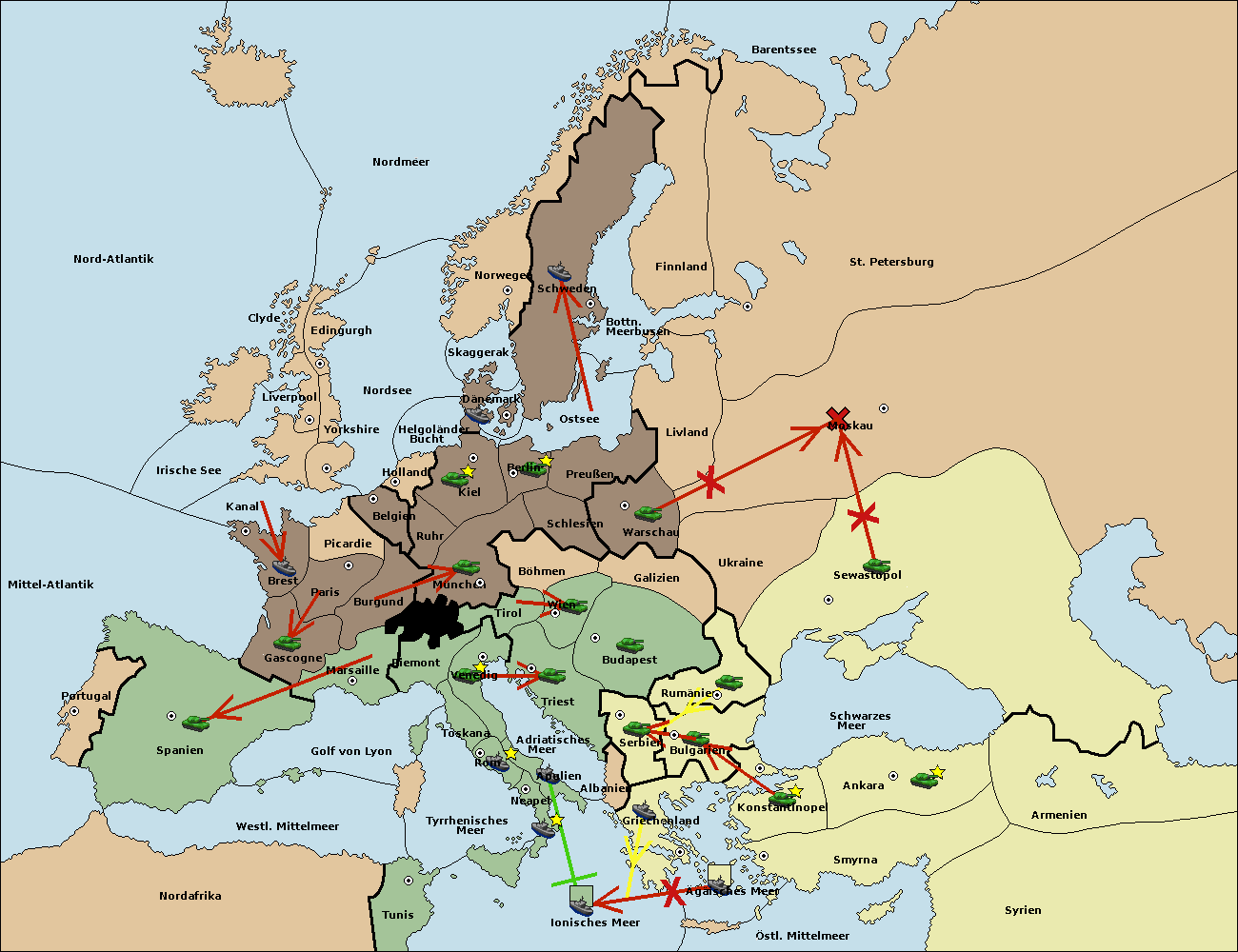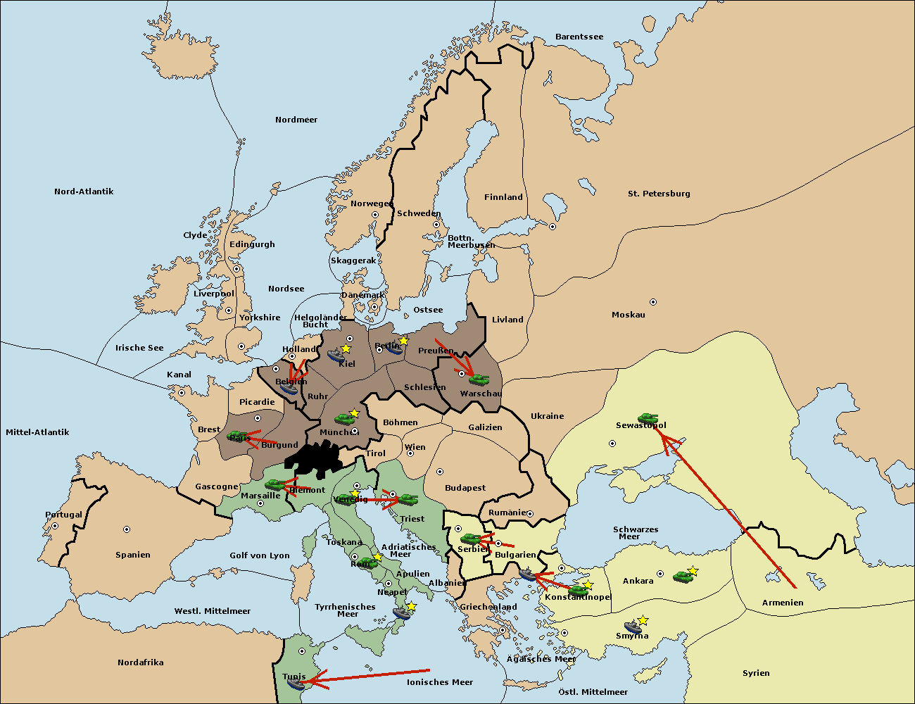 • Die Flotte in Bulgarien (Südküste) move nach Griechenland.