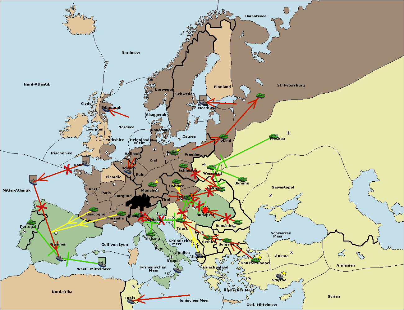 • Die Armee in Triest support move nach Budapest von Serbien.
