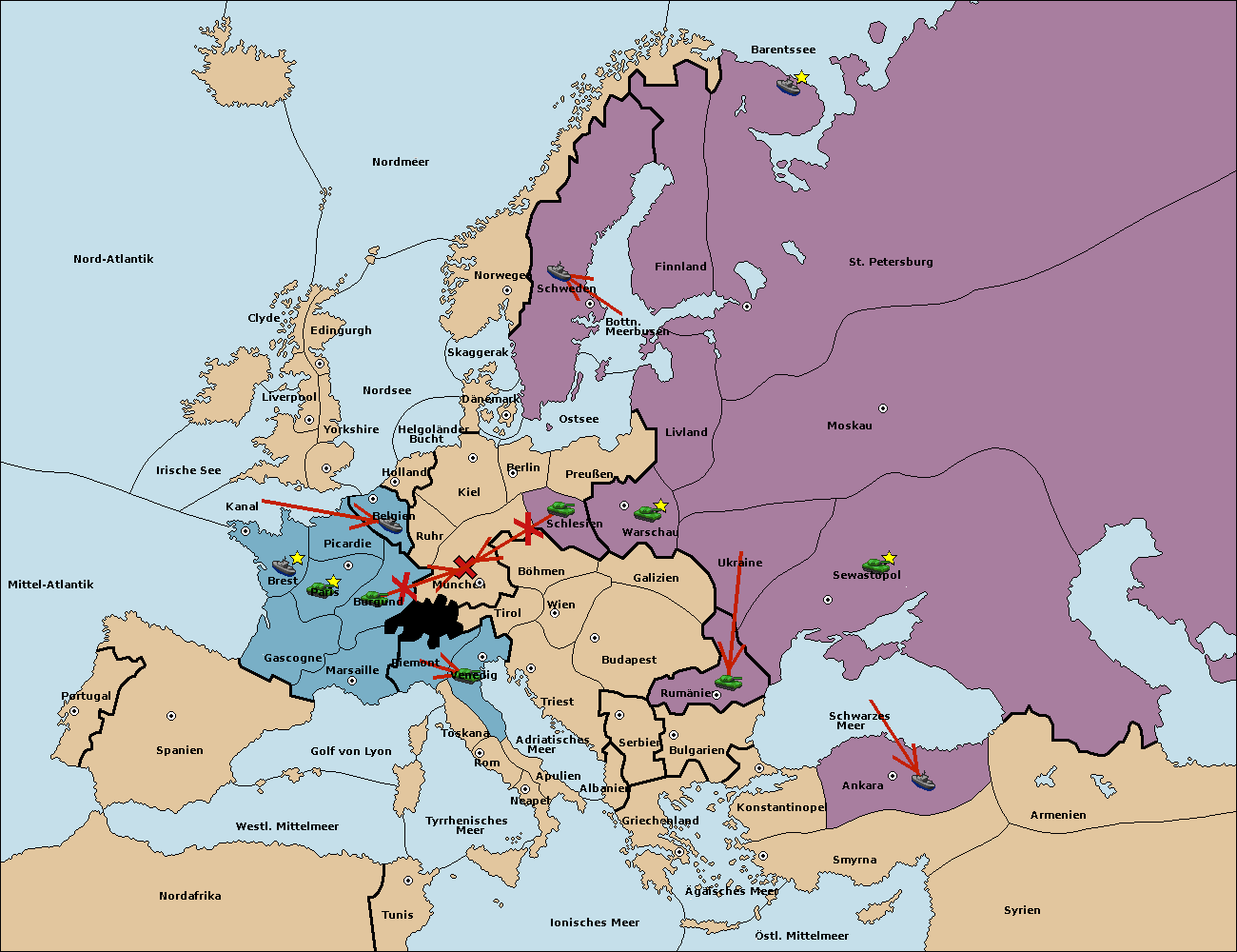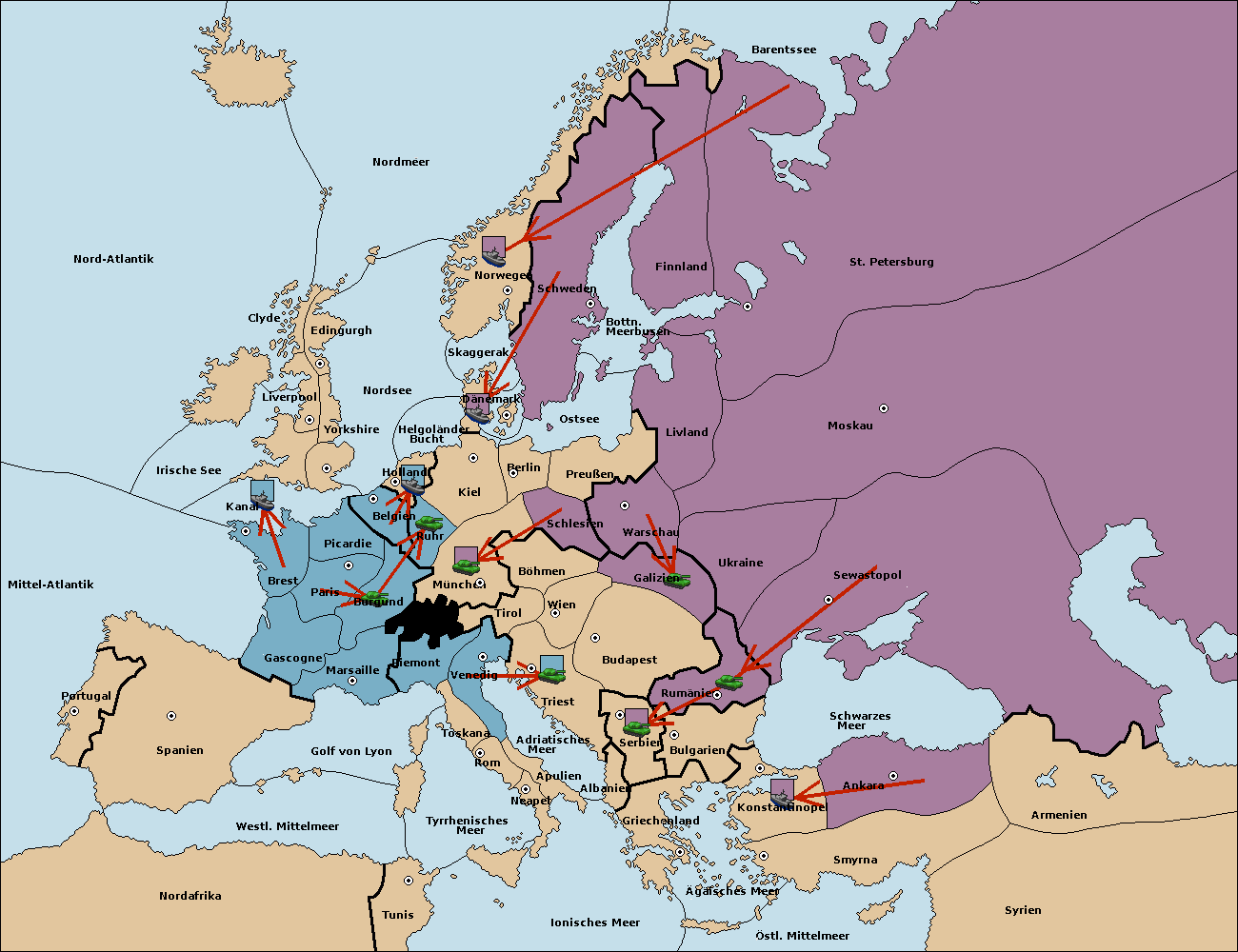 • Die Flotte in St. Petersburg (Nordküste) move nach Norwegen.