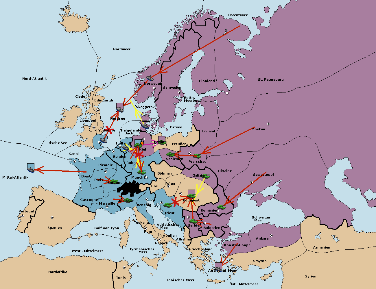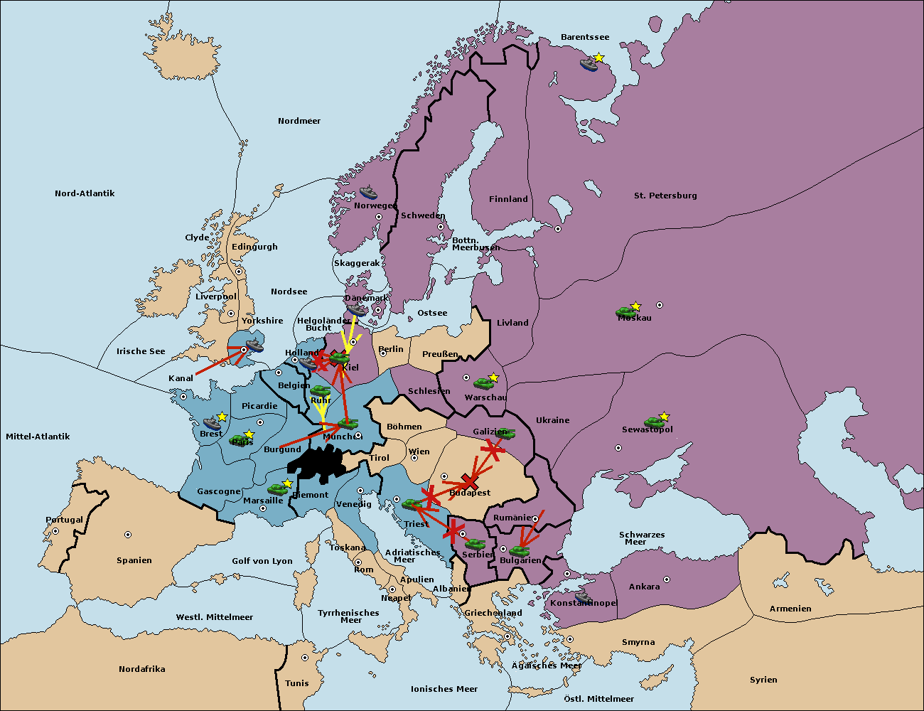 • Die Armee in Budapest support move nach Triest von Serbien.