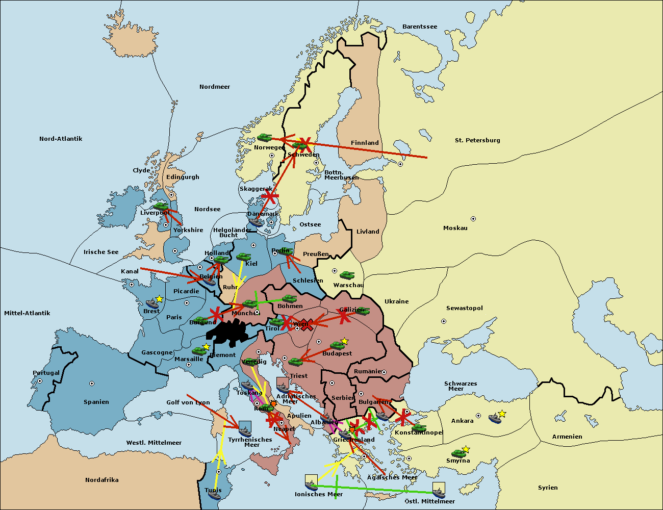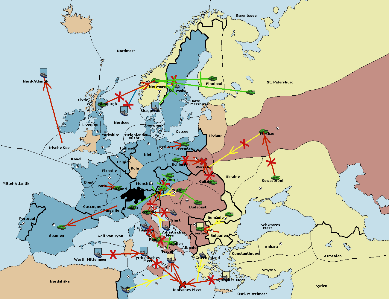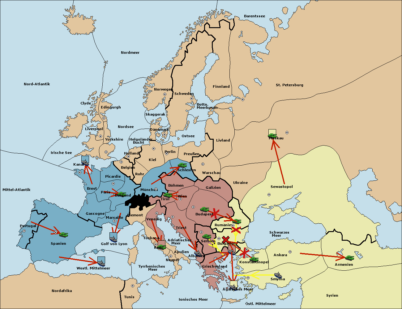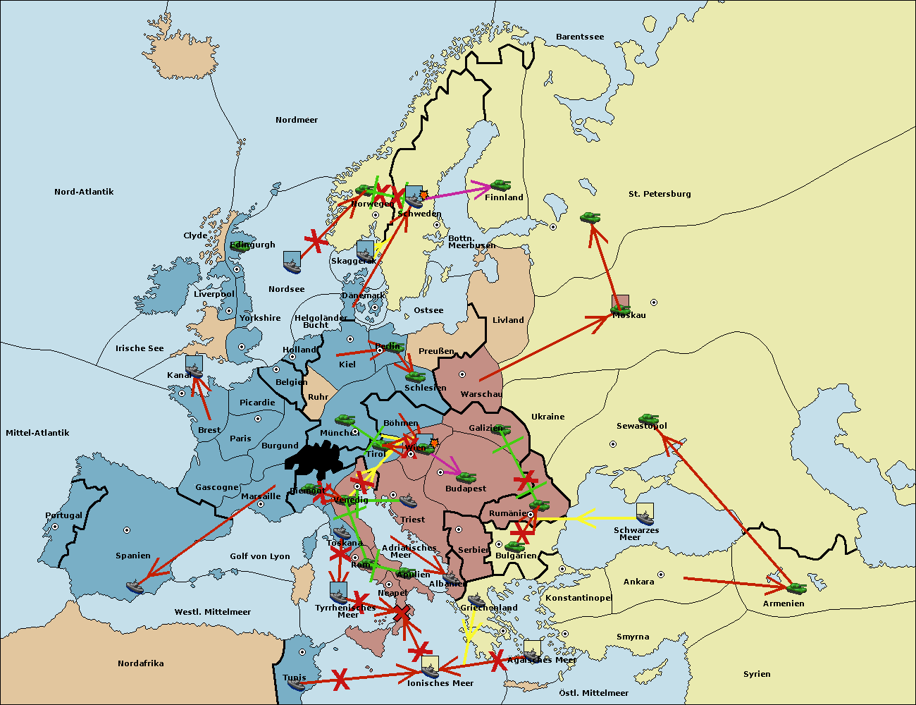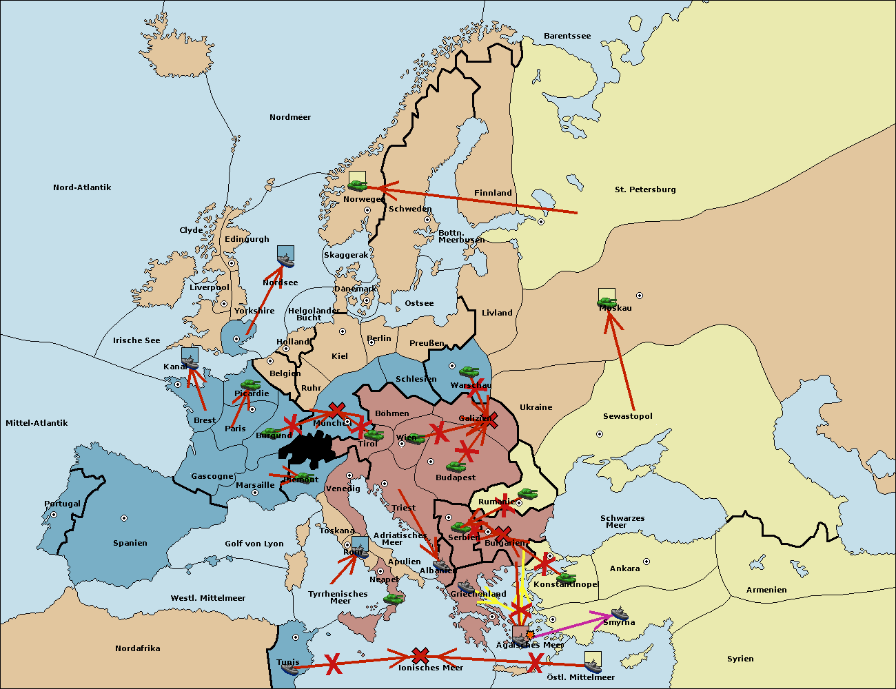 • Die Flotte in Bulgarien (Südküste) support hold nach Griechenland. (gescheitert)