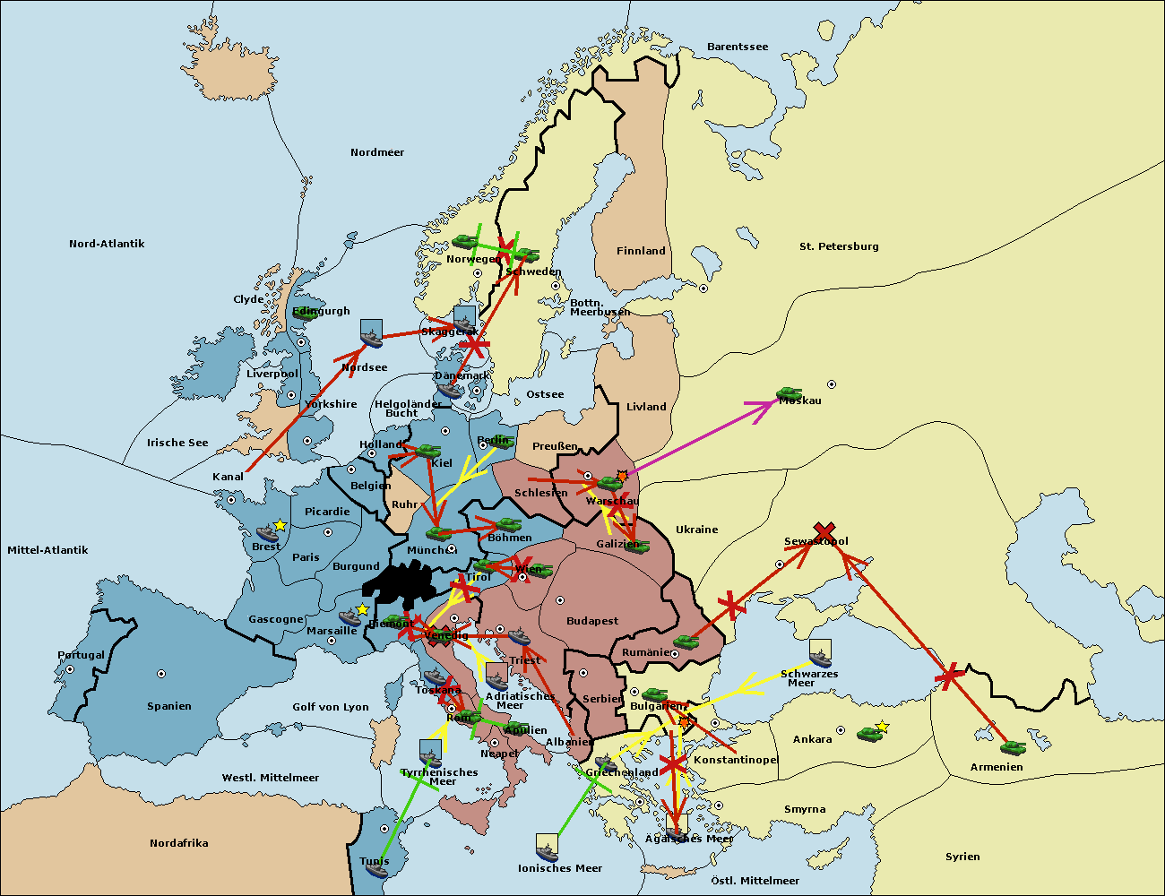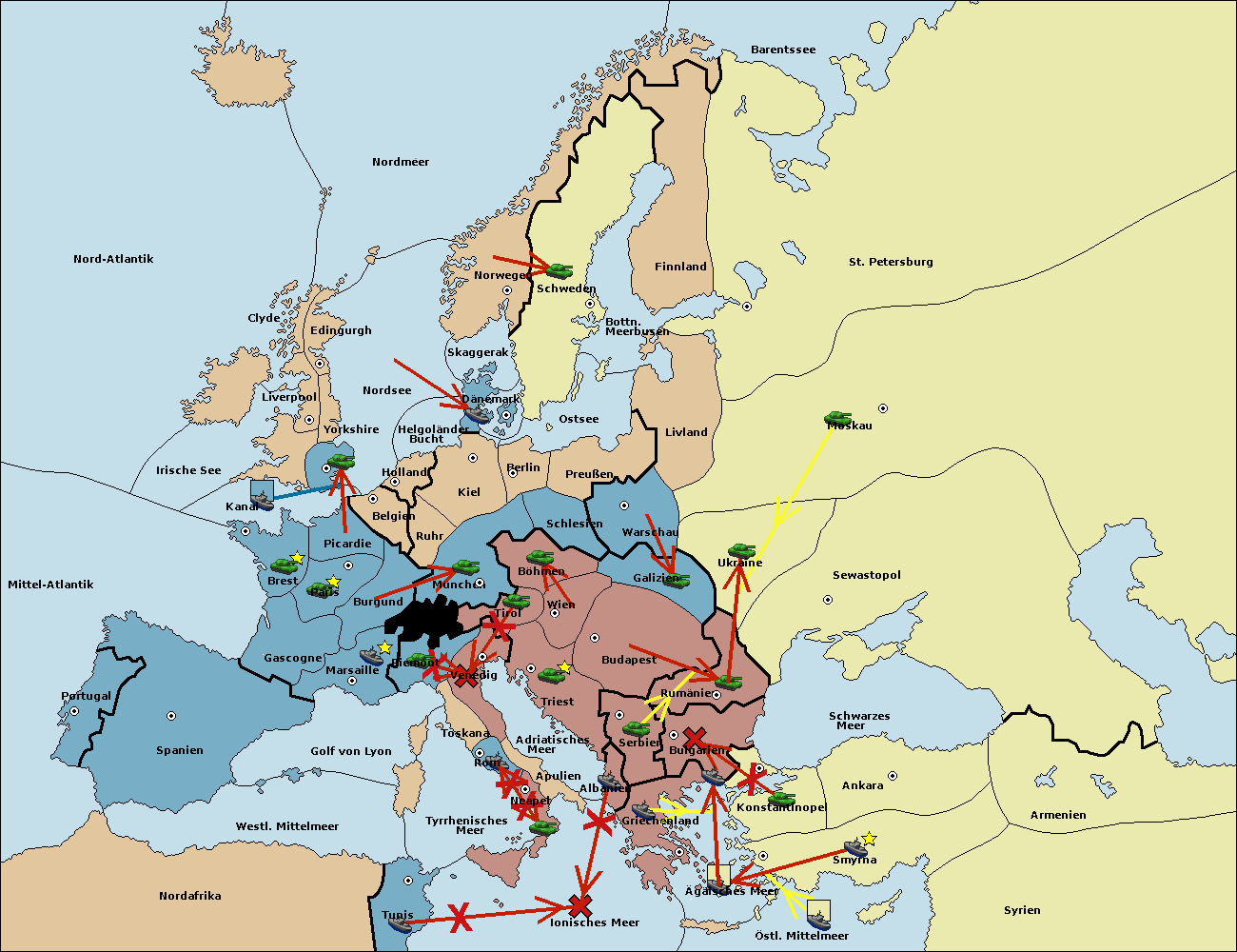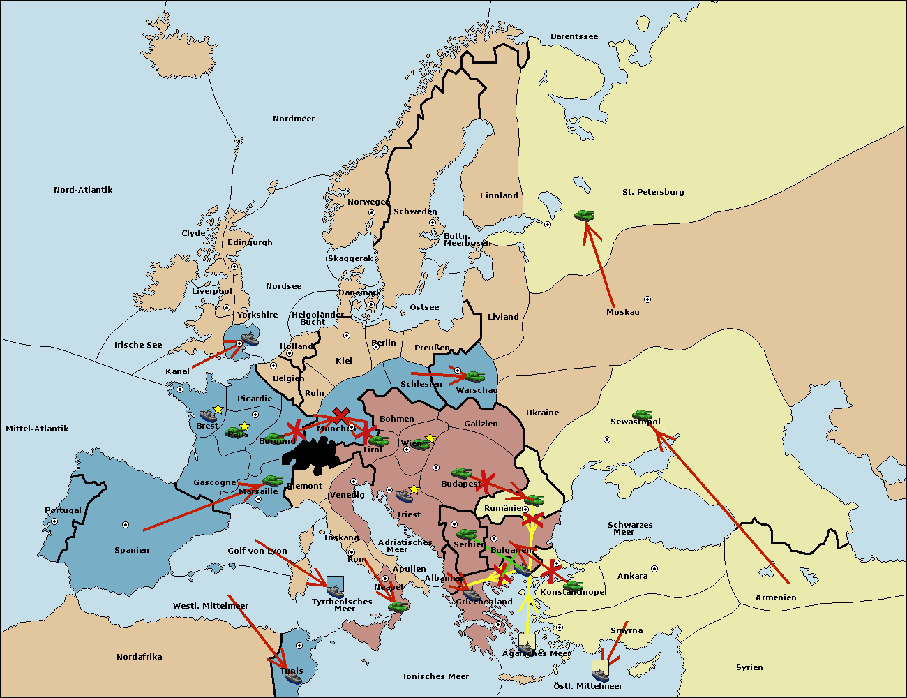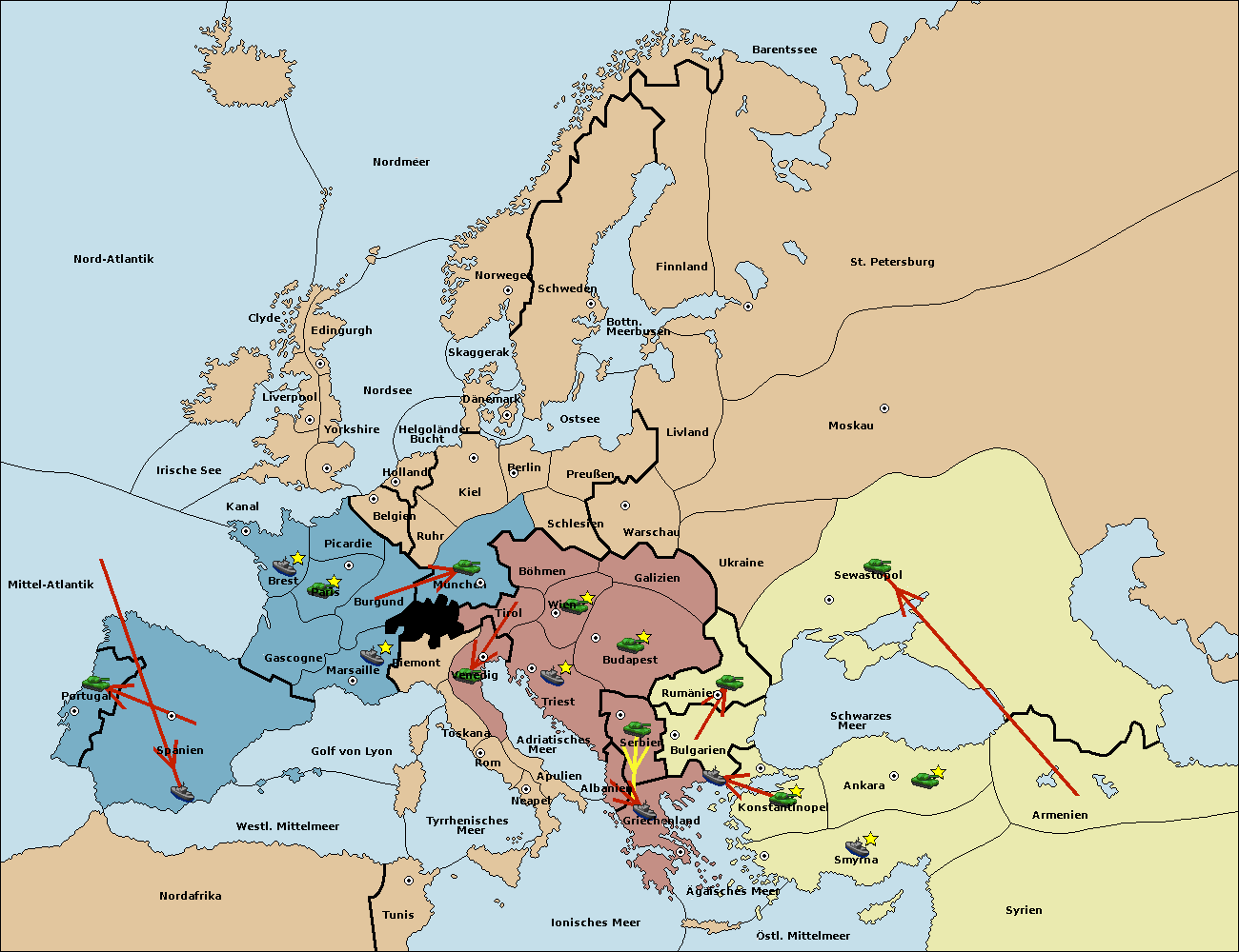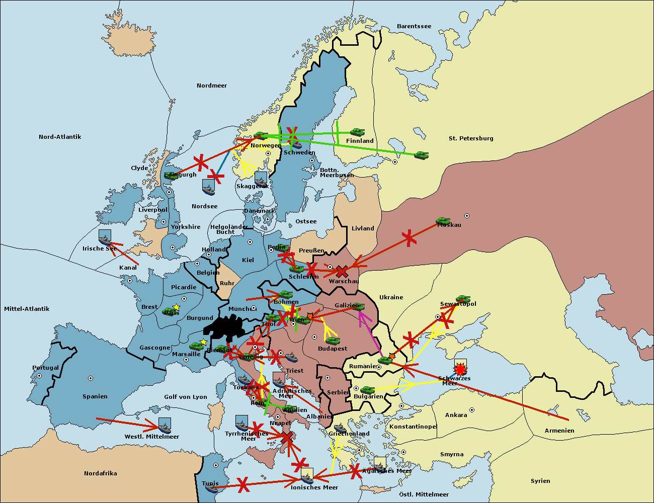 • Die Flotte in Bulgarien (Südküste) support hold nach Griechenland. (gescheitert)