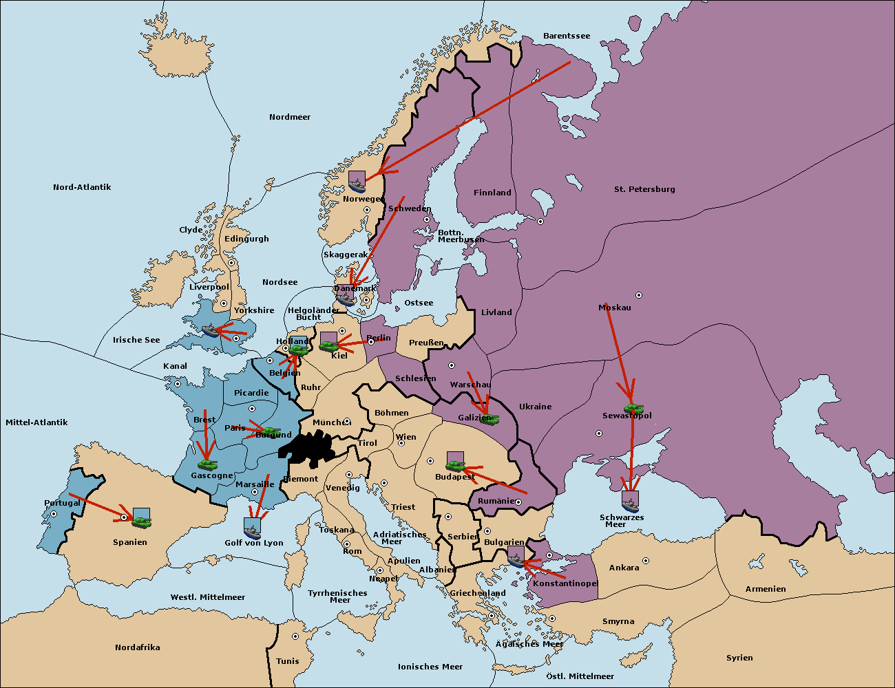 • Die Flotte in St. Petersburg (Nordküste) move nach Norwegen.