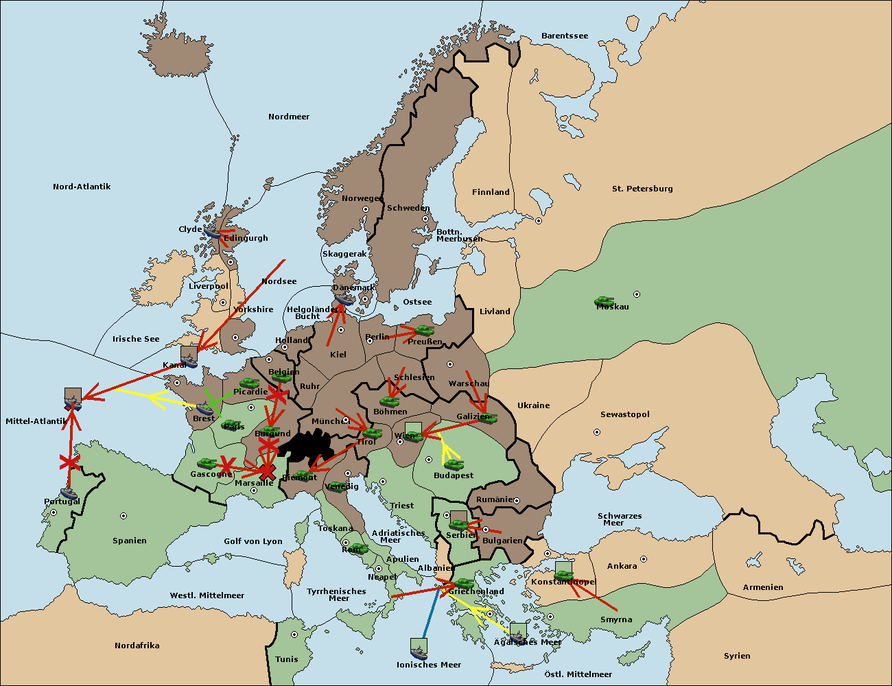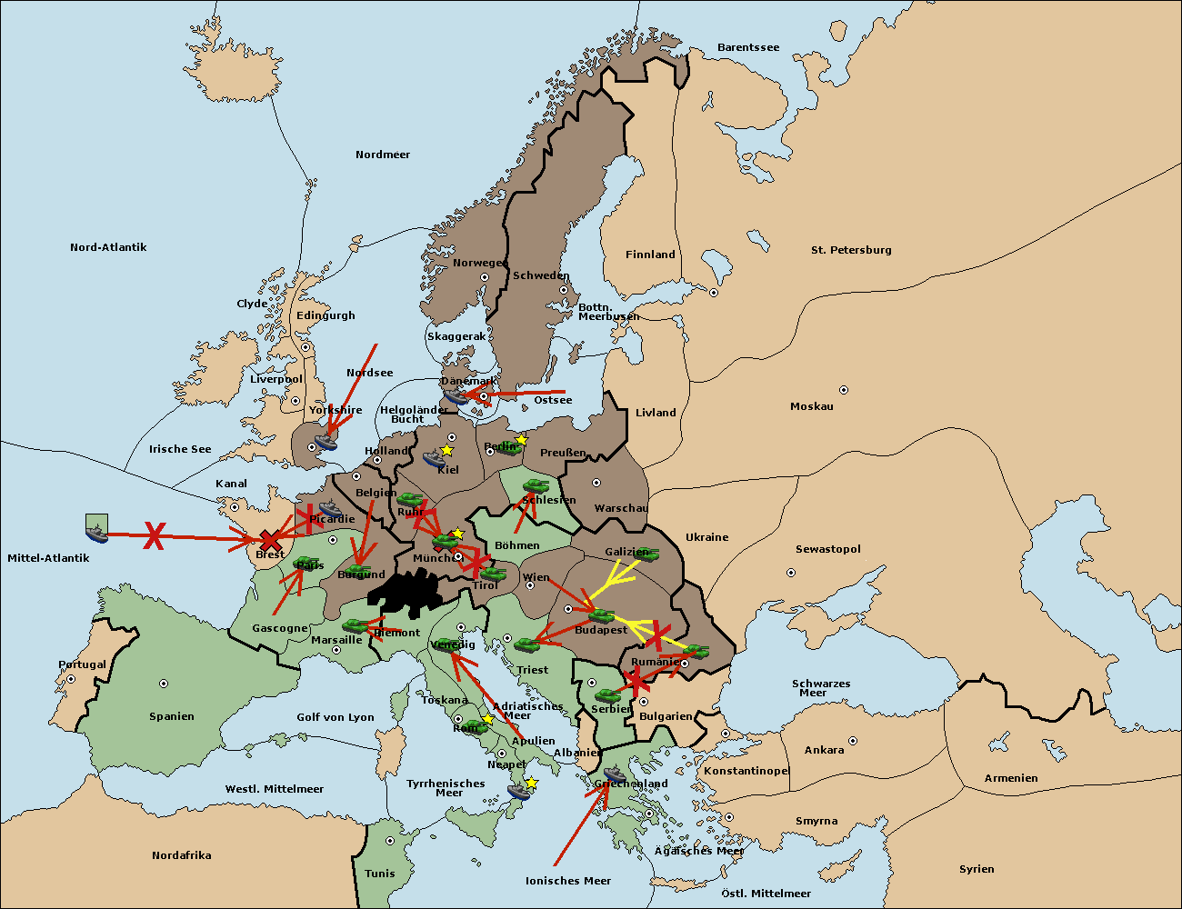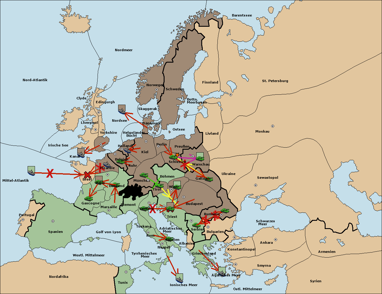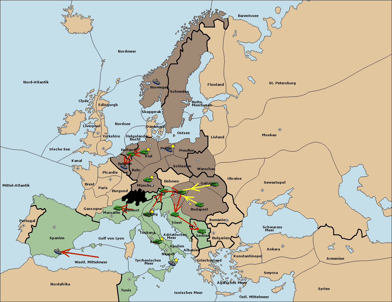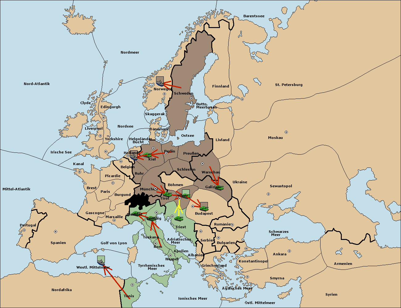 • Die Armee in Triest support move nach Wien von Tirol.