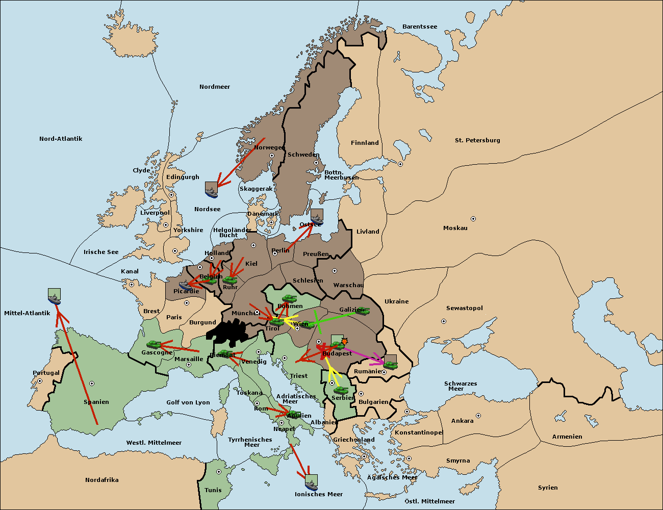 • Die Armee in Budapest move nach Triest. (gescheitert) (verdrängt)