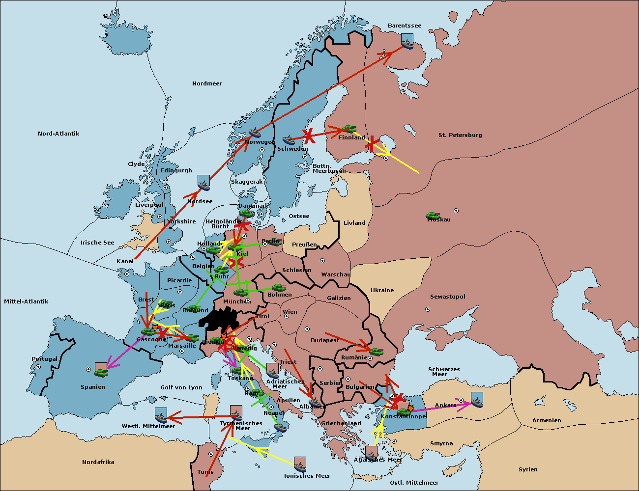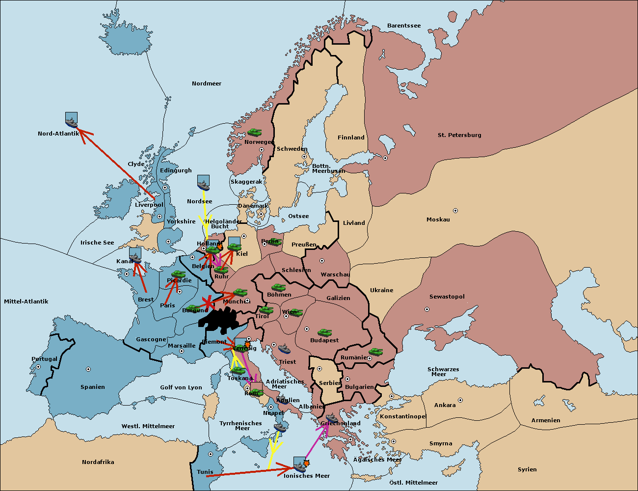 • Die Flotte in Spanien (Südküste) move nach westl. Mittelmeer.