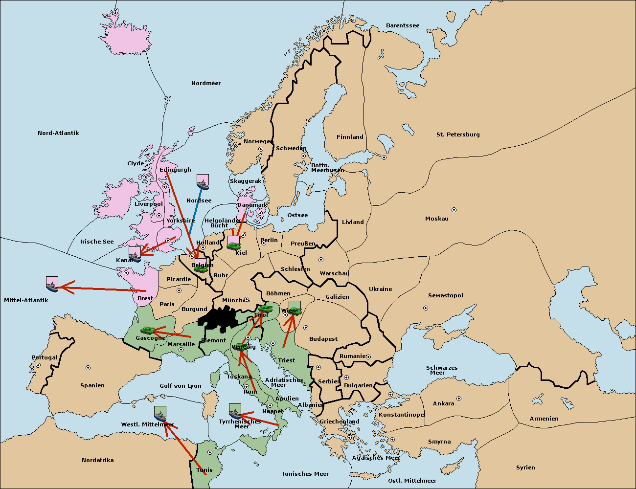 • Die Armee in Berlin support move nach München von Tirol. (gescheitert) (verdrängt)