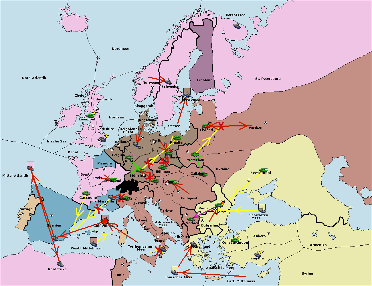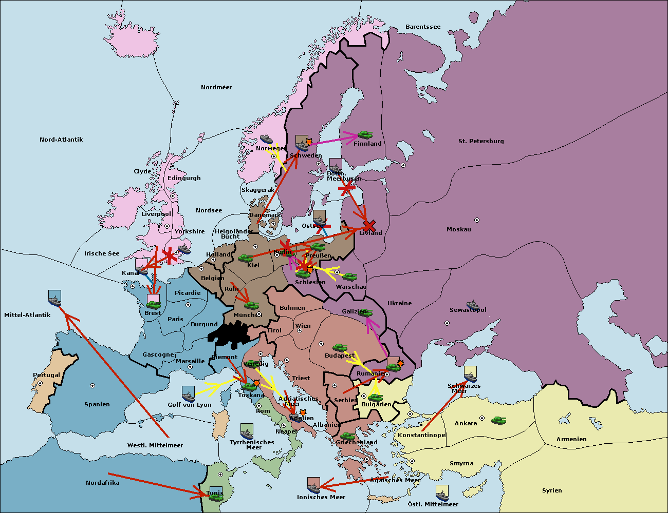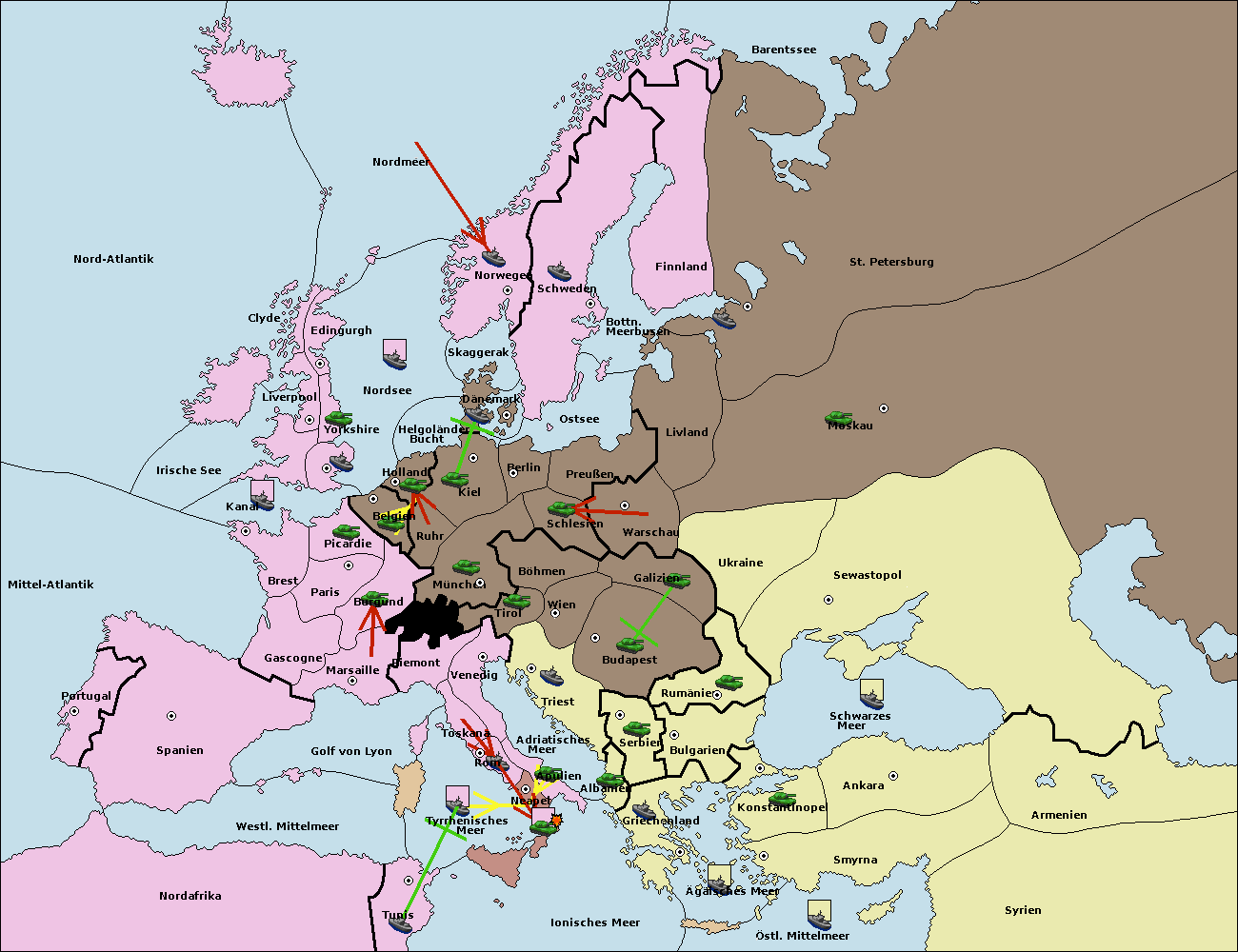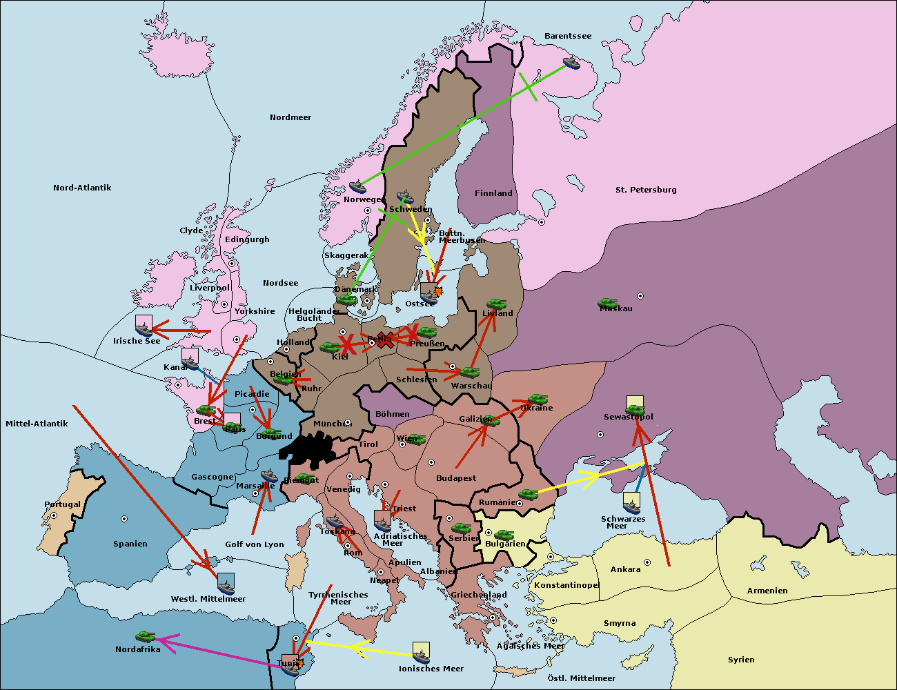 • Die Armee in Spanien move nach Nord Afrika via Concoy. (gescheitert)