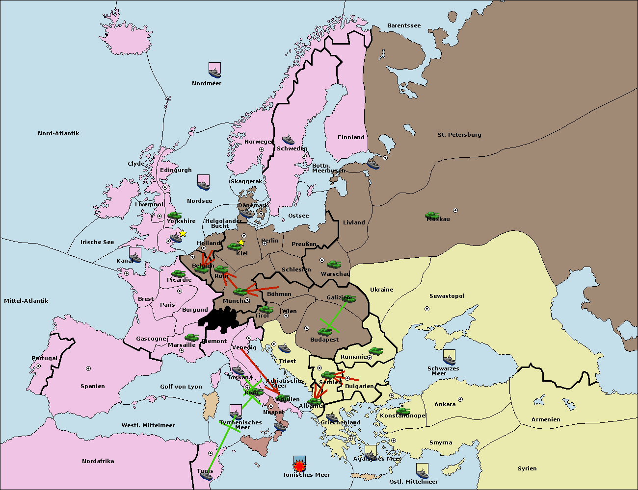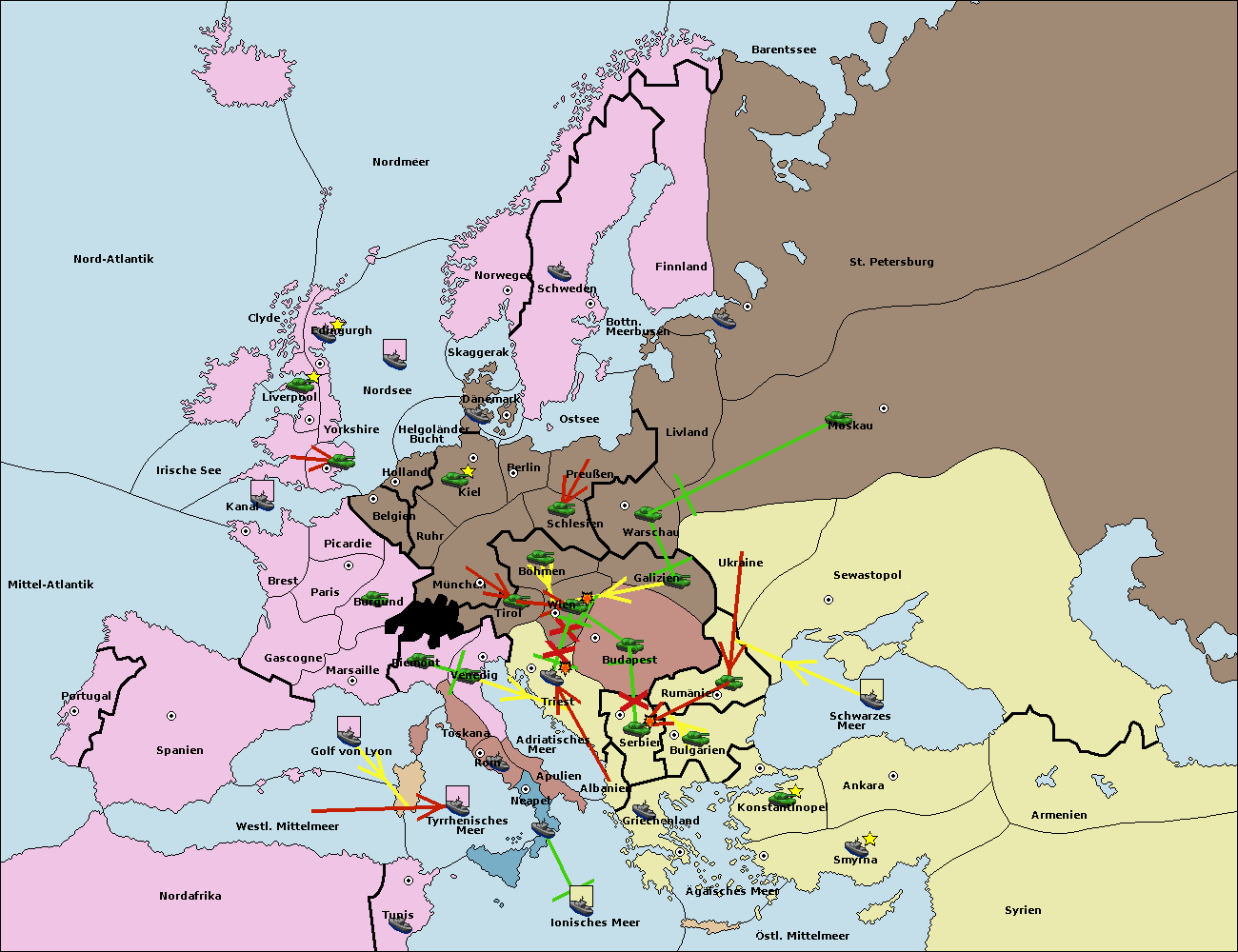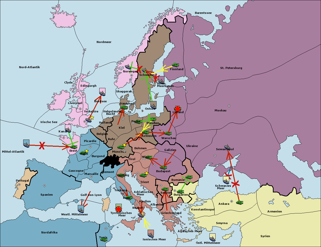 • Die Armee in Konstantinopel support hold nach Bulgarien.