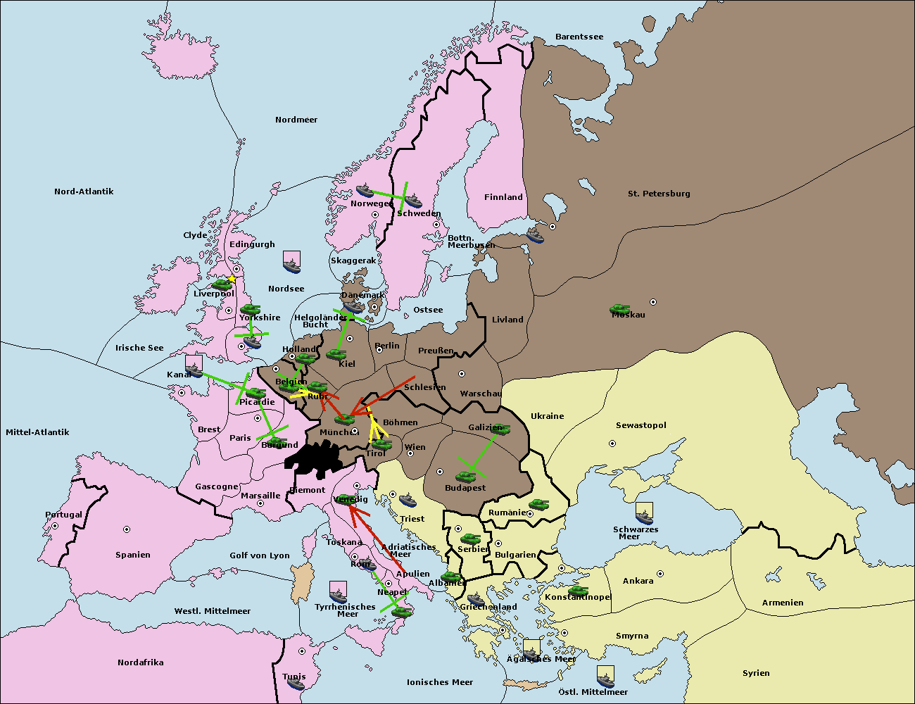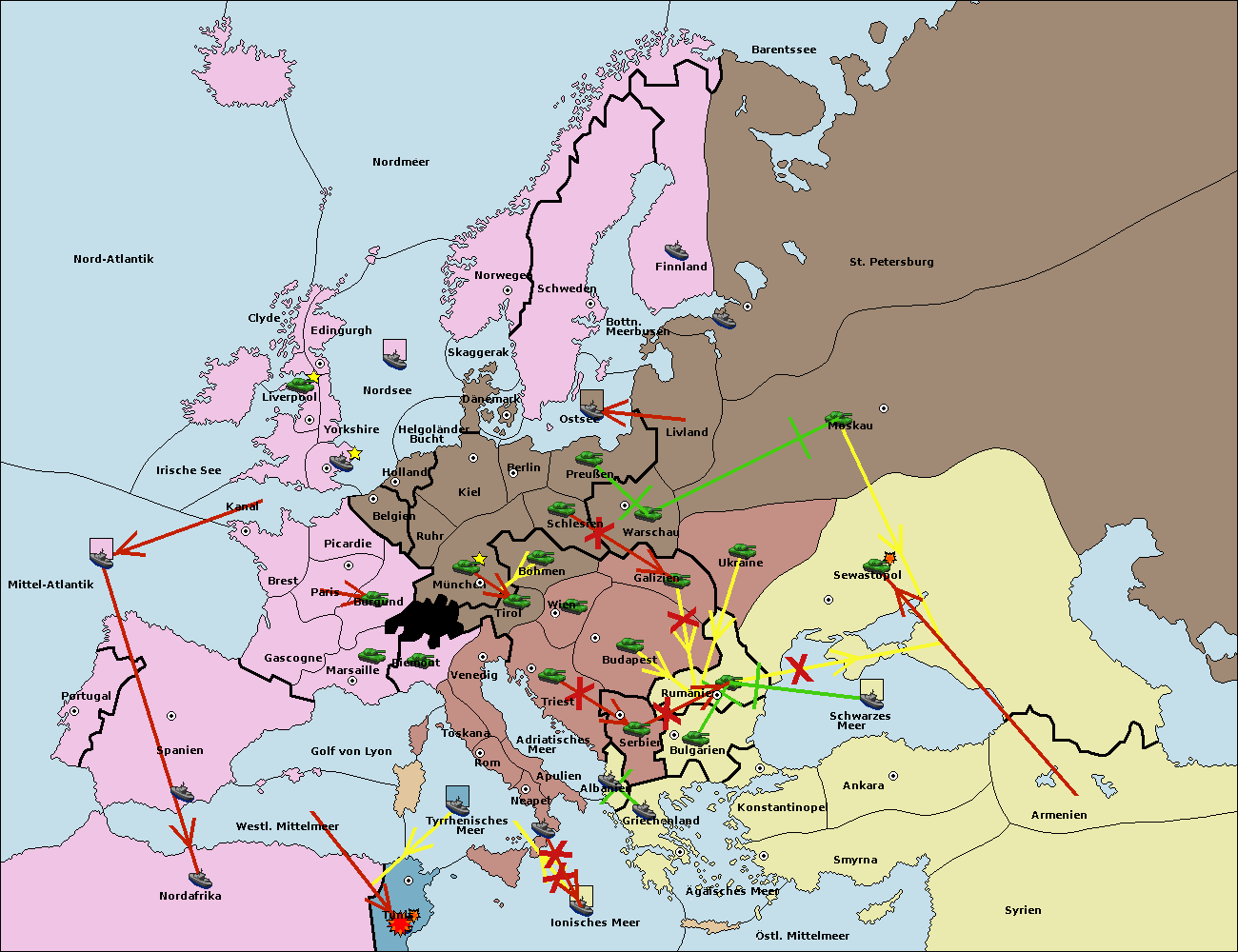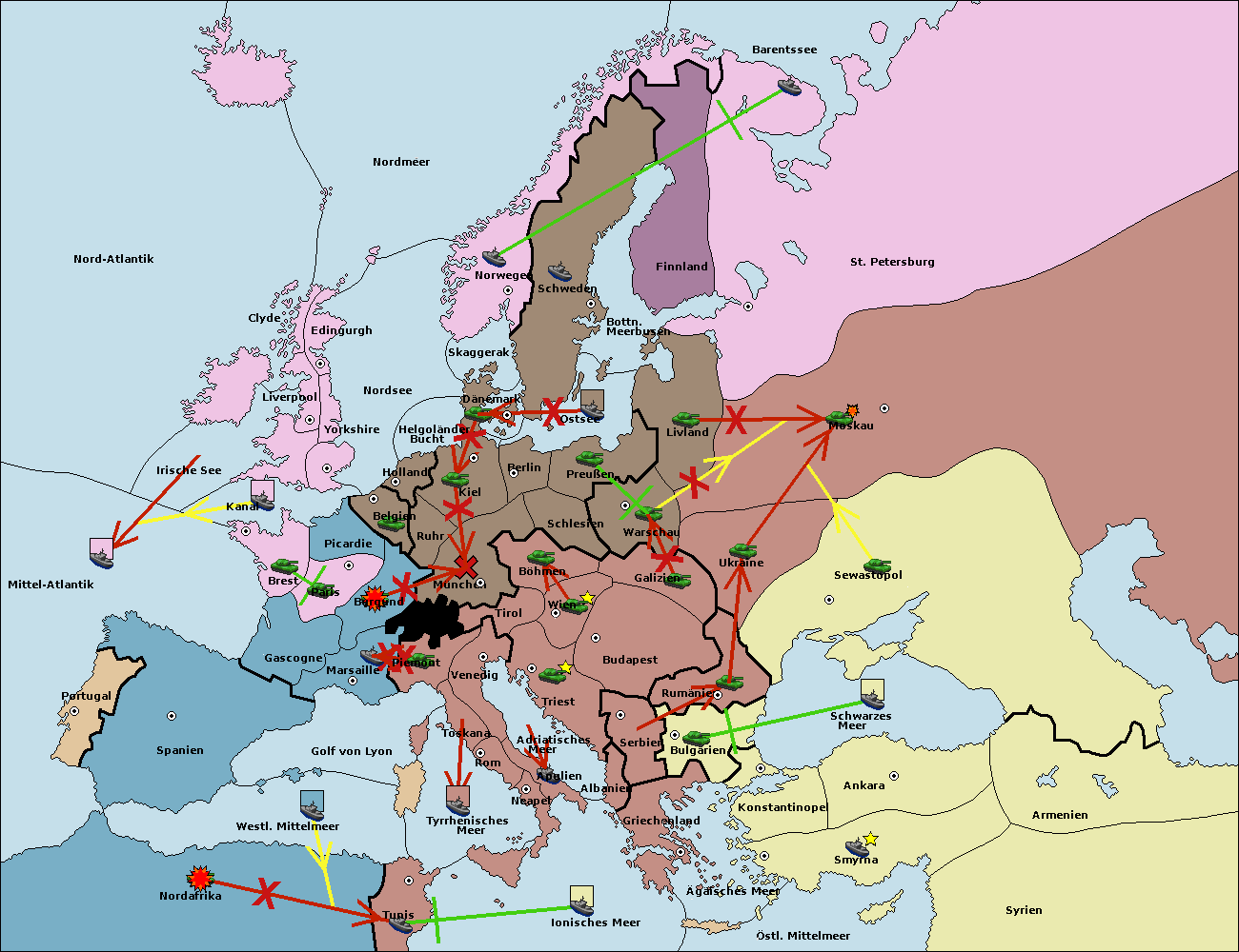 • Die Armee in Konstantinopel support hold nach Bulgarien.