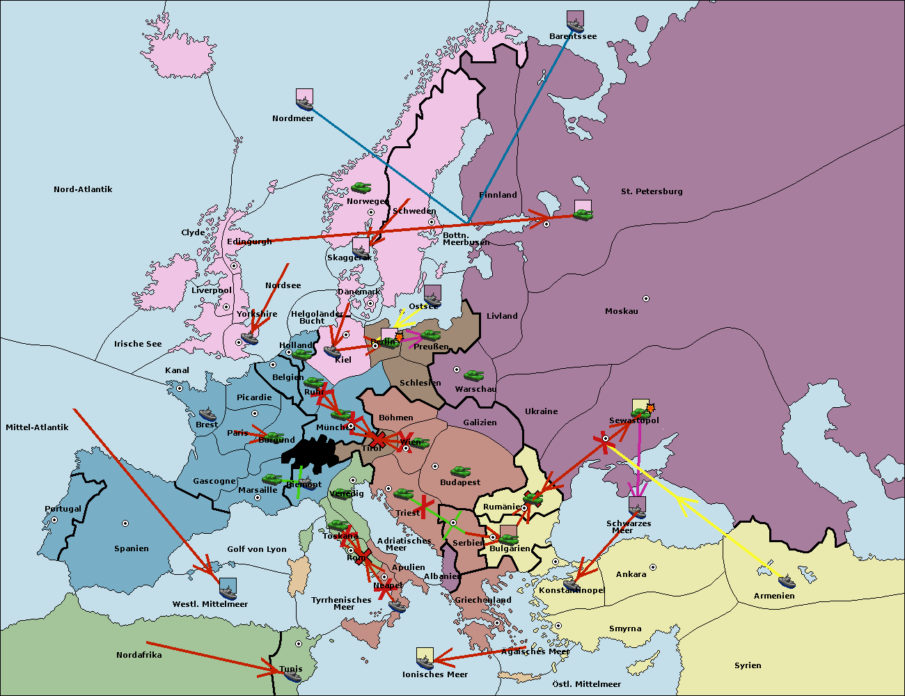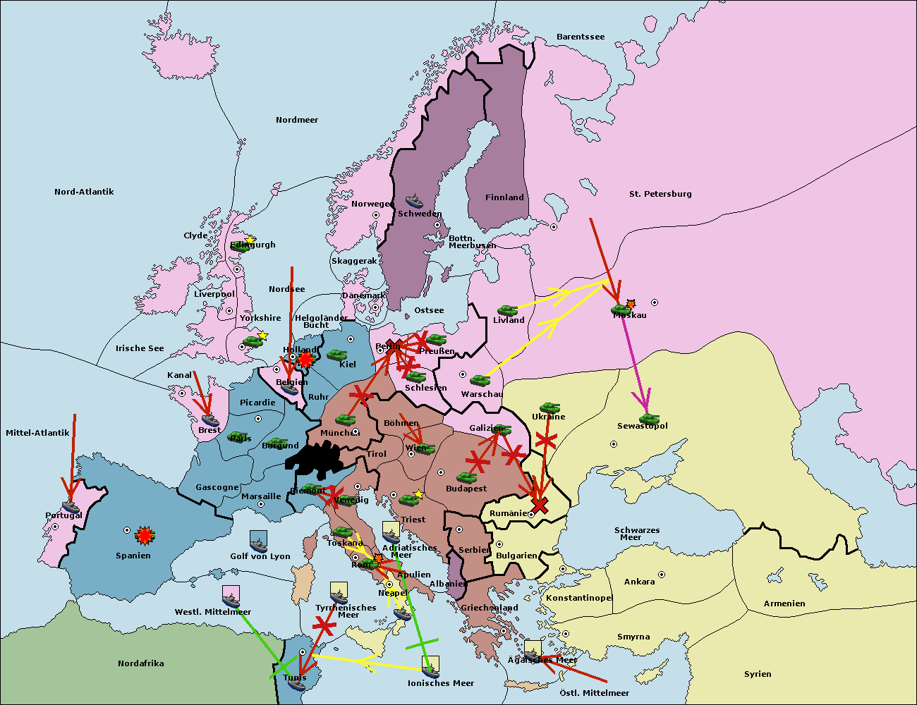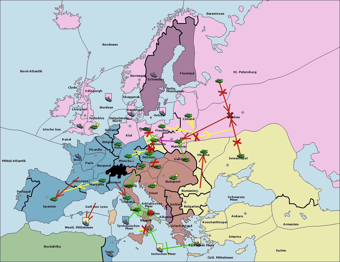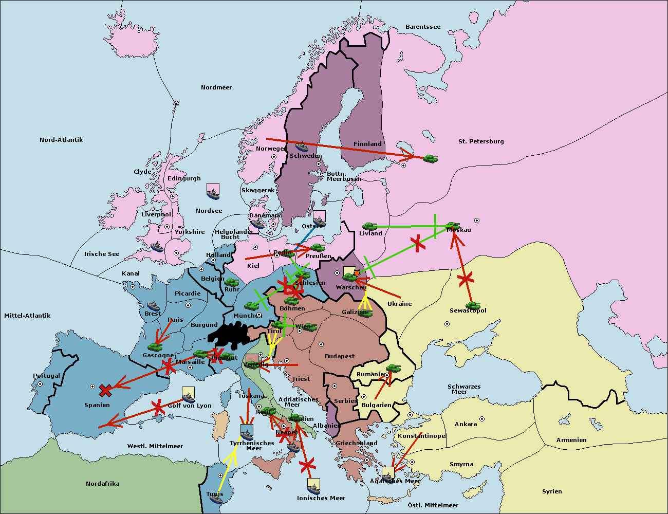 • Die Armee in Warschau support move nach Moskau von Sewastopol. (gescheitert)