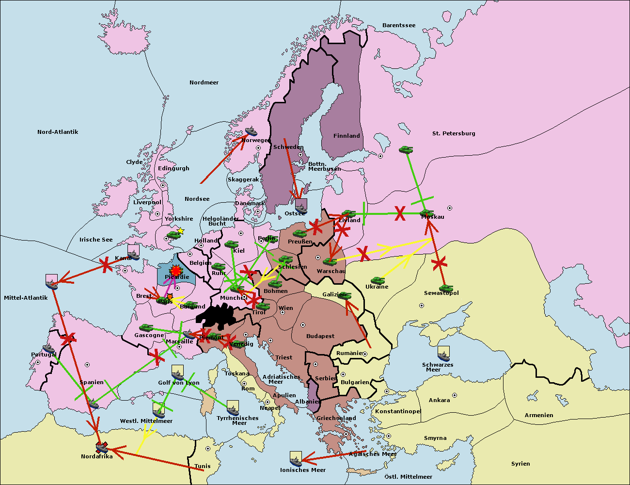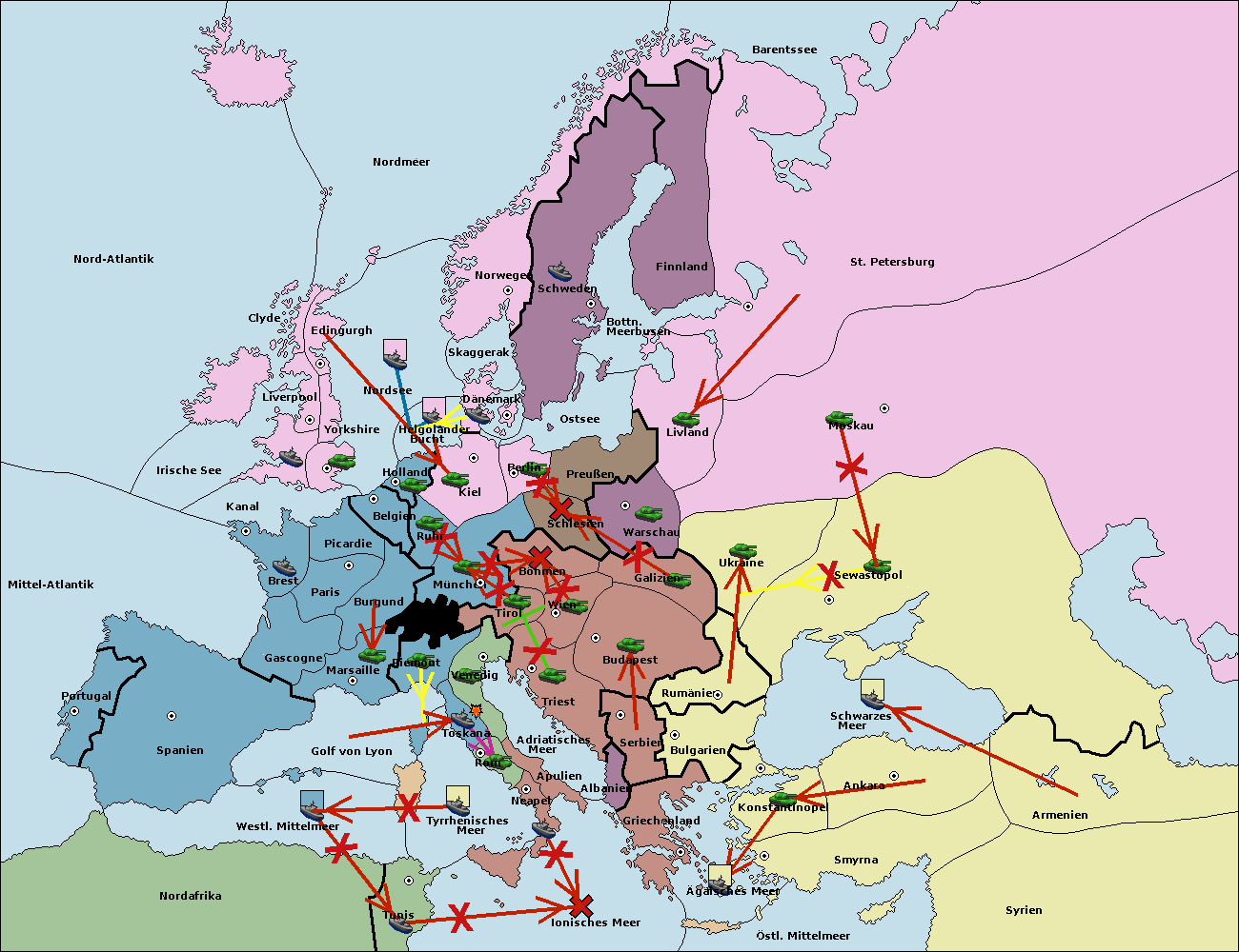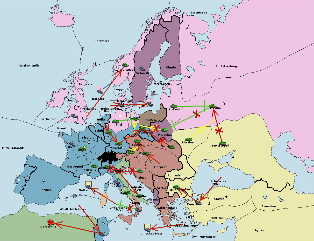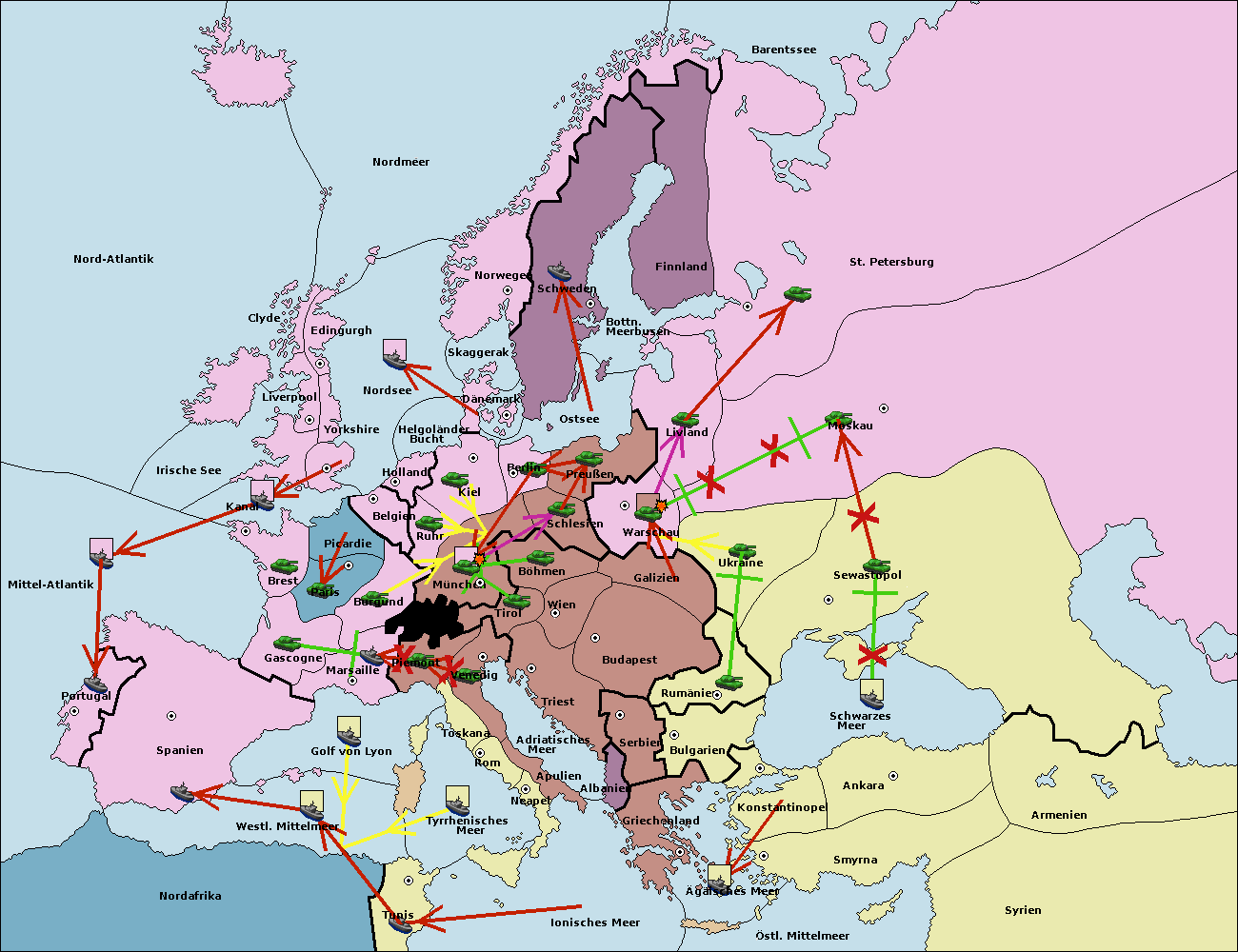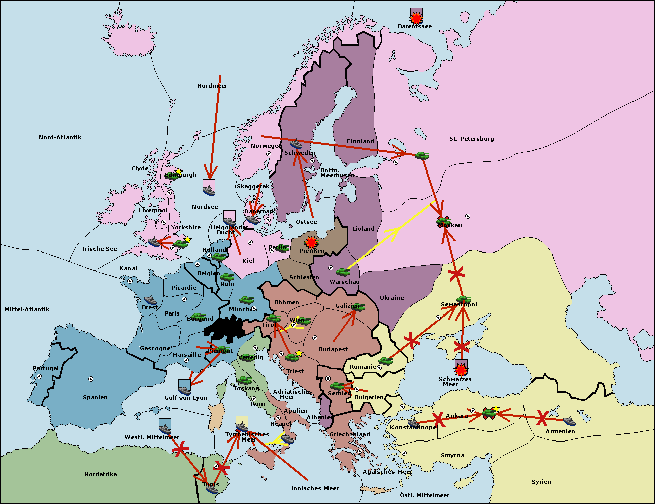 • Die Armee in Warschau support move nach Moskau von Sewastopol. (gescheitert)