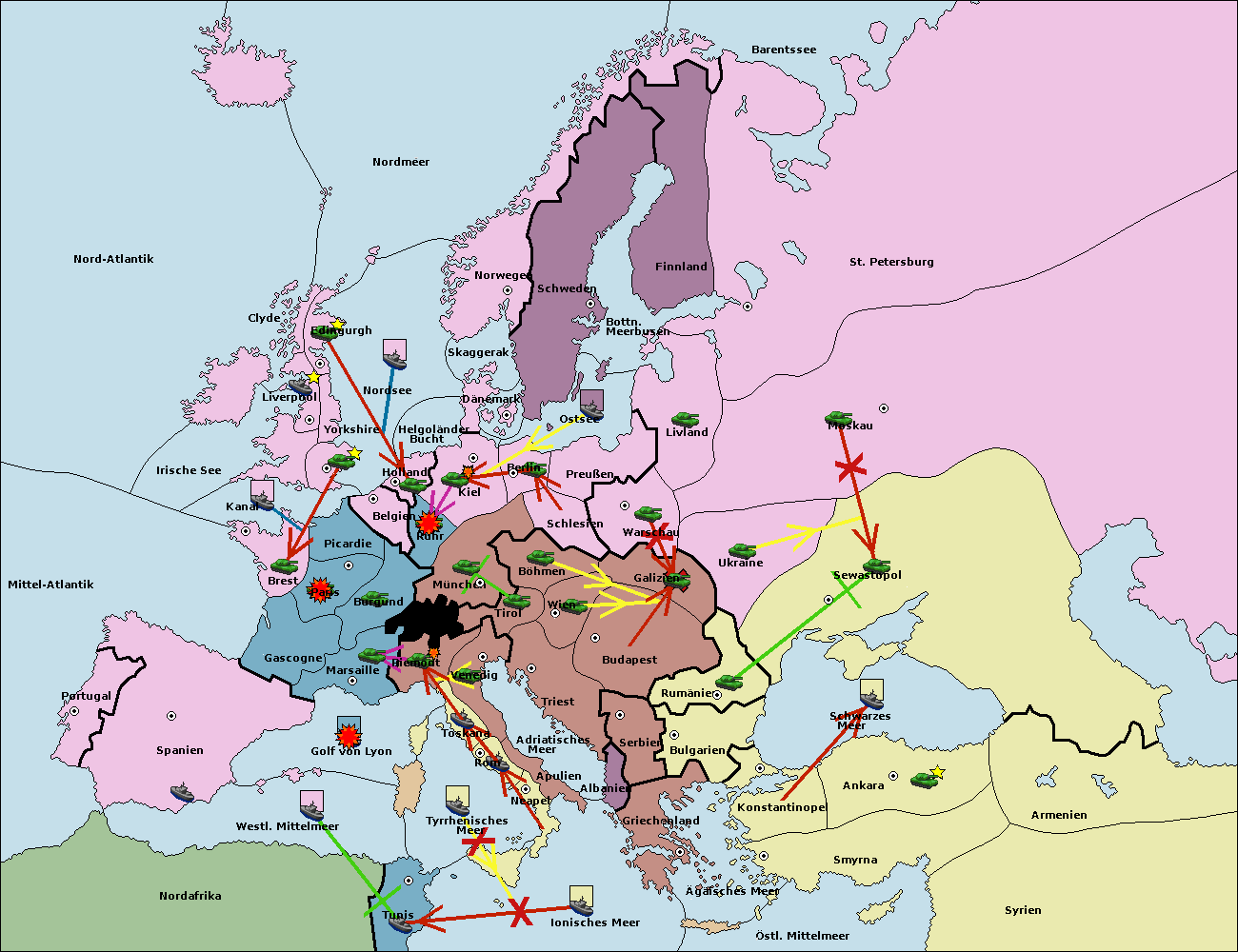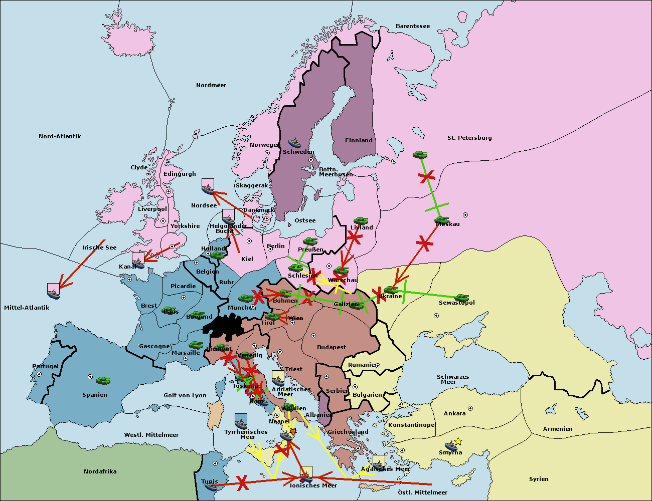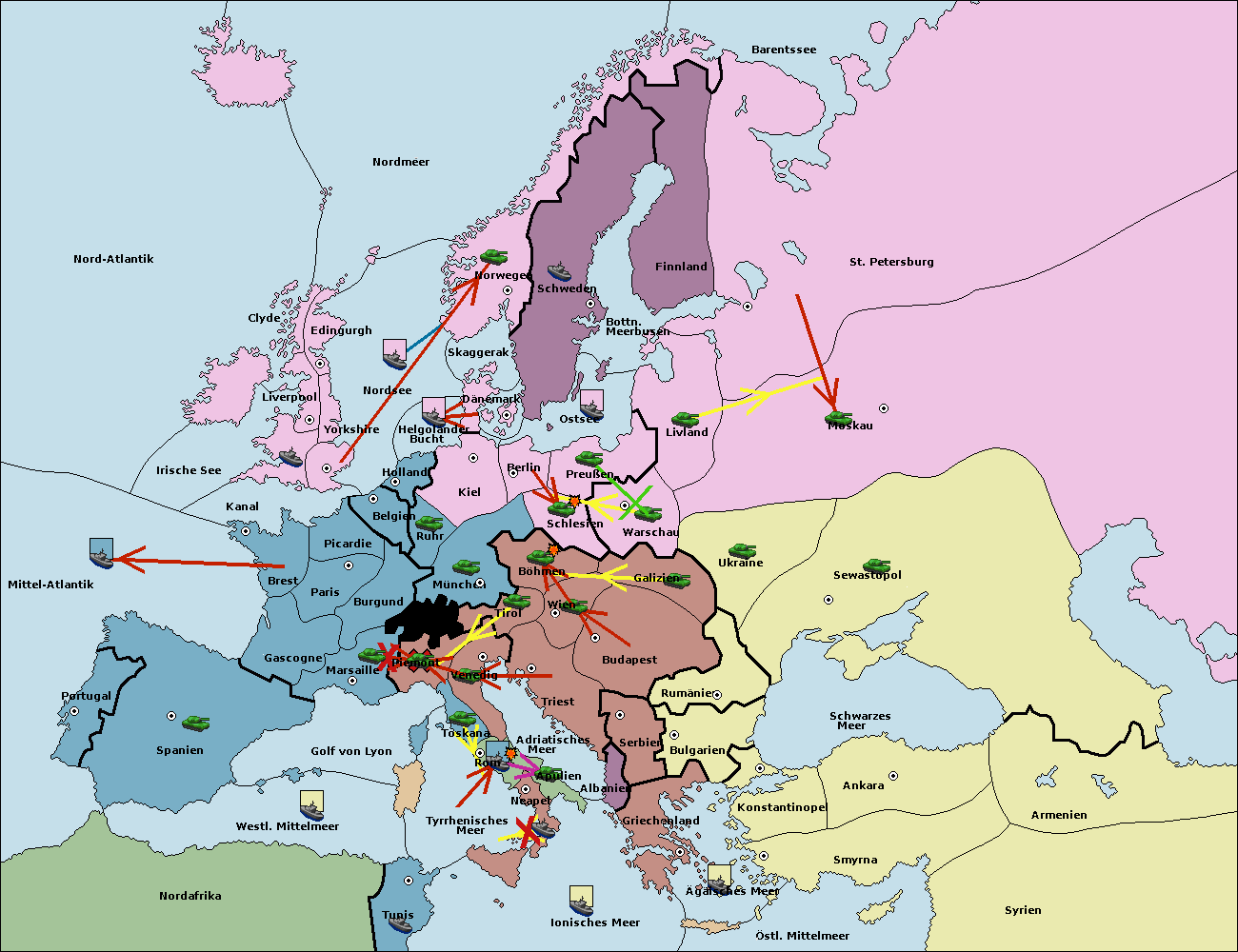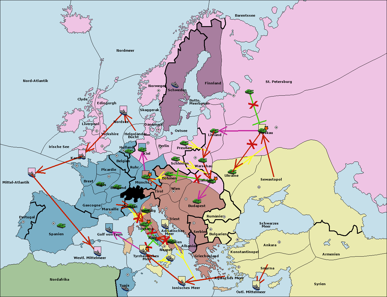 • Die Armee in Warschau support move nach Moskau von Sewastopol. (gescheitert)