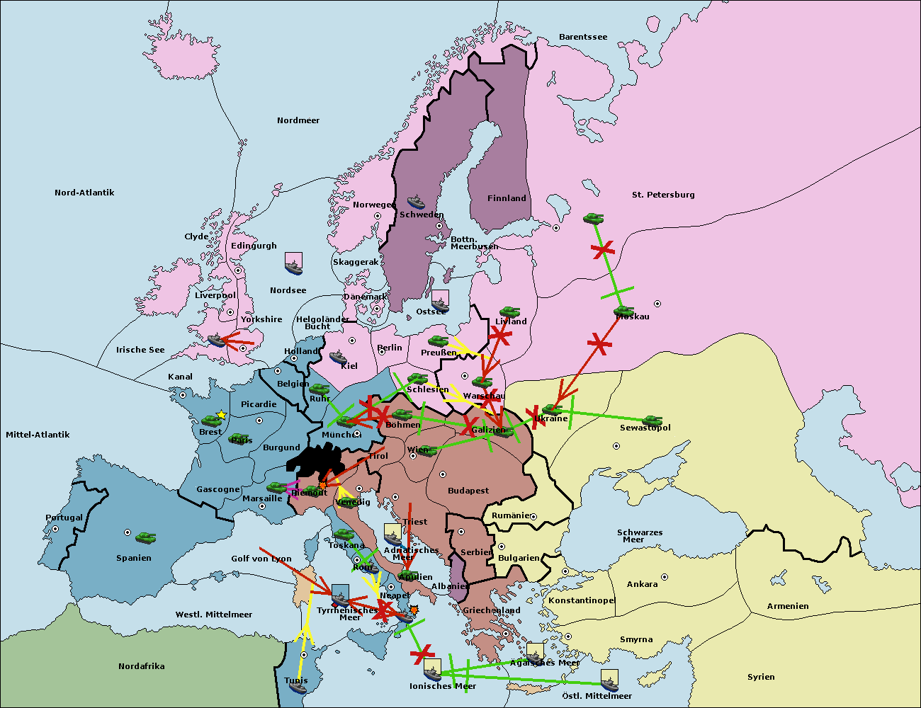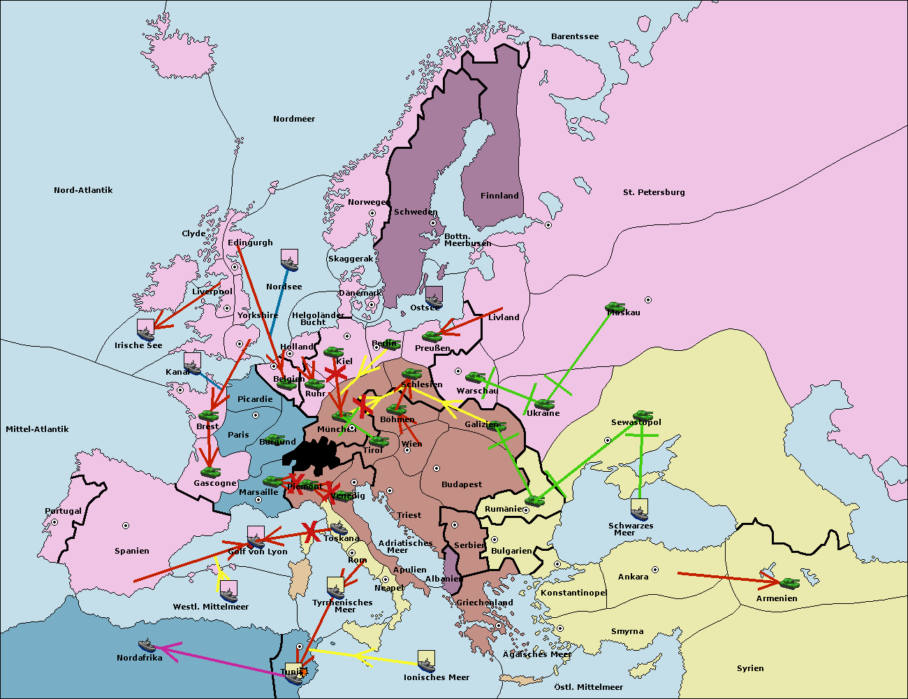 • Die Flotte in Marseille support hold nach Spanien. (gescheitert)