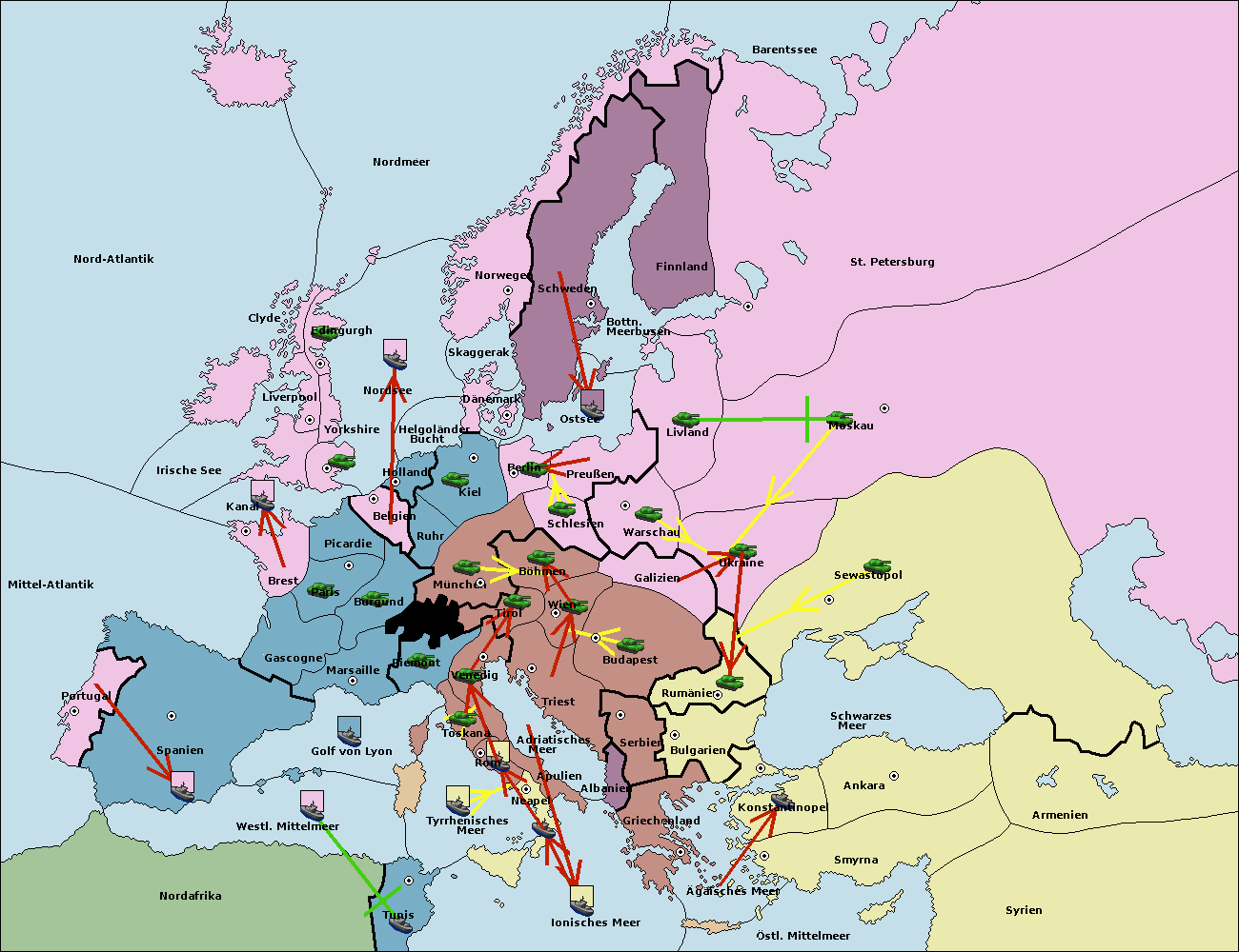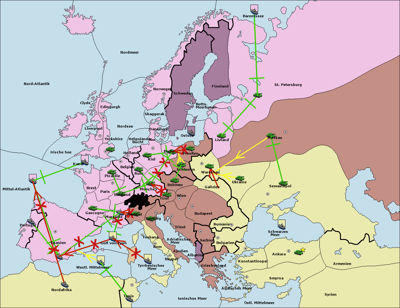 • Die Flotte in St. Petersburg (Nordküste) move nach Barentssee.