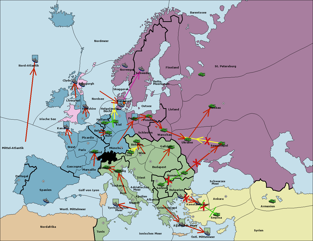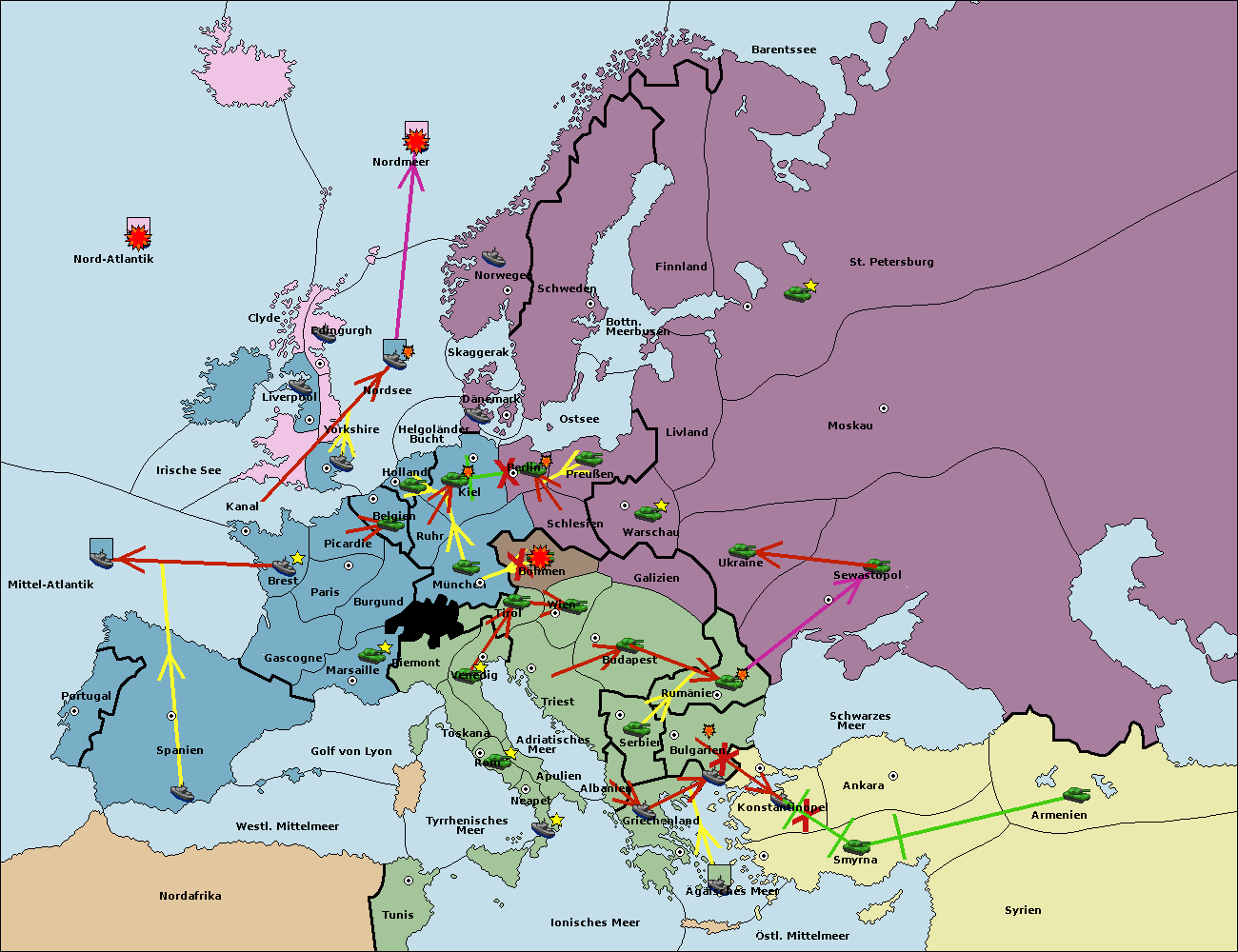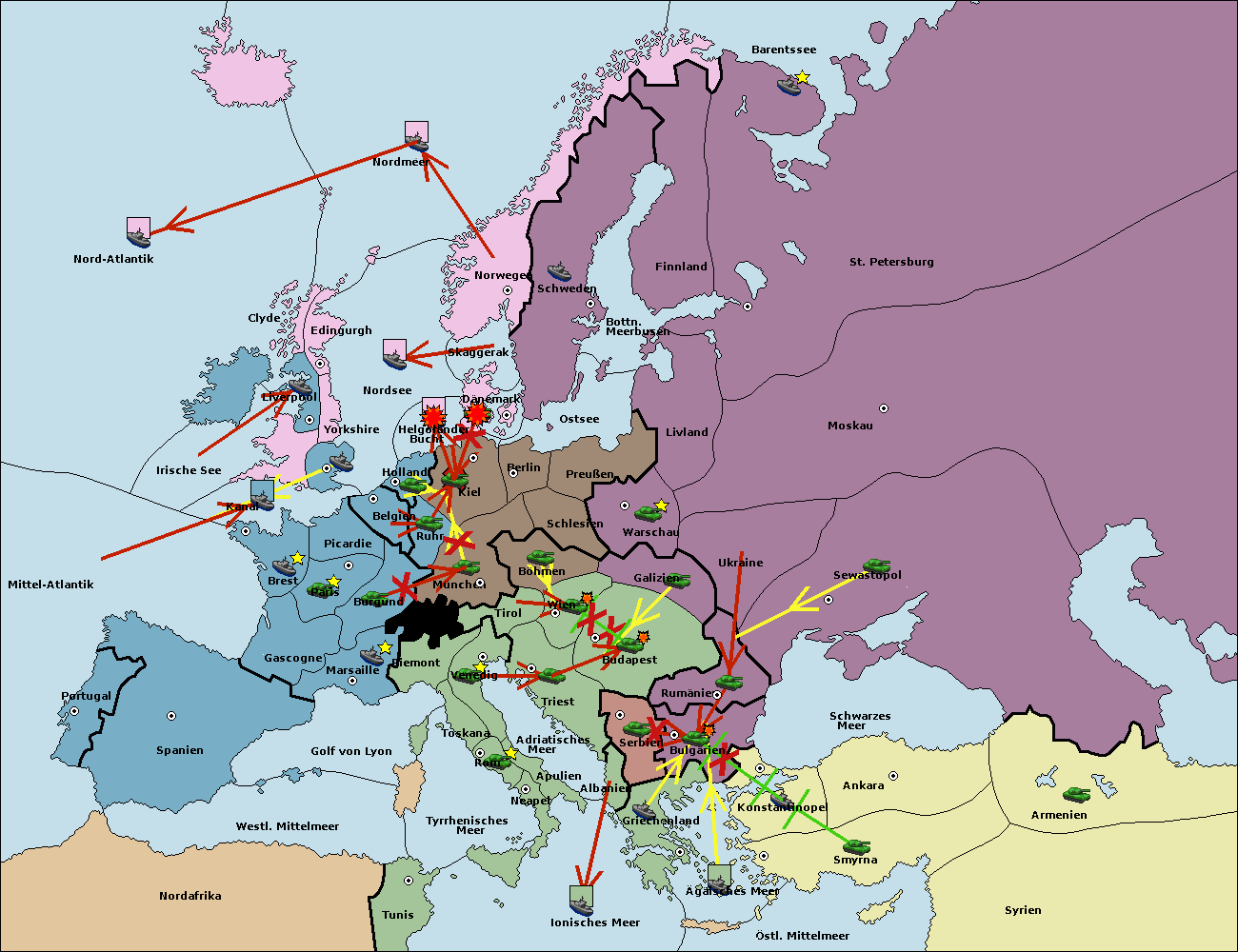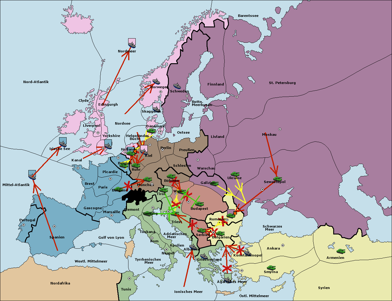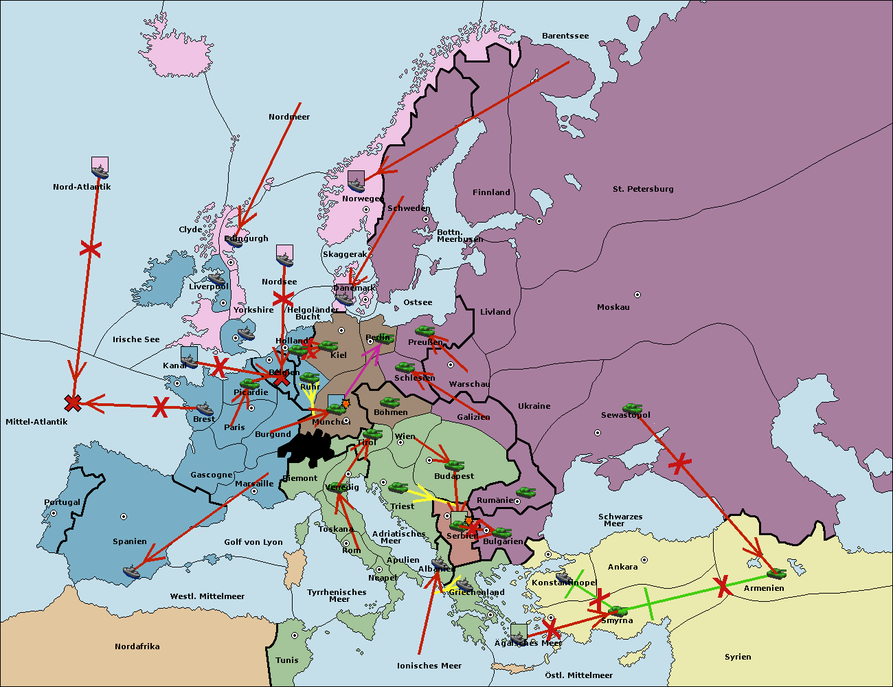 • Die Armee in Konstantinopel support hold nach Bulgarien.