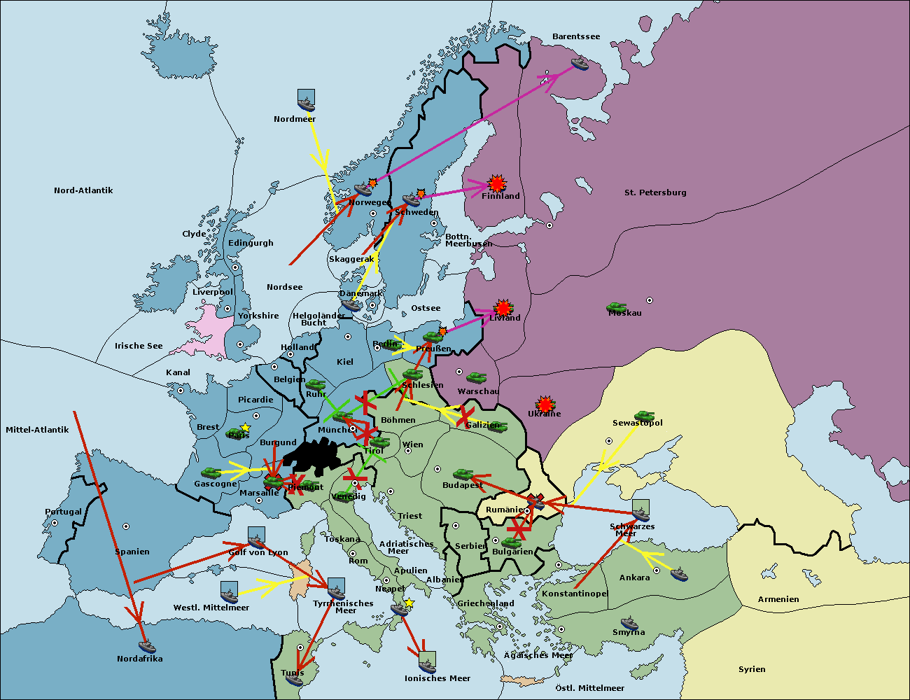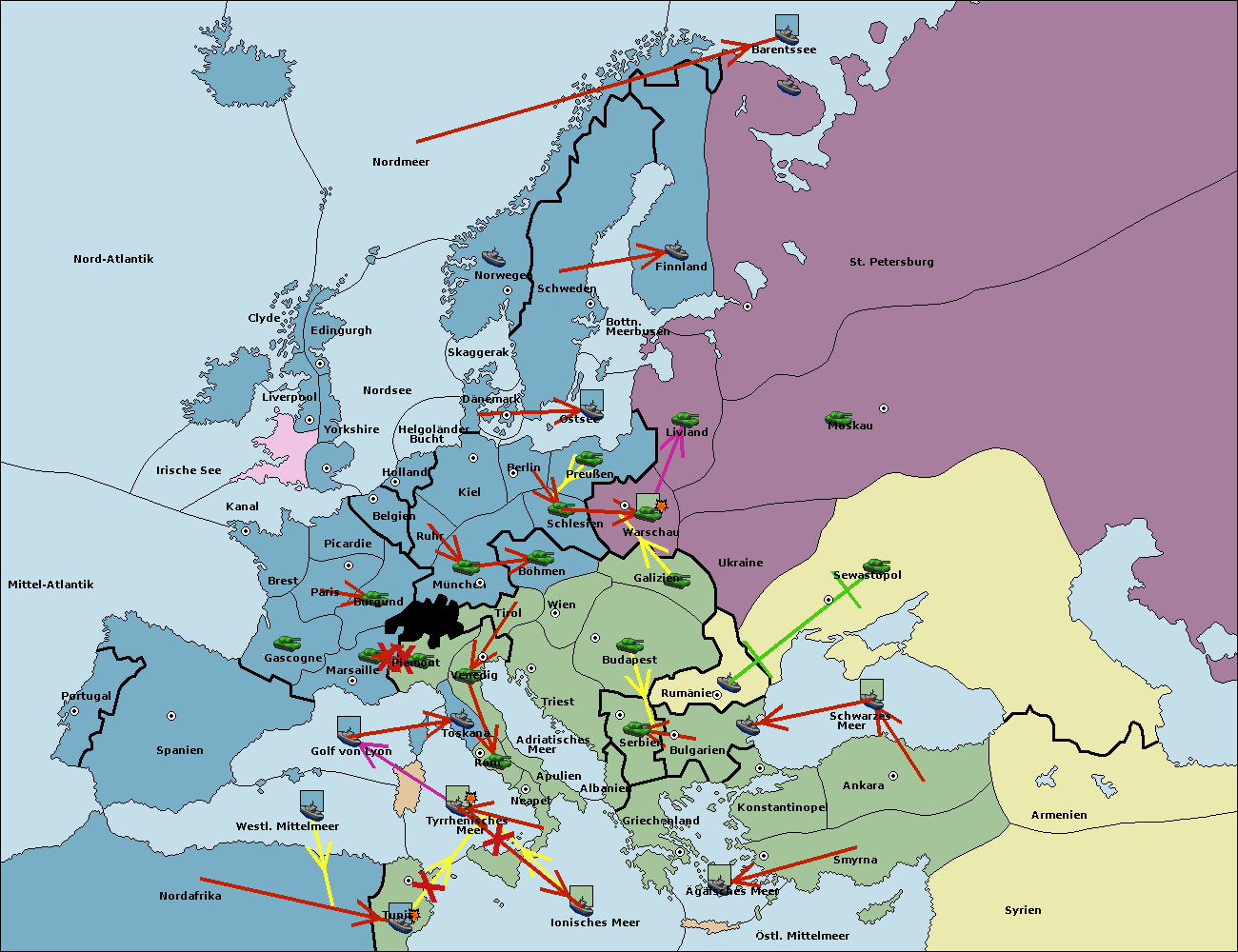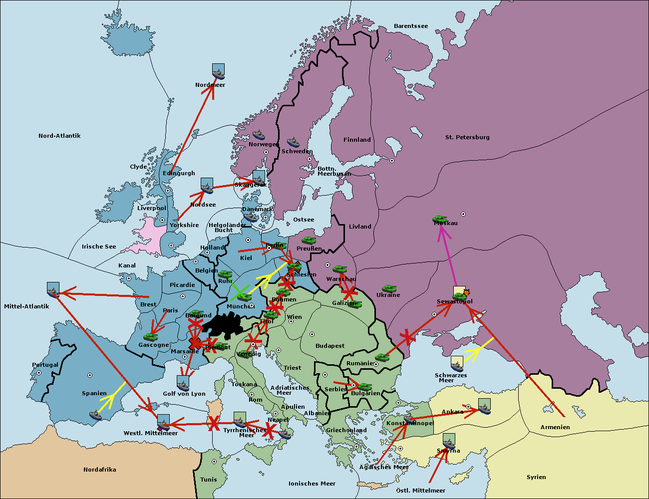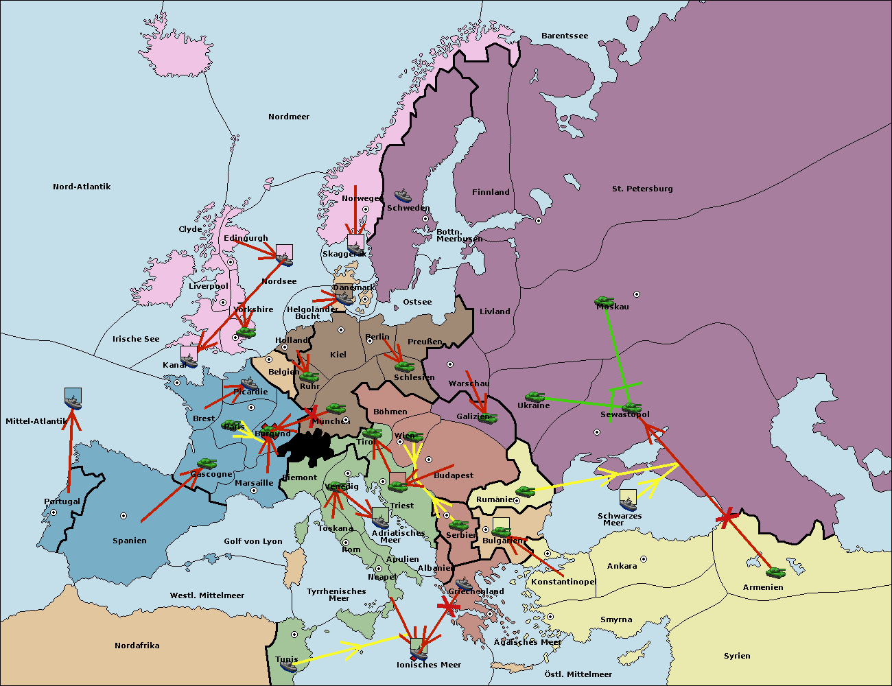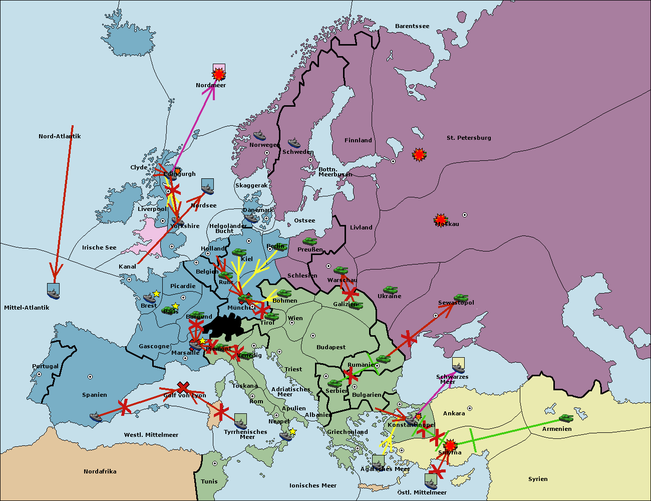 • Die Armee in Konstantinopel support hold nach Bulgarien.