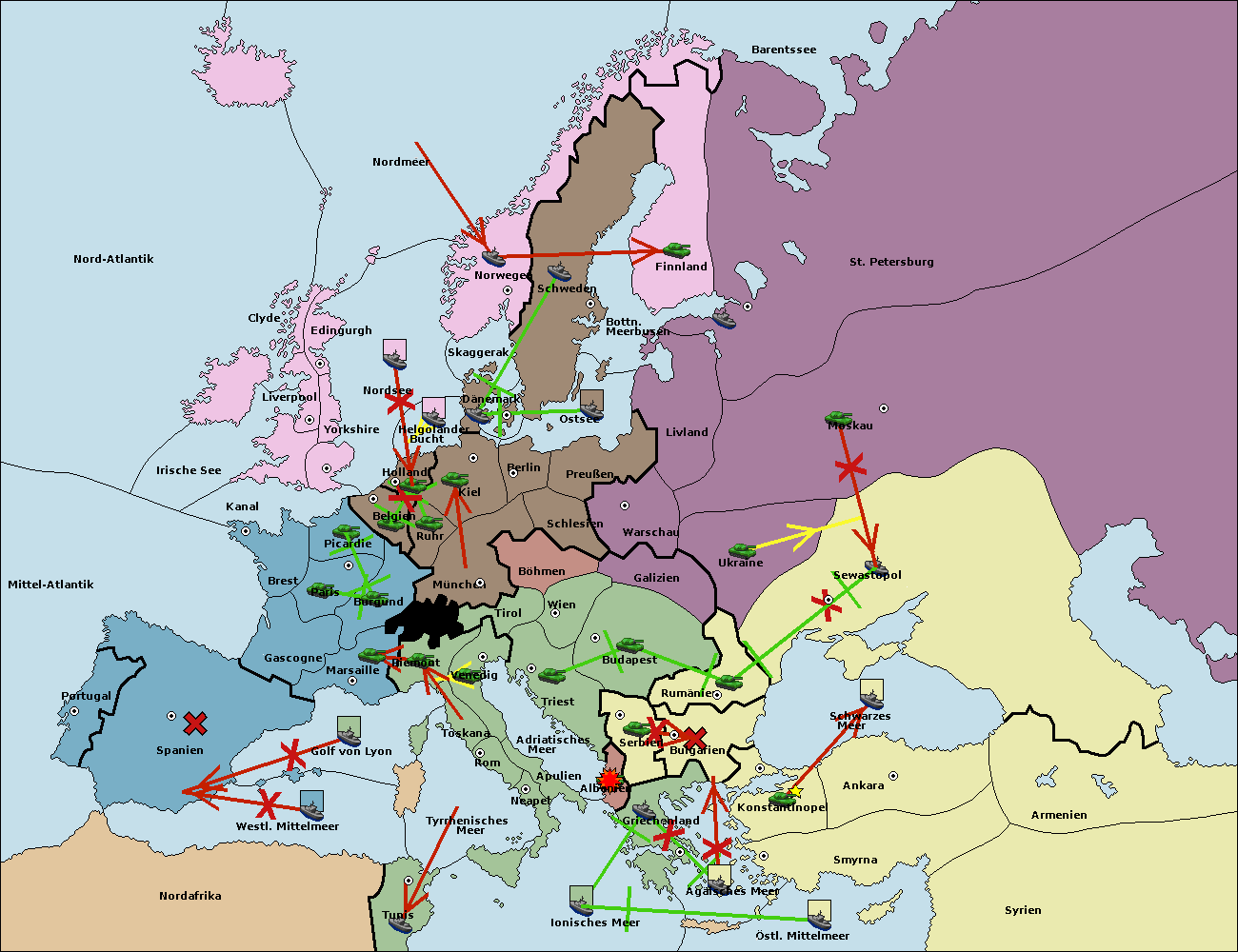 • Die Flotte in Konstantinopel support hold nach Bulgarien.