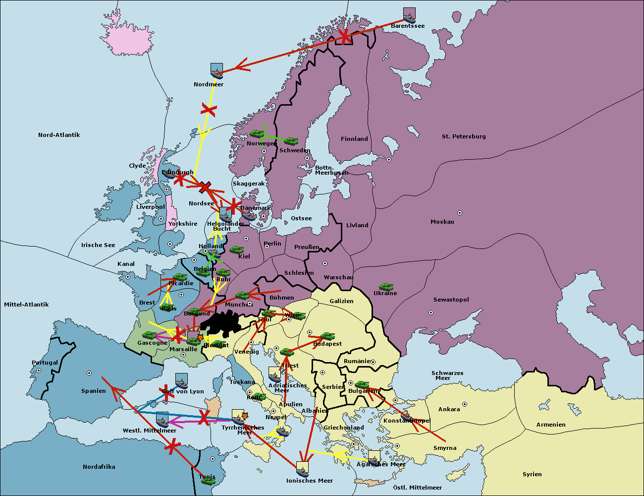 • Die Flotte in Tyrrhenisches Meer support hold nach Golf von Lyon.
