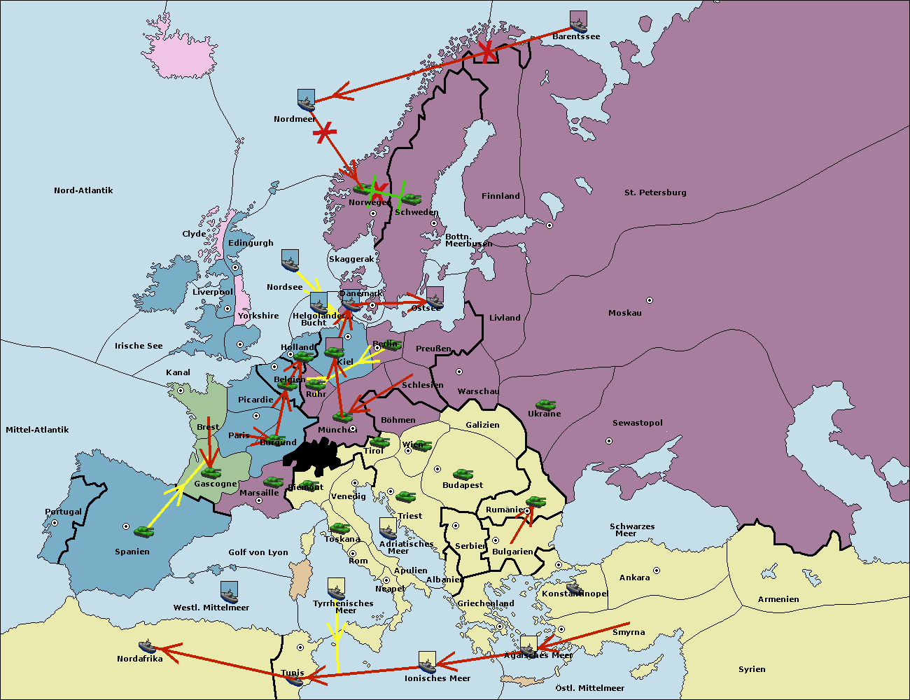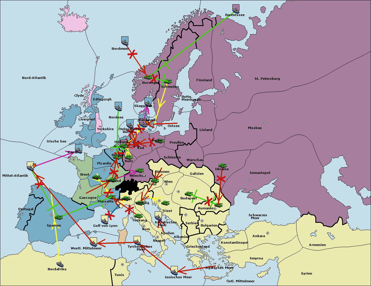 • Die Armee in Kiel support move nach Holland von Ruhr. (gescheitert)