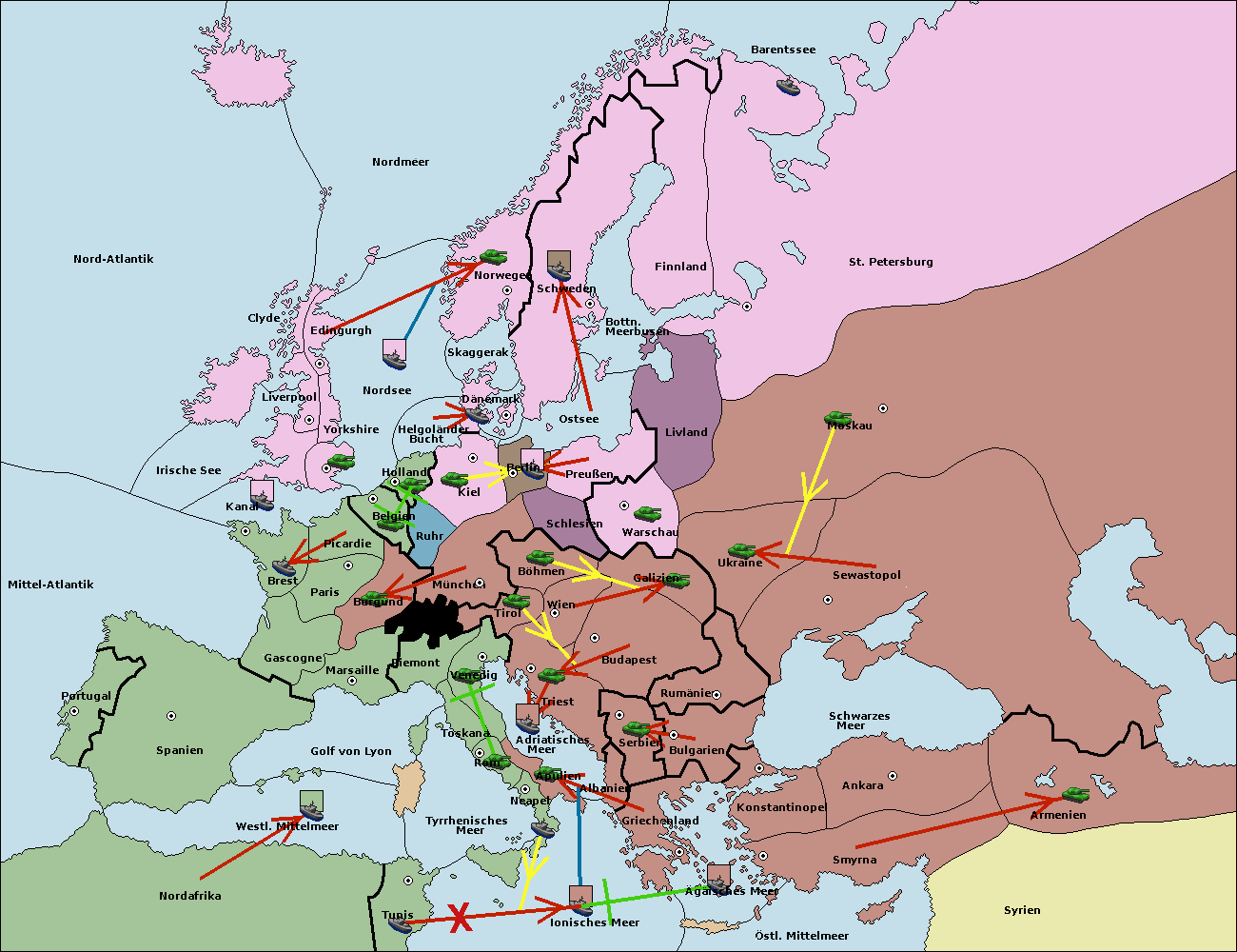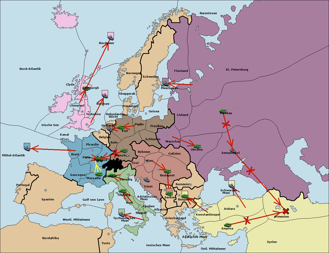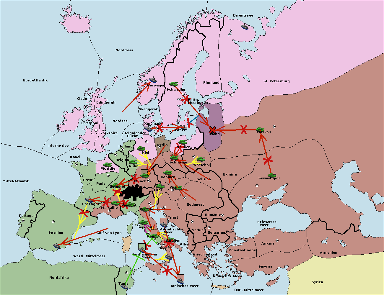• Die Armee in München wird zerstörtFlotte in München gebaut.
