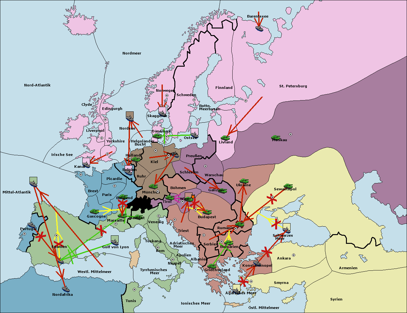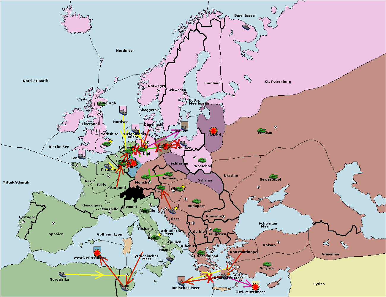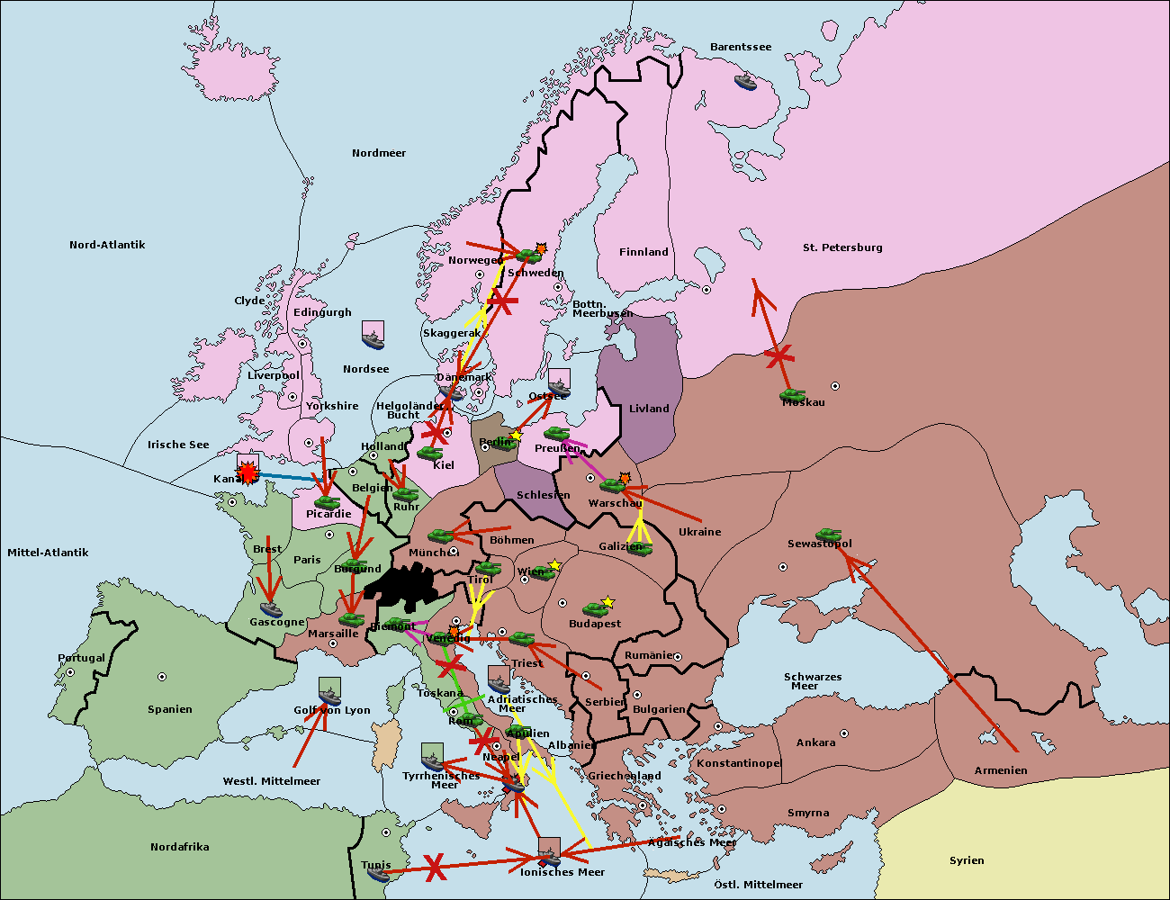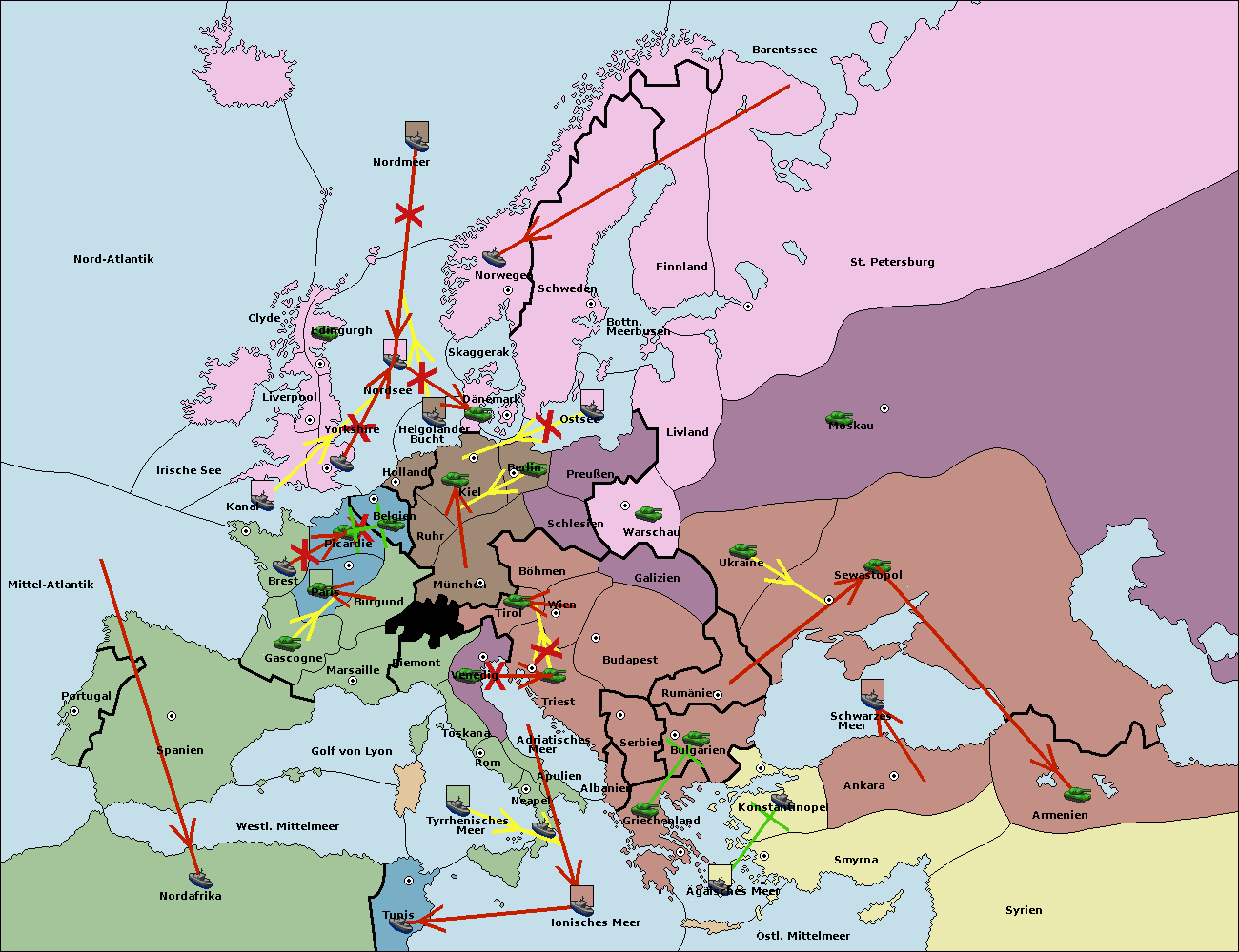 • Die Armee in München wird zerstörtFlotte in München gebaut.