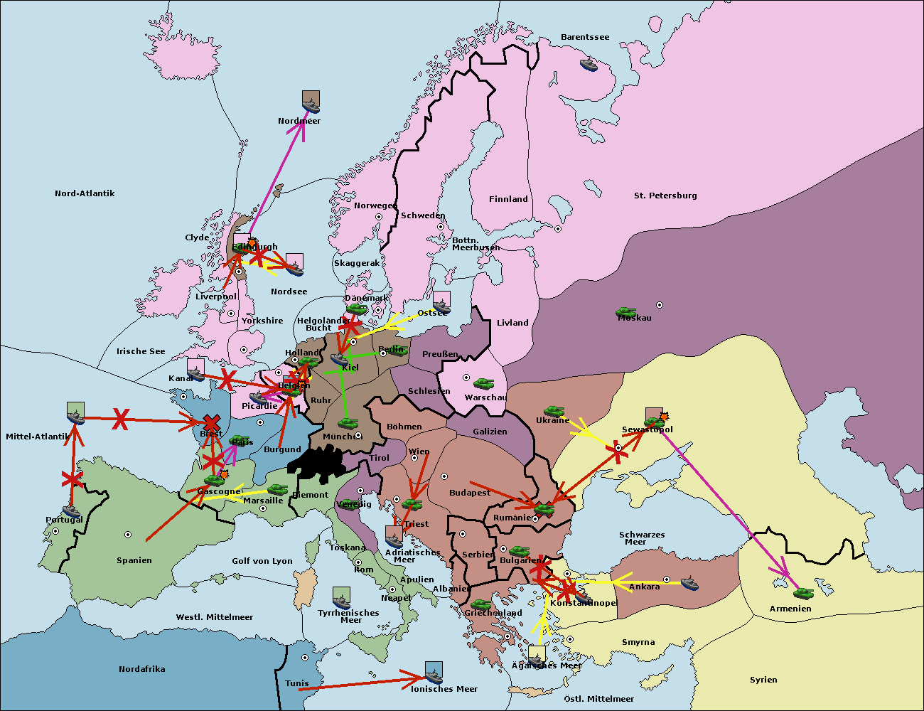 • Die Armee in Konstantinopel support hold nach Bulgarien.