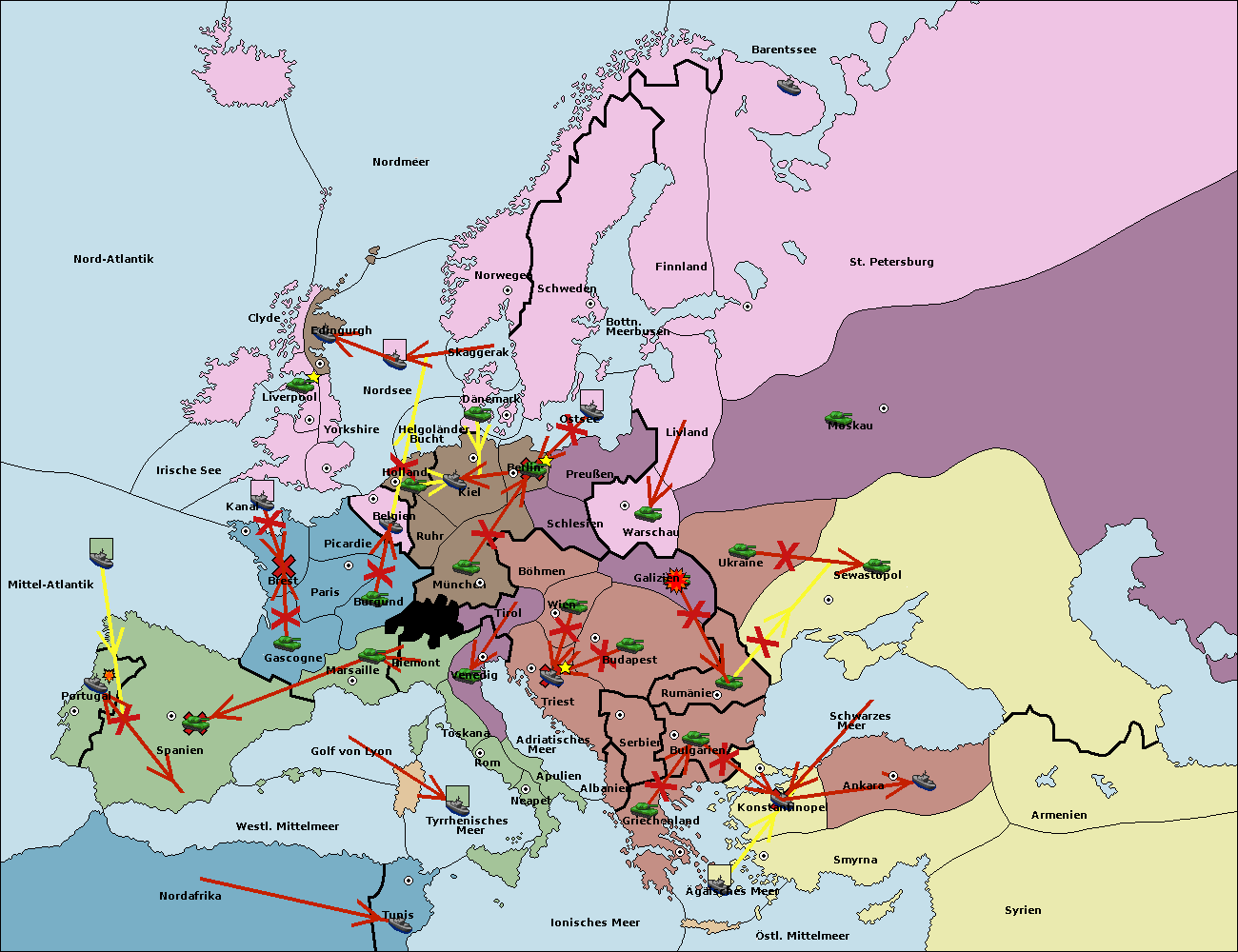• Die Flotte in Spanien (Südküste) move nach westl. Mittelmeer. (gescheitert)