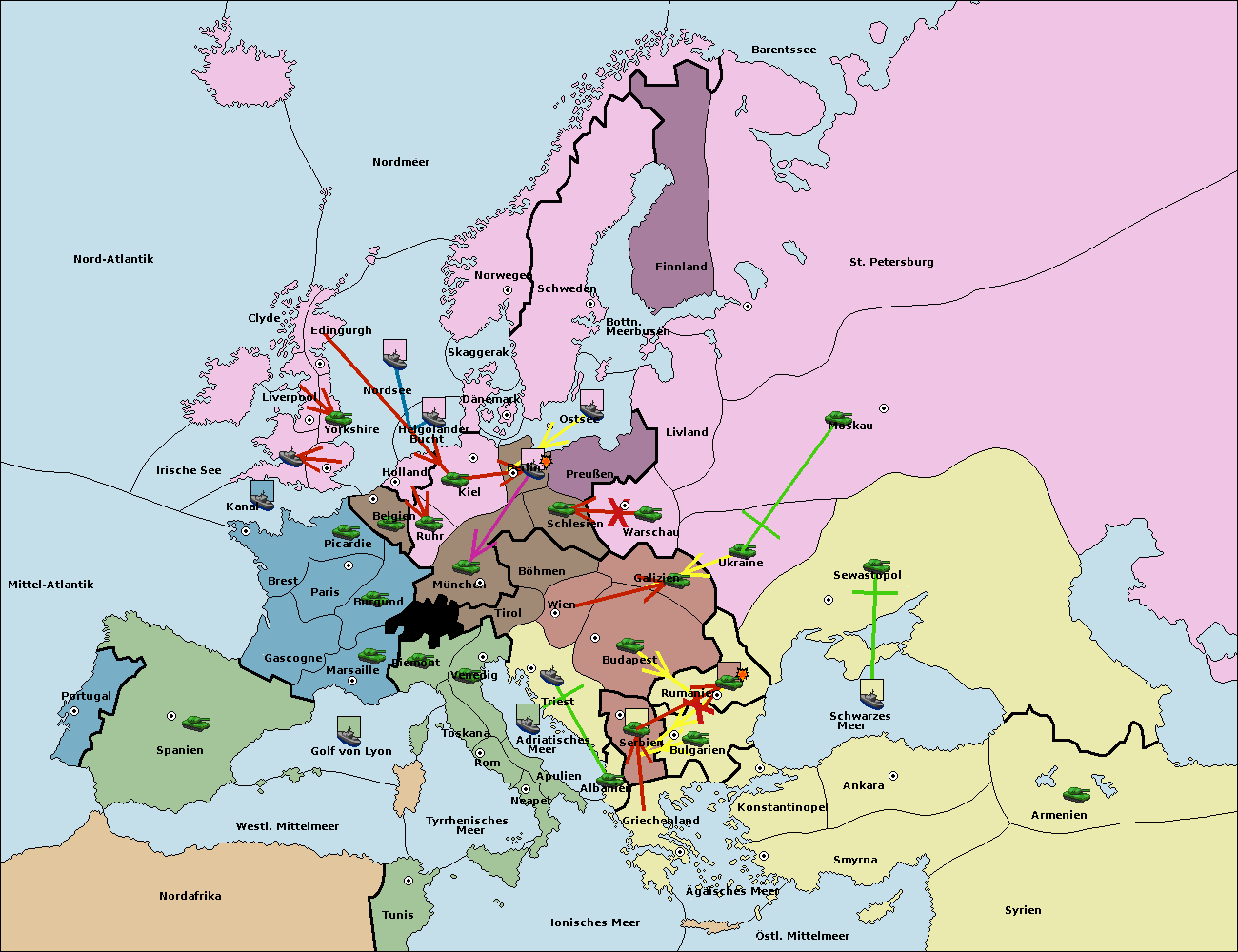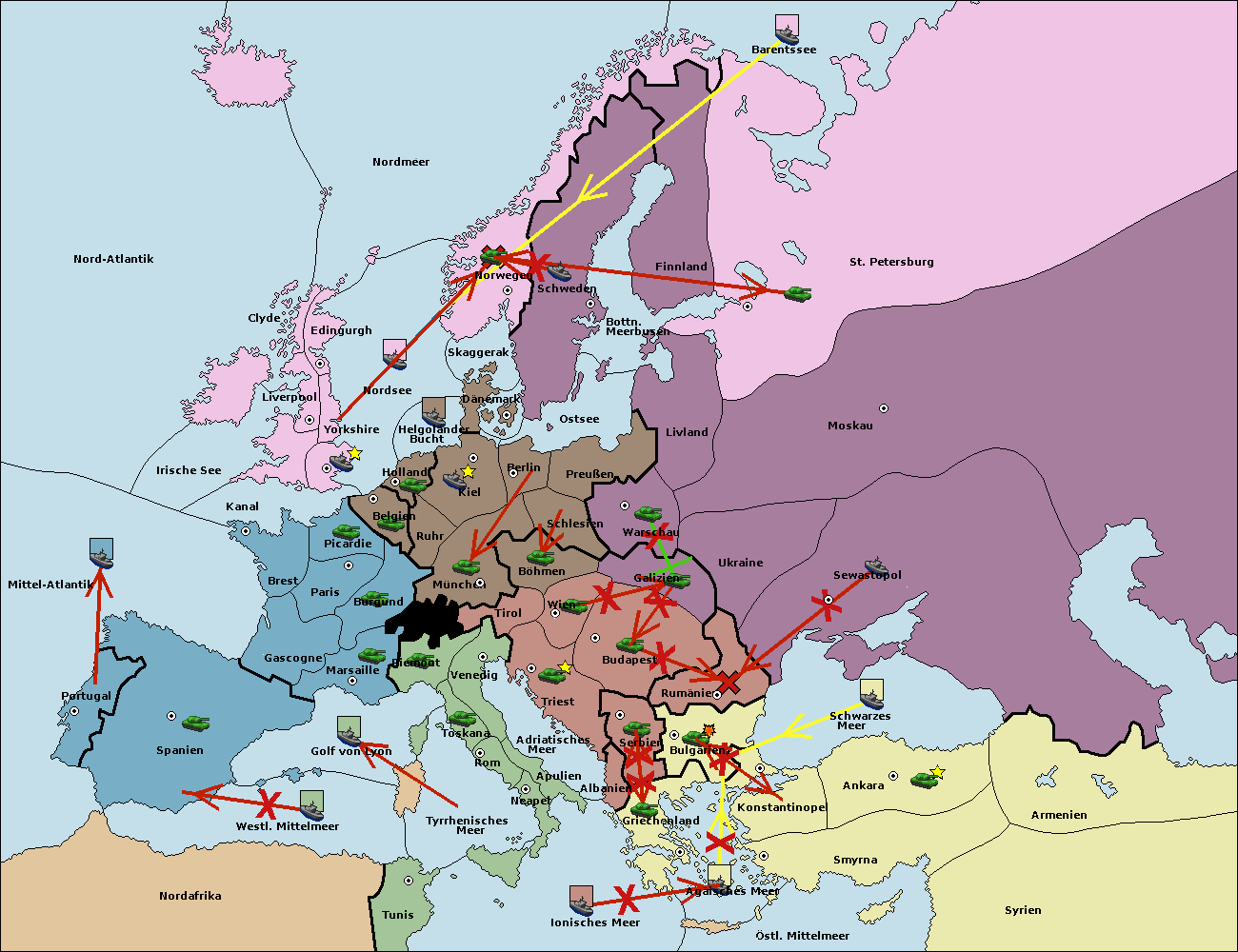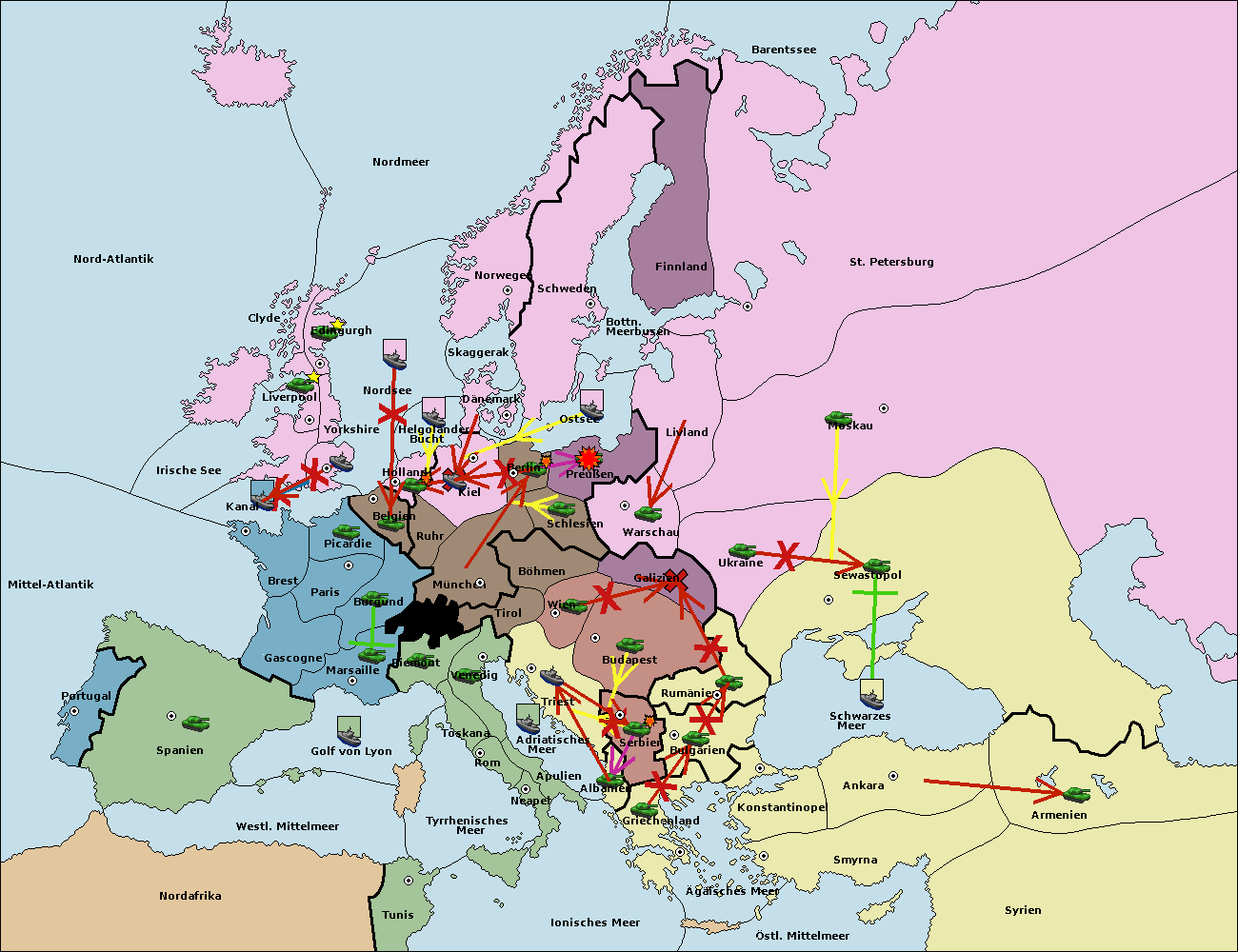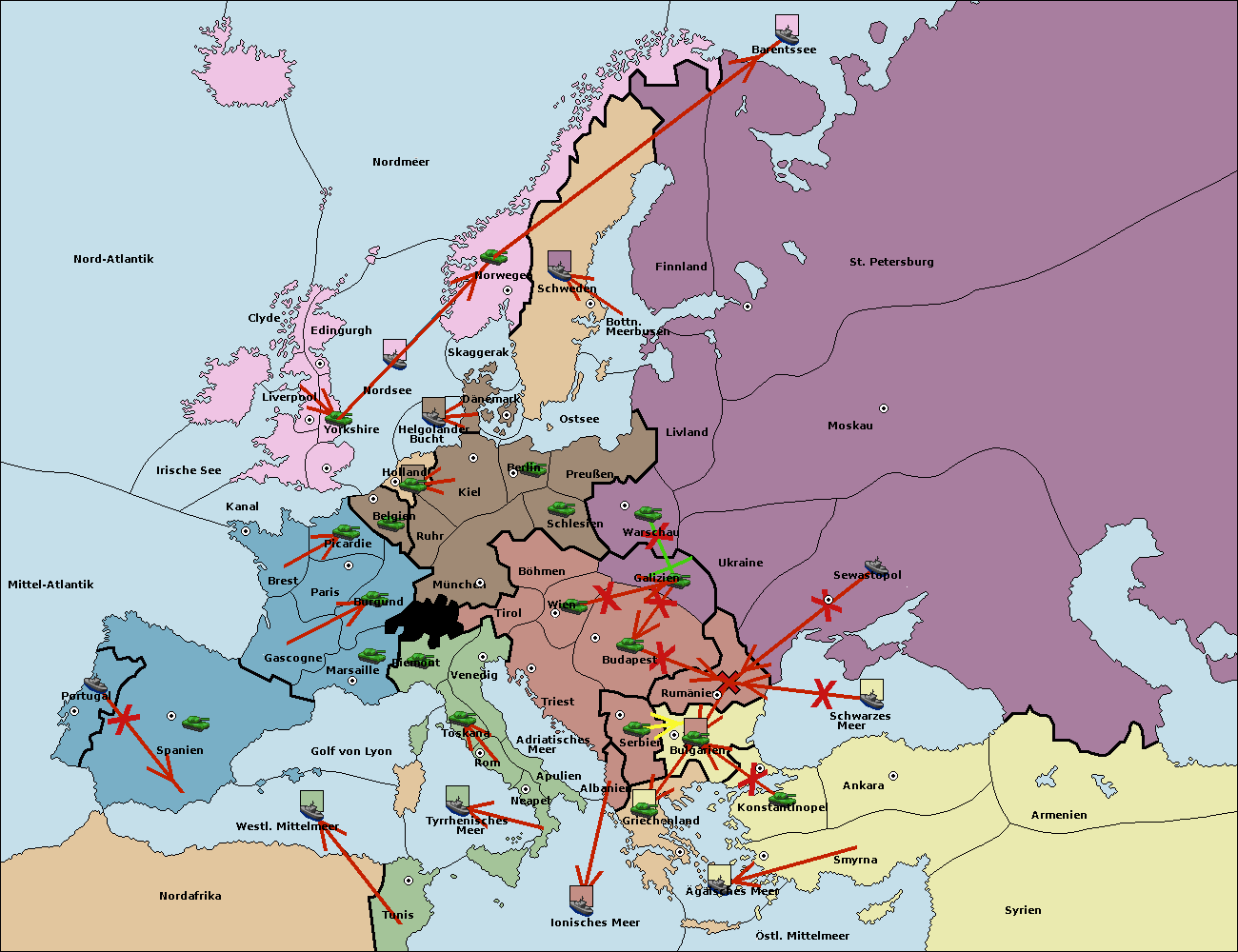 • Die Armee in Bulgarien wird zerstörtFlotte in Bulgarien gebaut.
