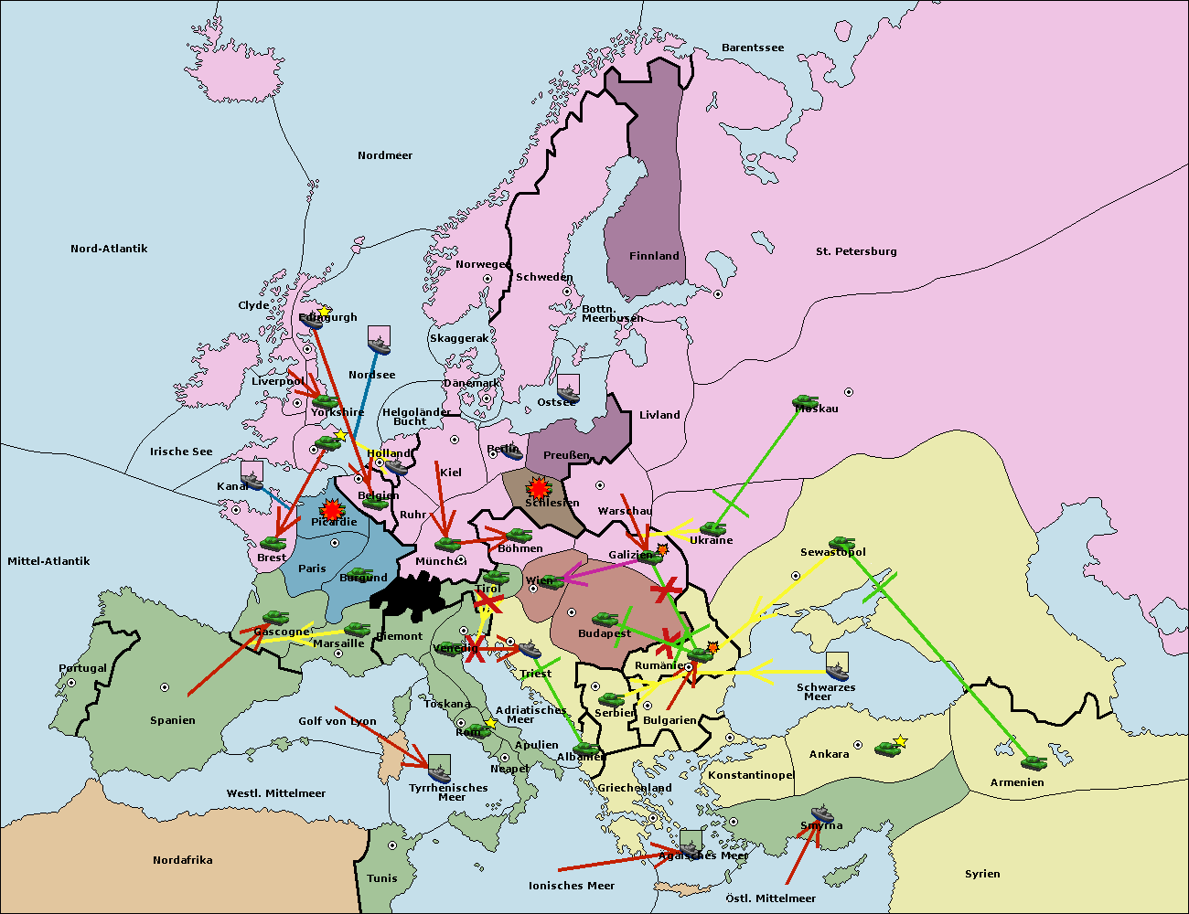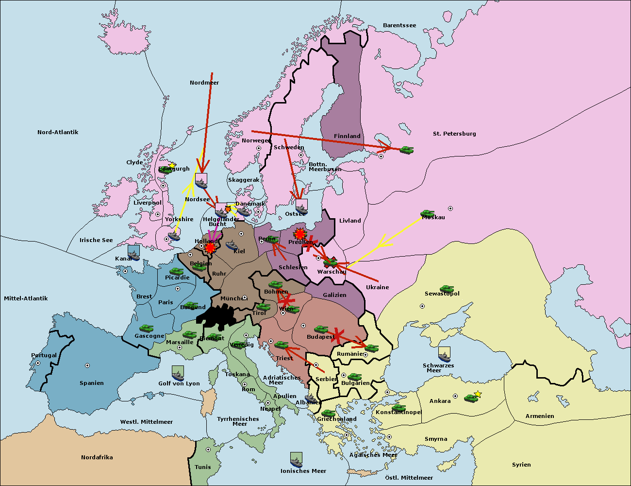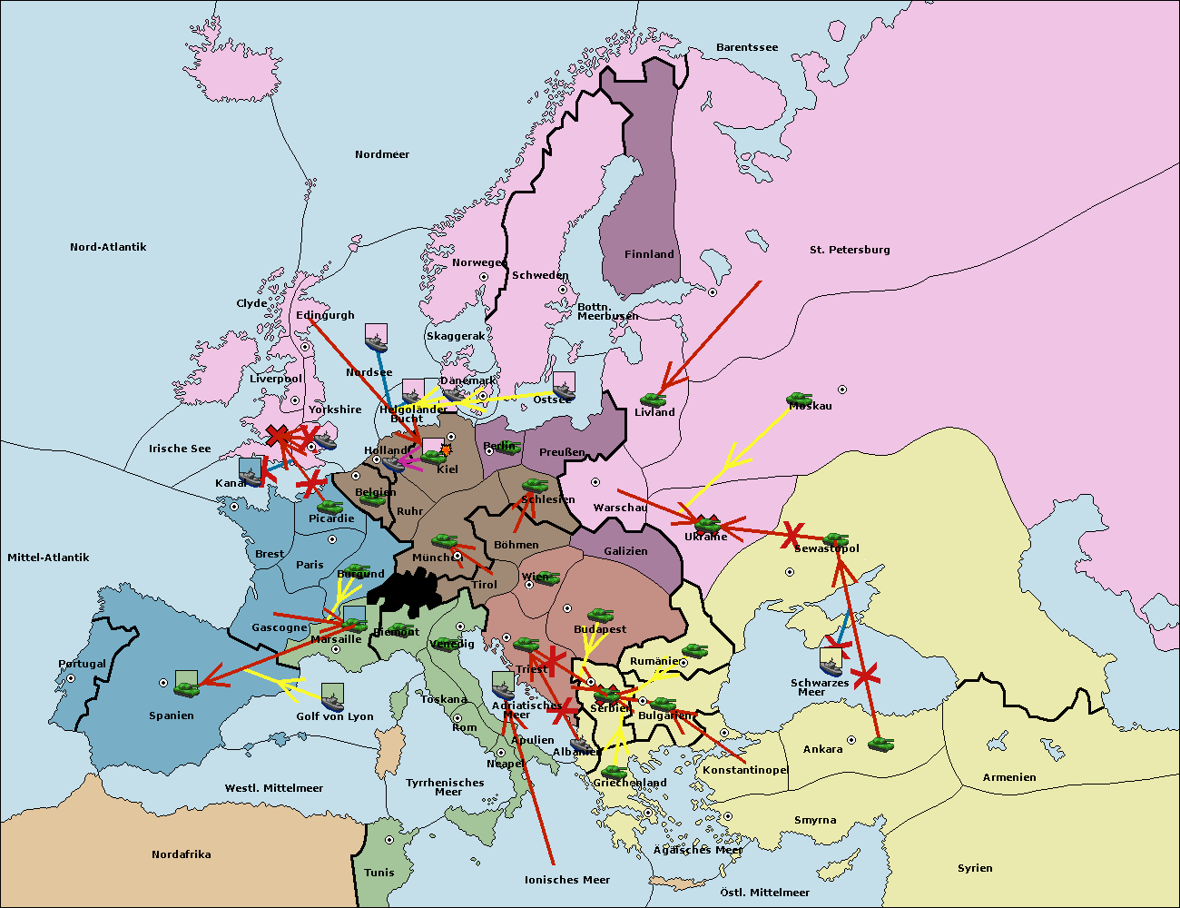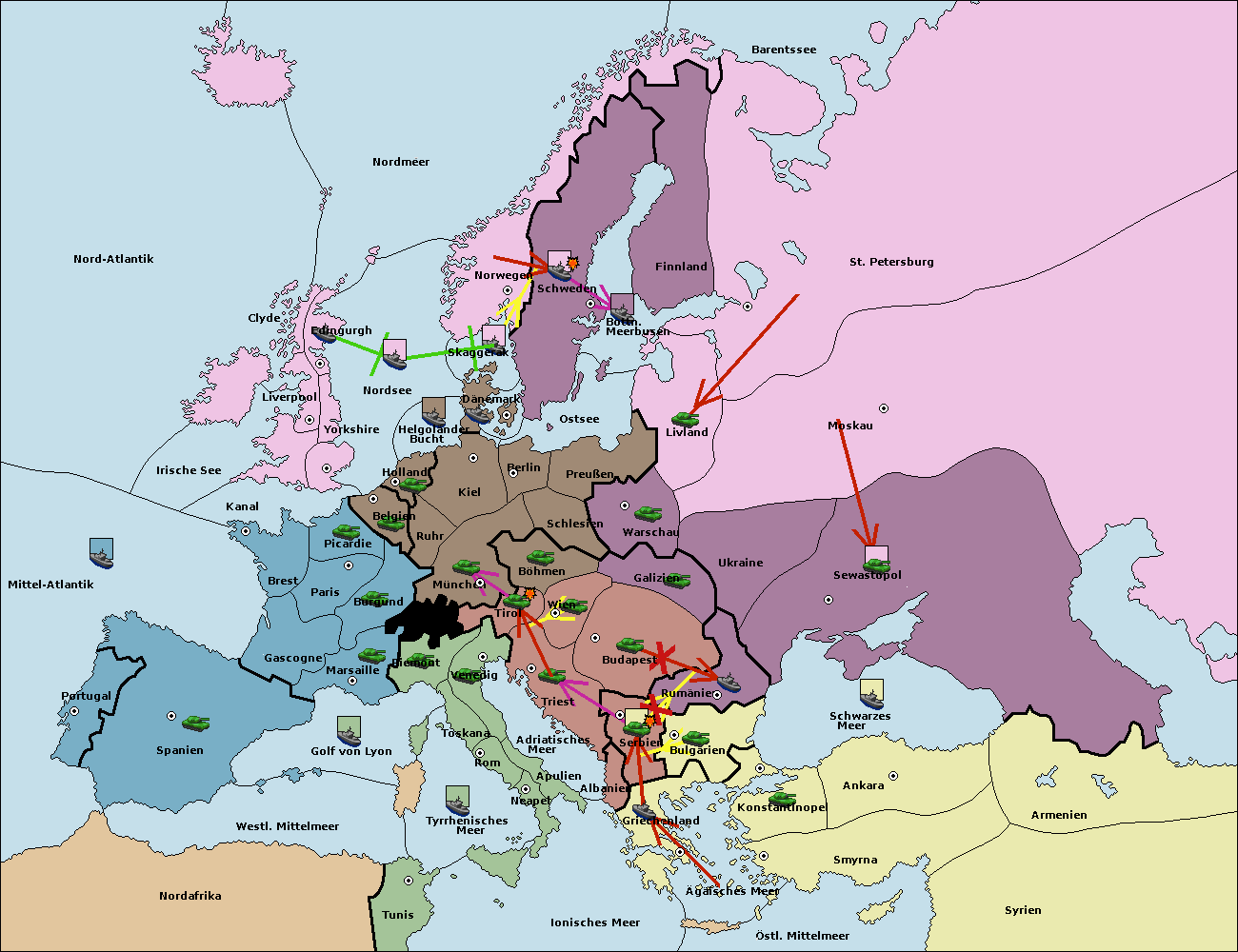 • Die Armee in Bulgarien wird zerstörtFlotte in Bulgarien gebaut.