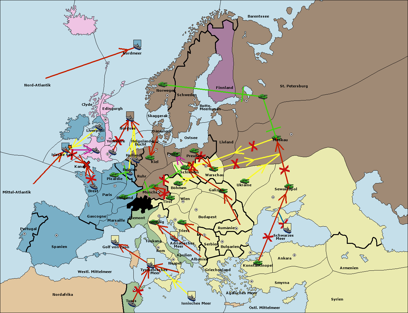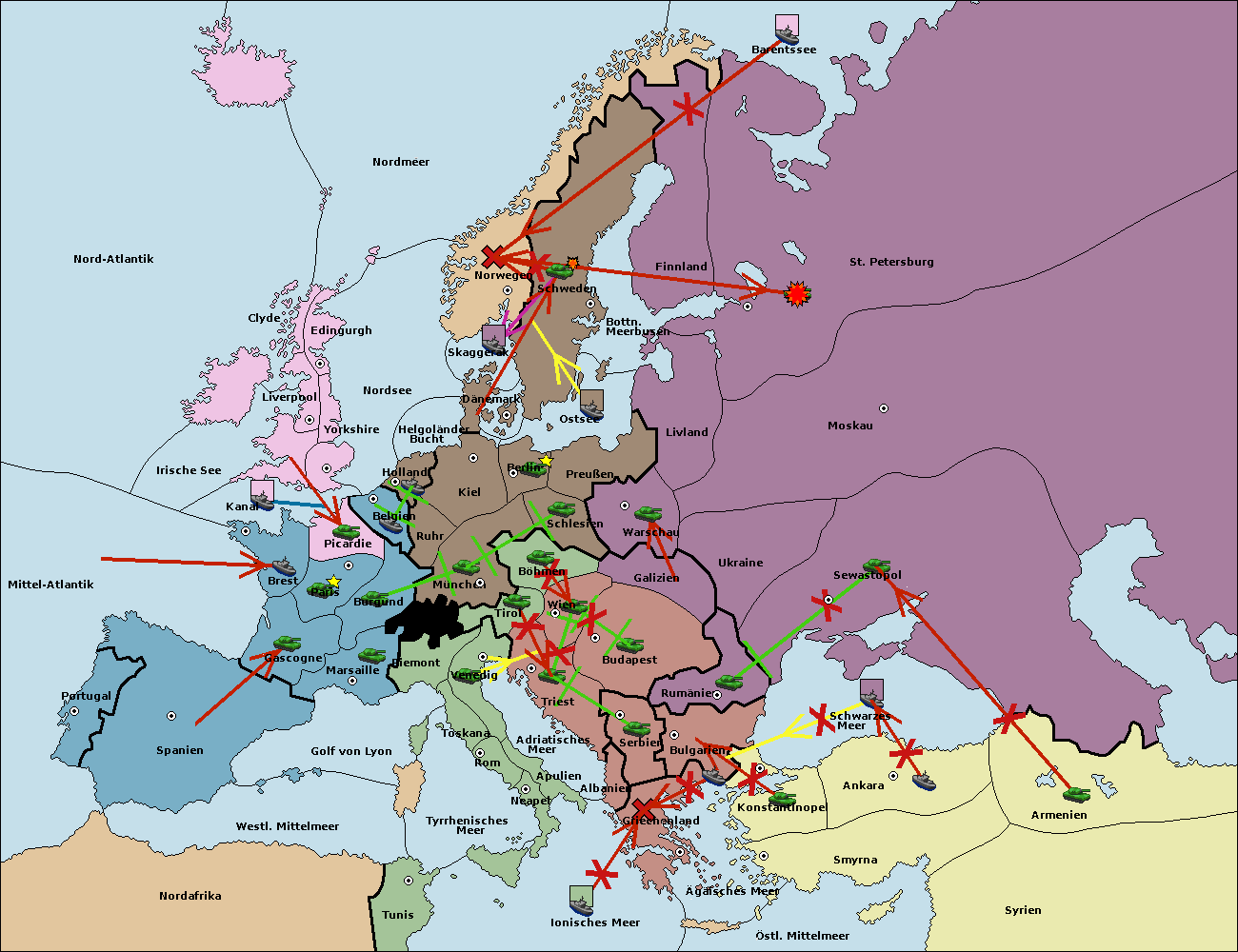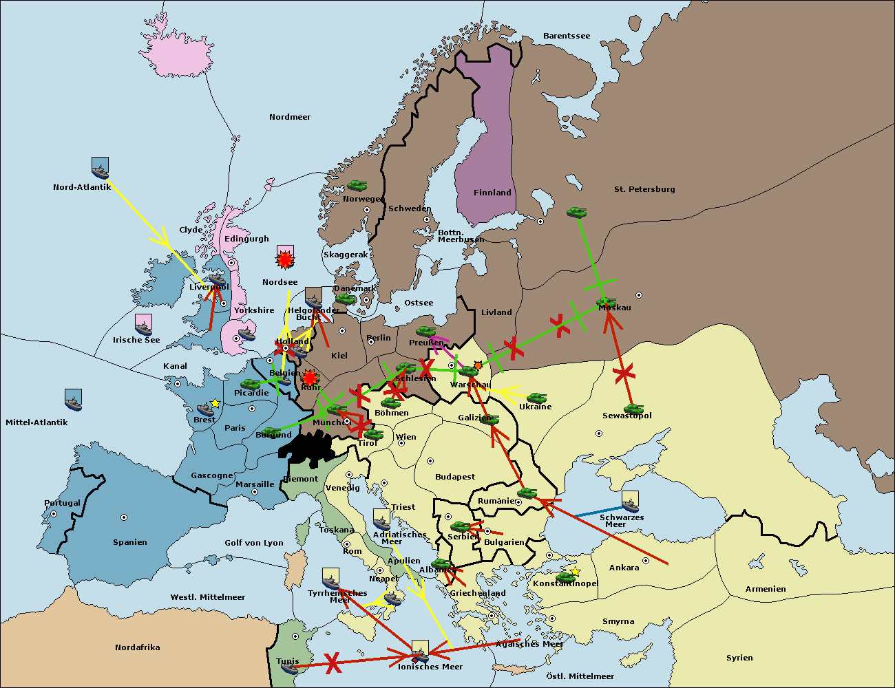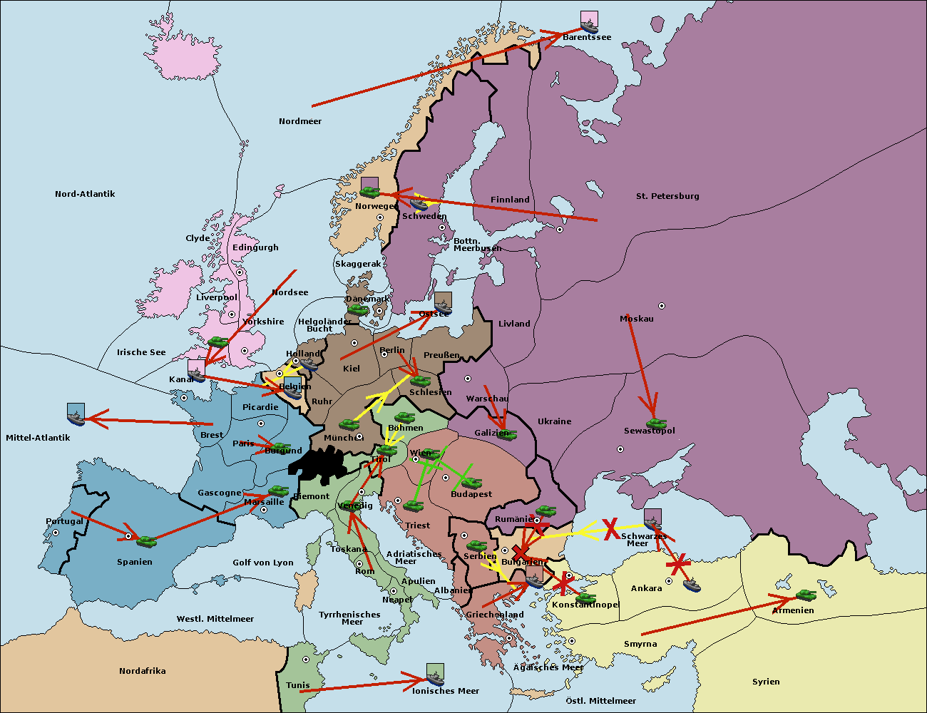 • Die Flotte in Bulgarien (Südküste) move nach Griechenland. (gescheitert)