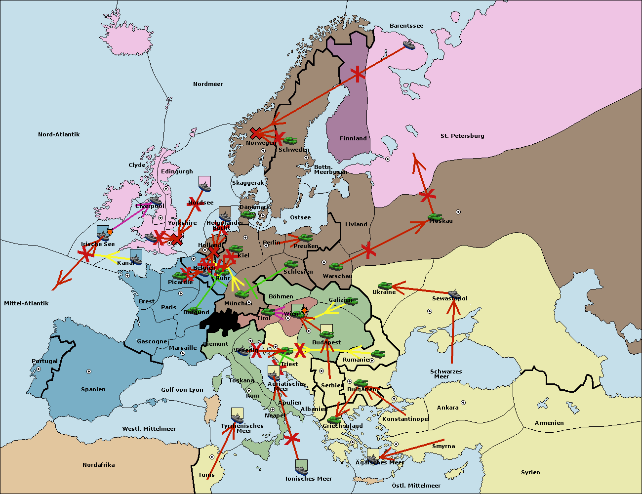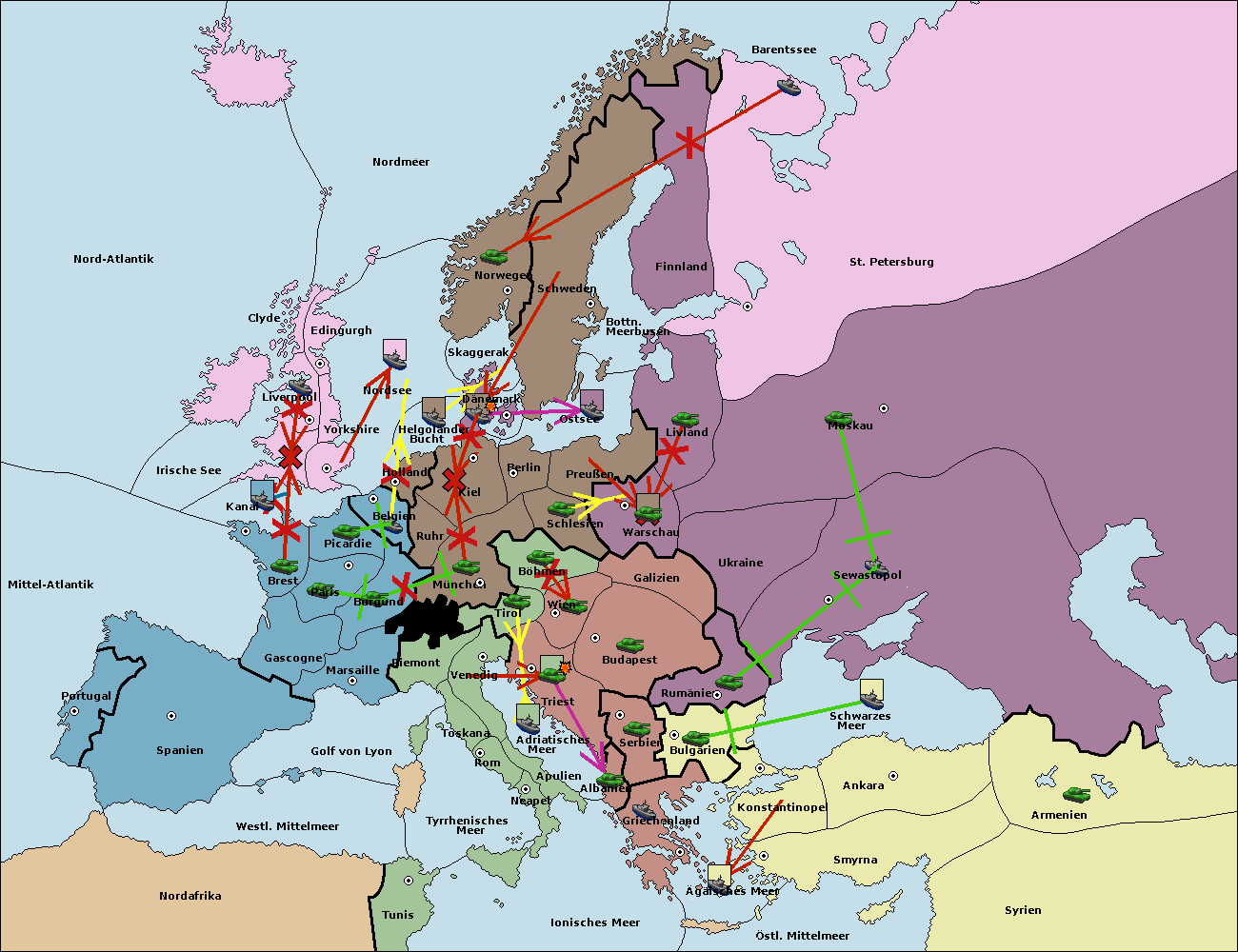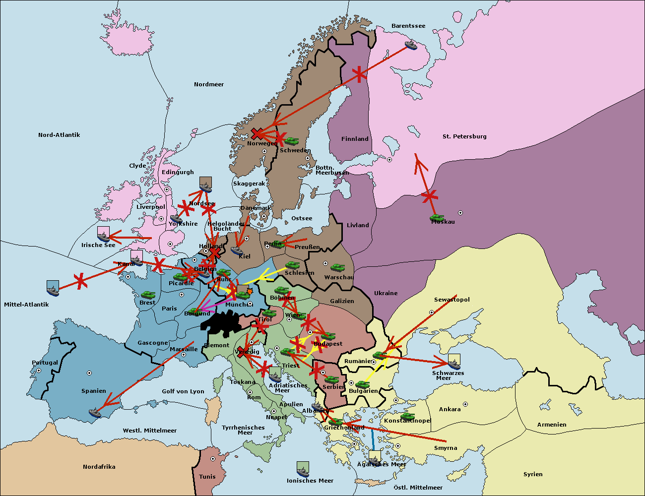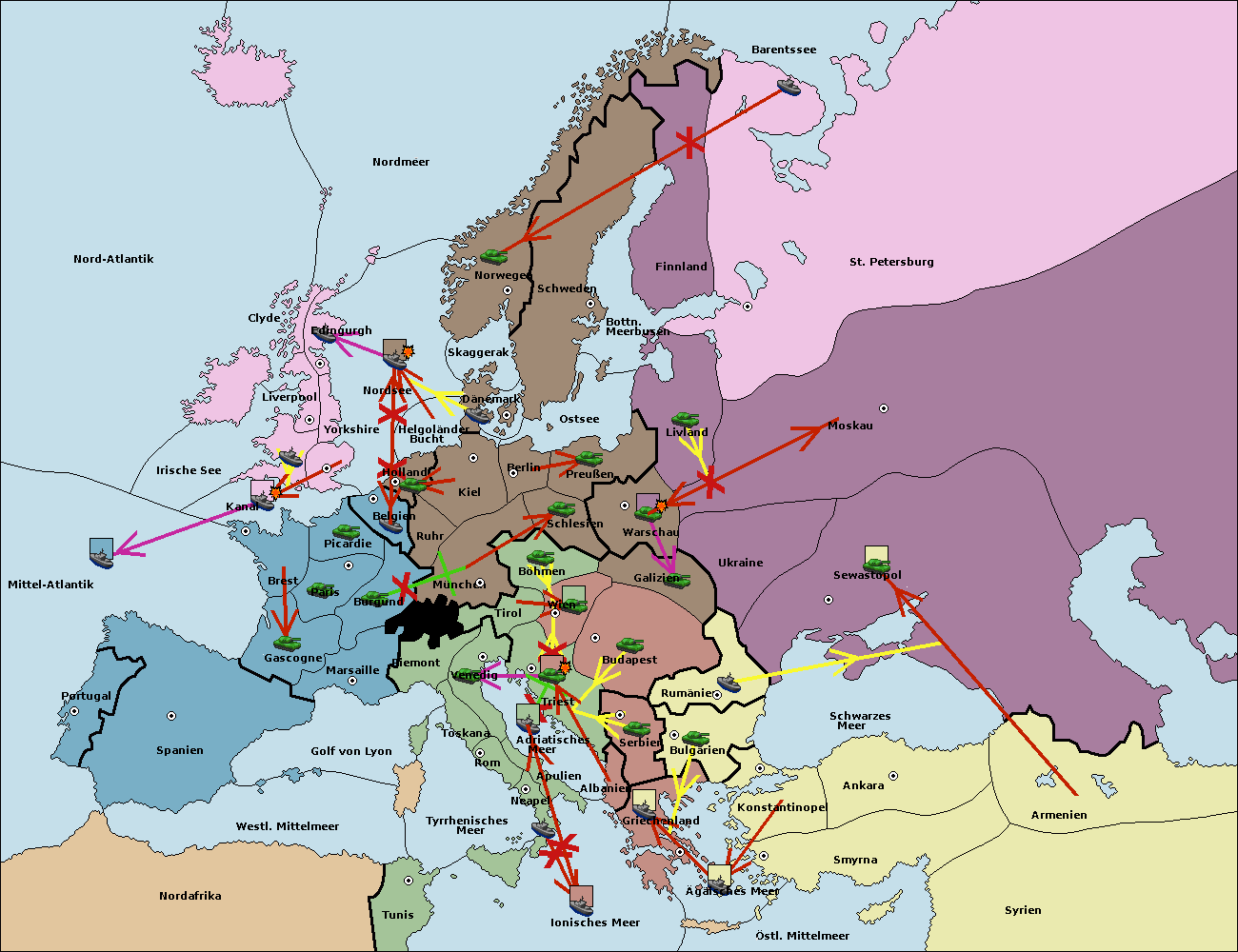 • Die Flotte in Bulgarien (Südküste) move nach Griechenland. (gescheitert)