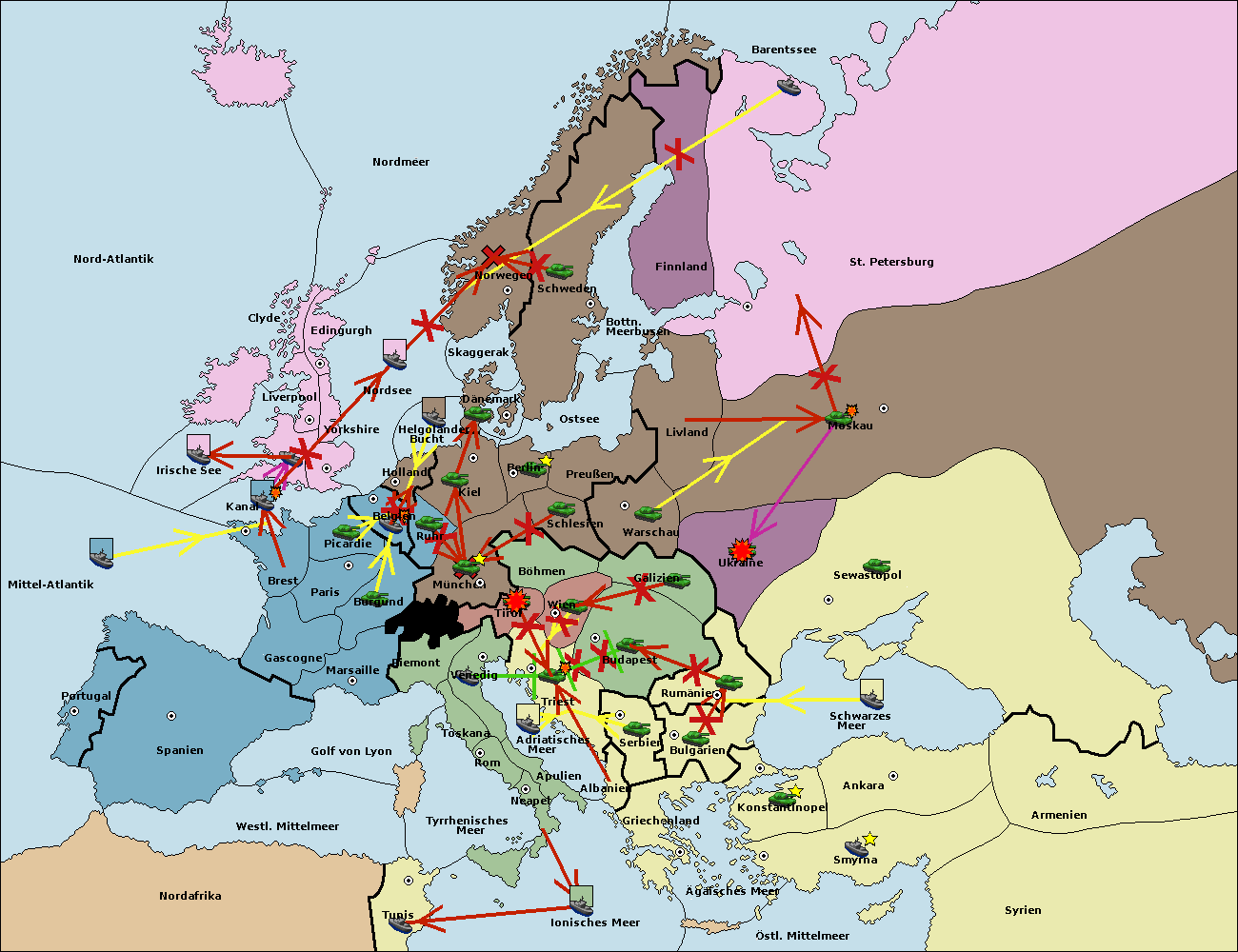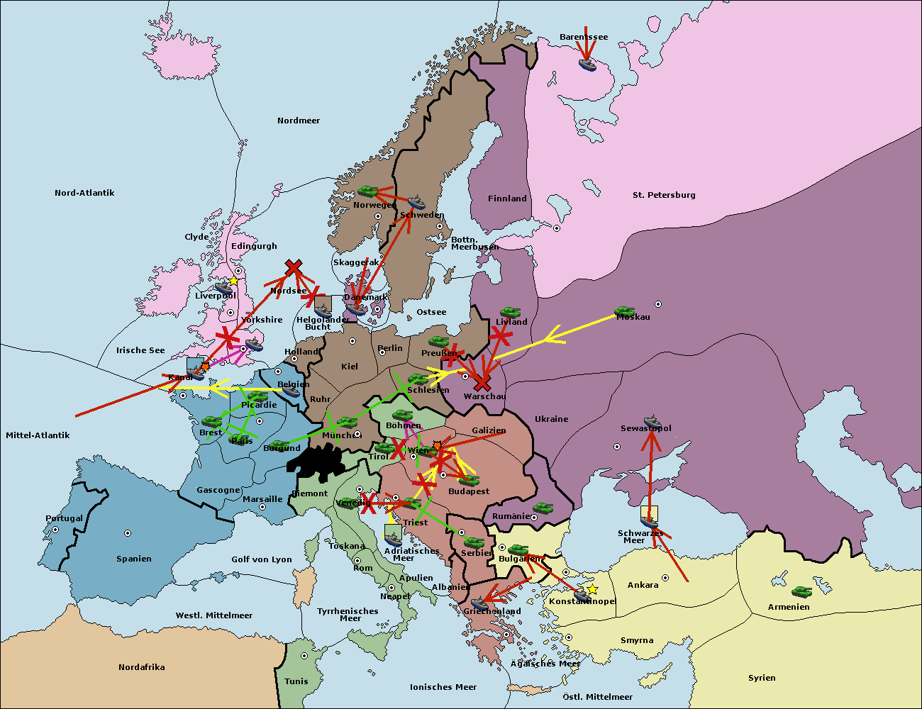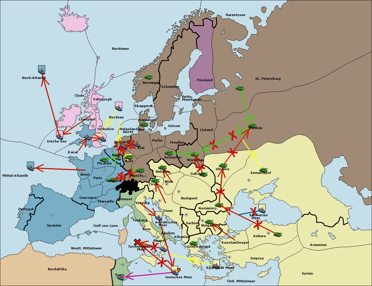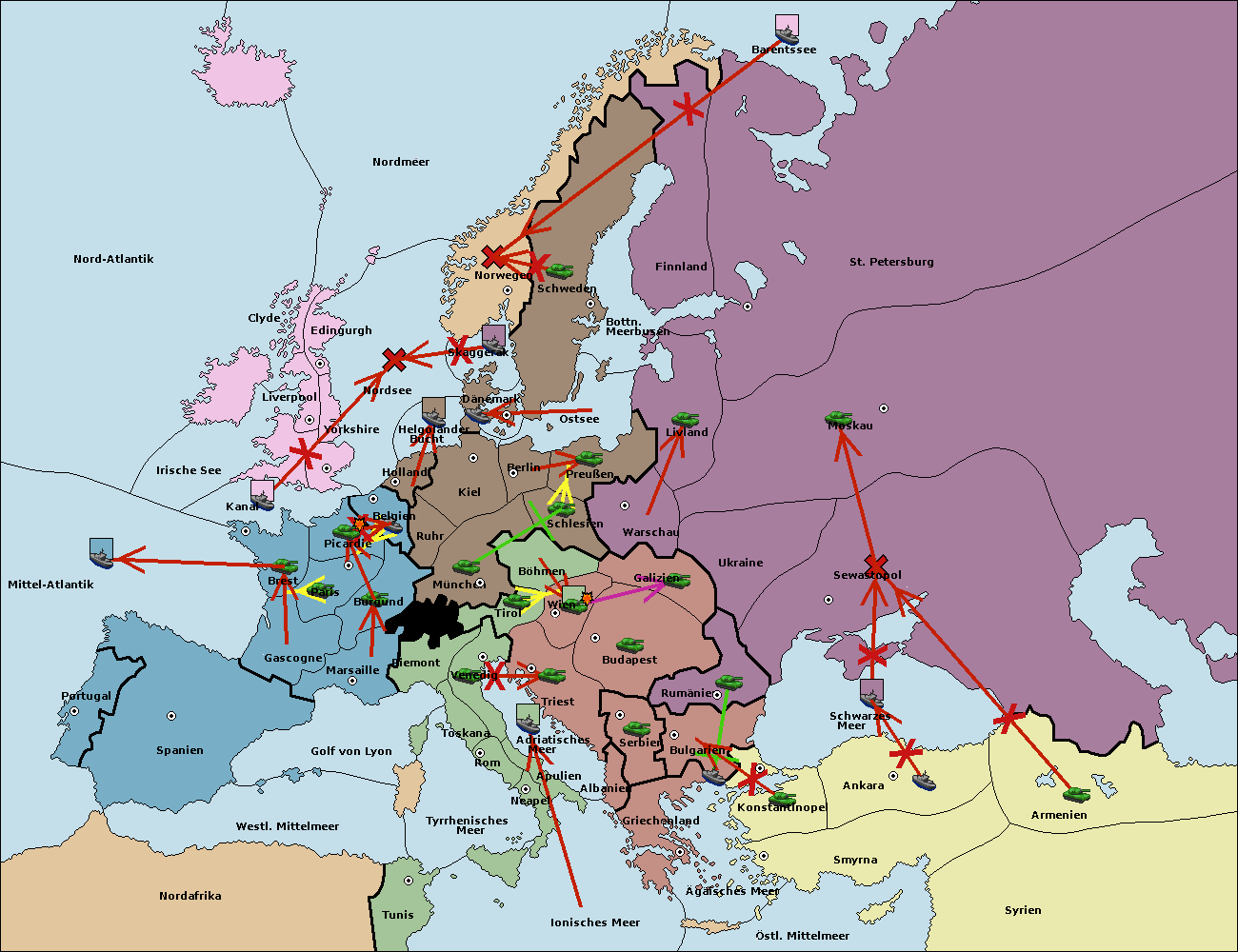 • Die Armee in Warschau support move nach Moskau von Sewastopol. (gescheitert)