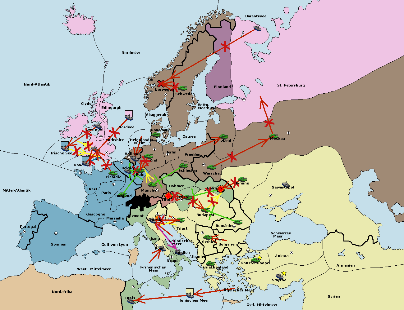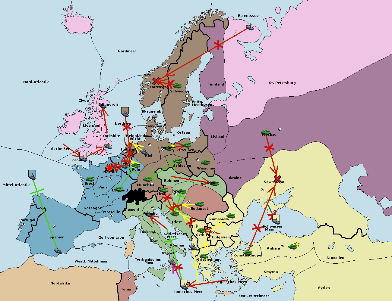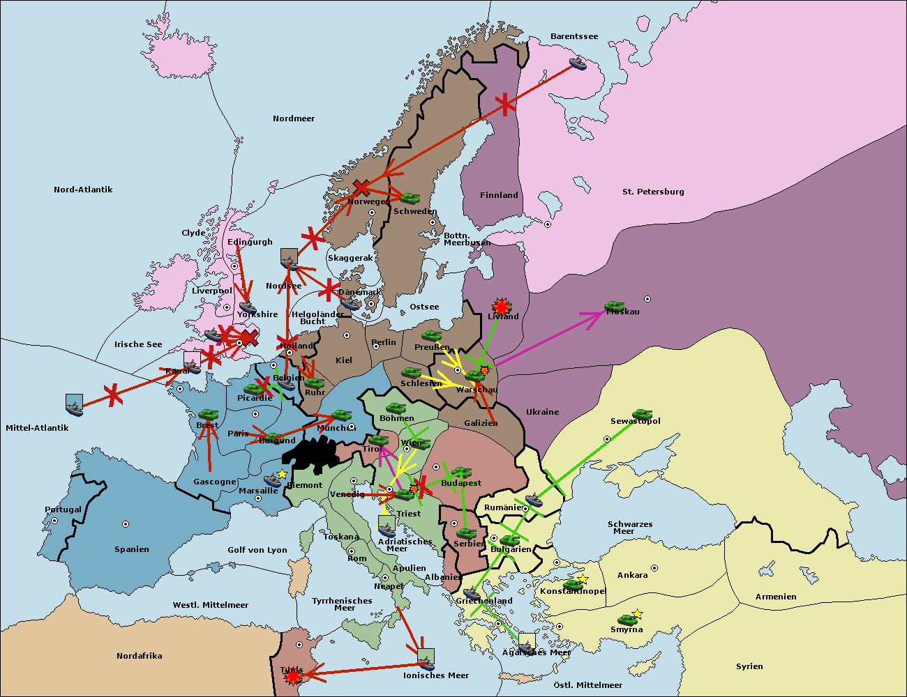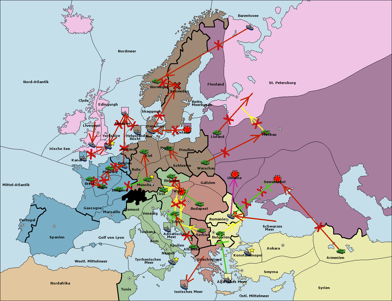 • Die Armee in Warschau support move nach Moskau von Sewastopol. (gescheitert)