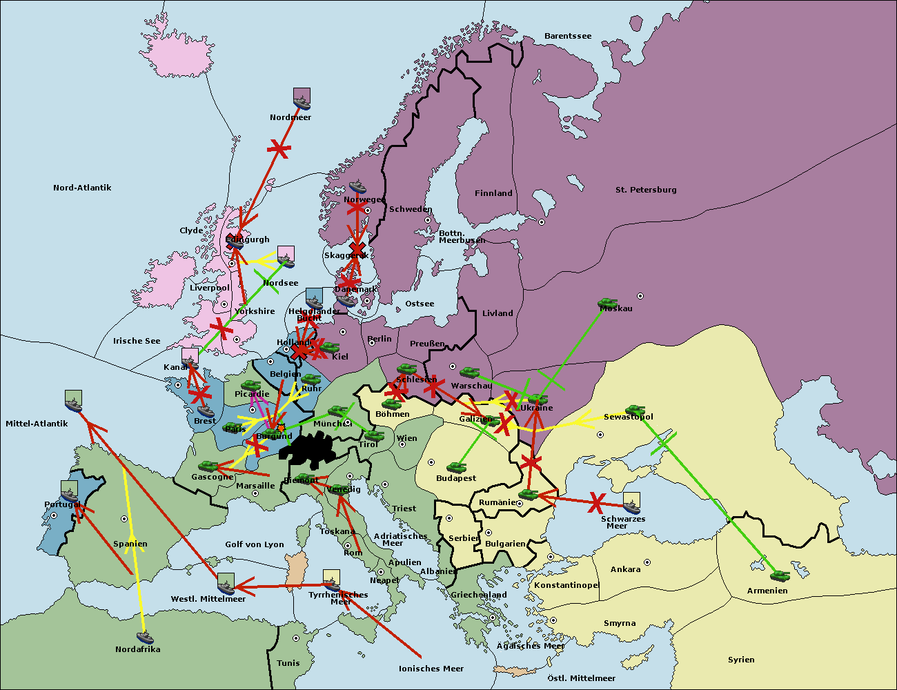 • Die Armee in Warschau support move nach Moskau von Sewastopol.