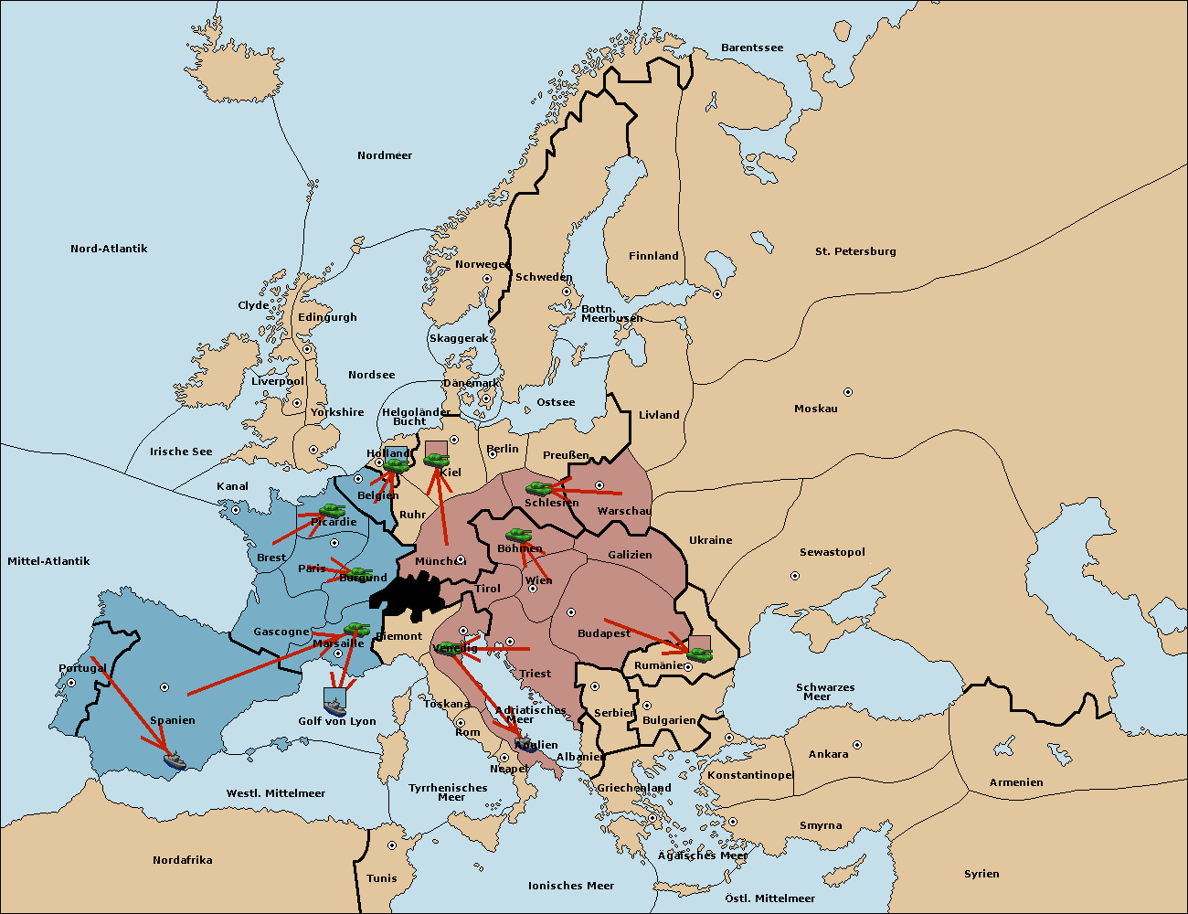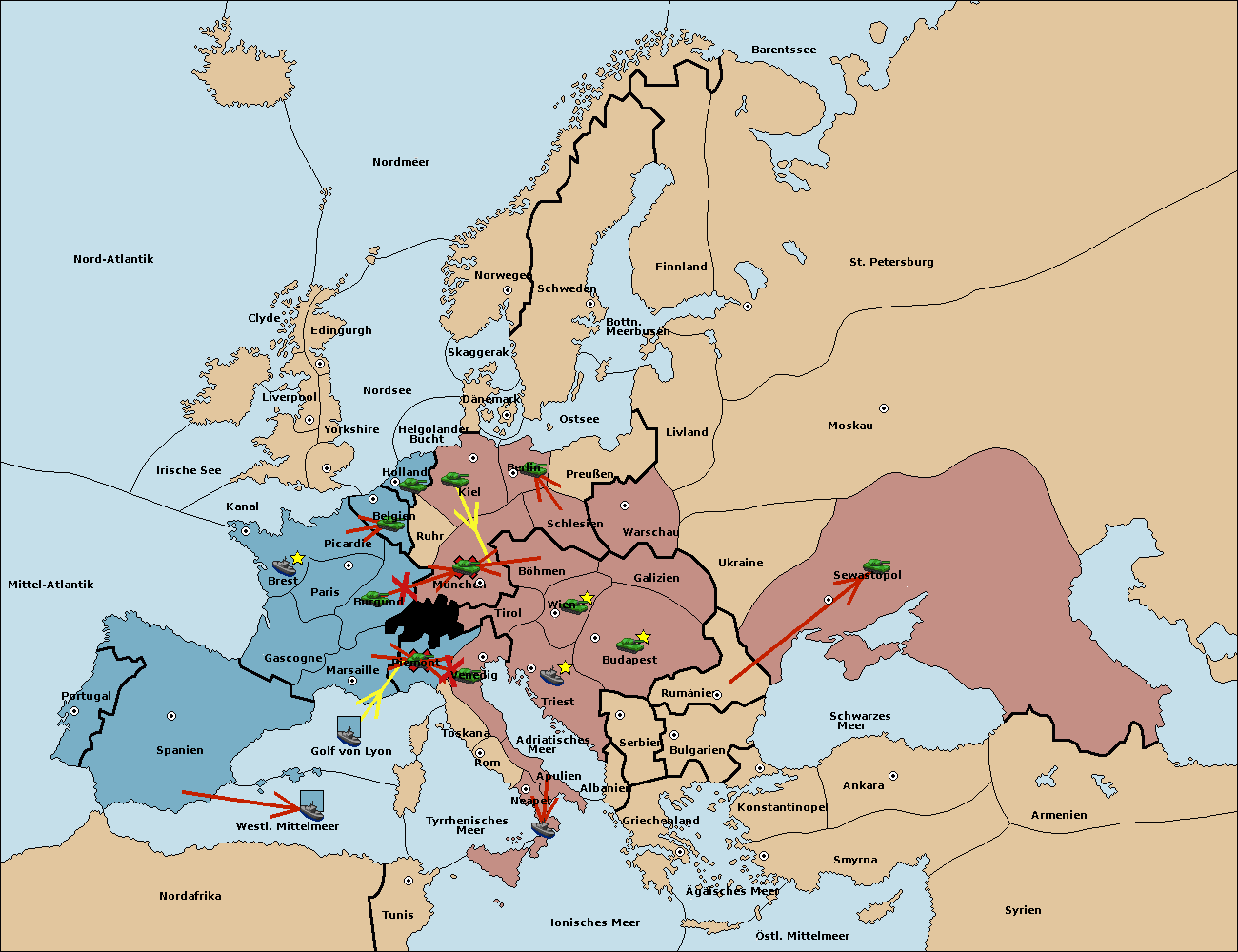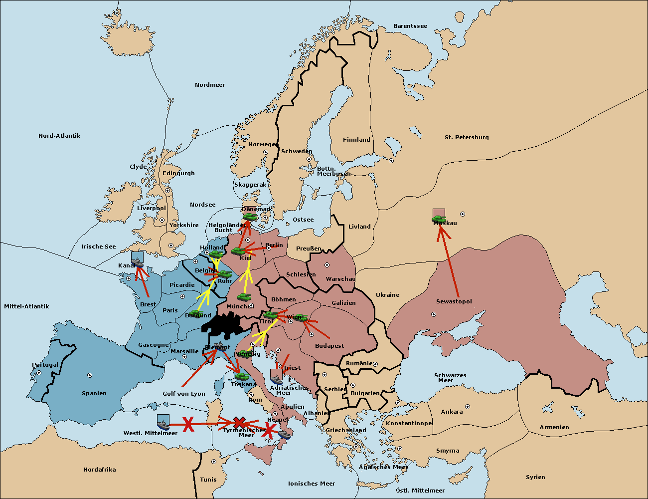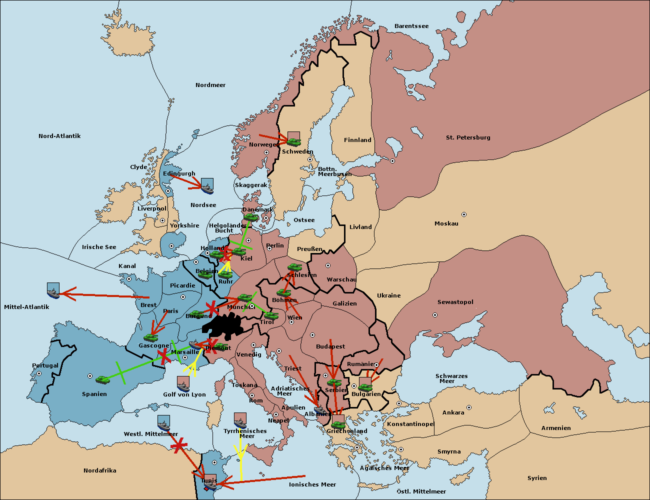 • Die Flotte in Marseille support hold nach Spanien. (gescheitert)