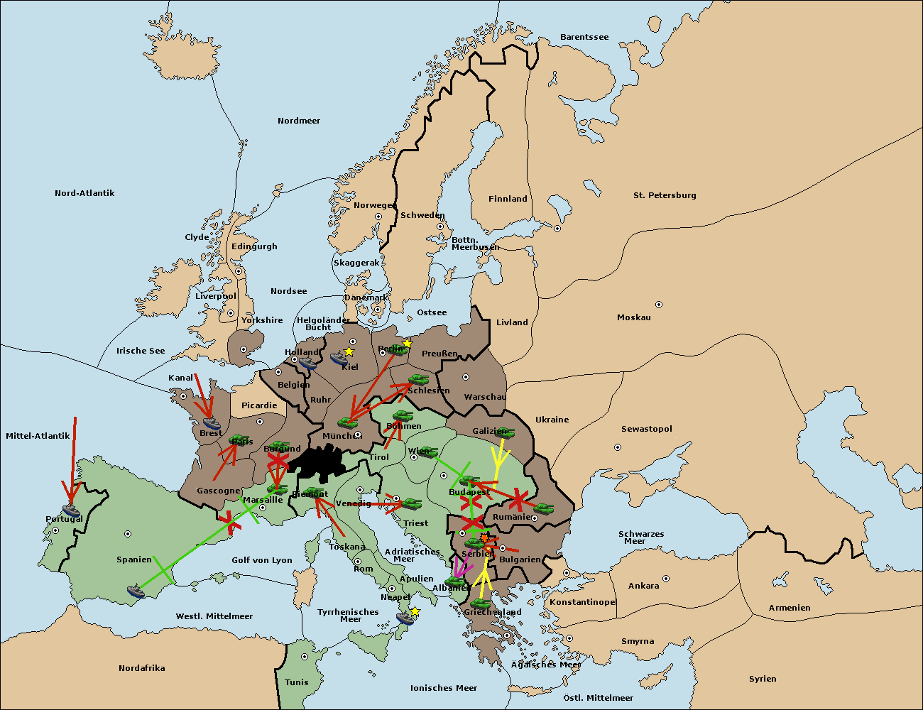• Die Flotte in Spanien (Südküste) support move nach Marseille von Piemont.