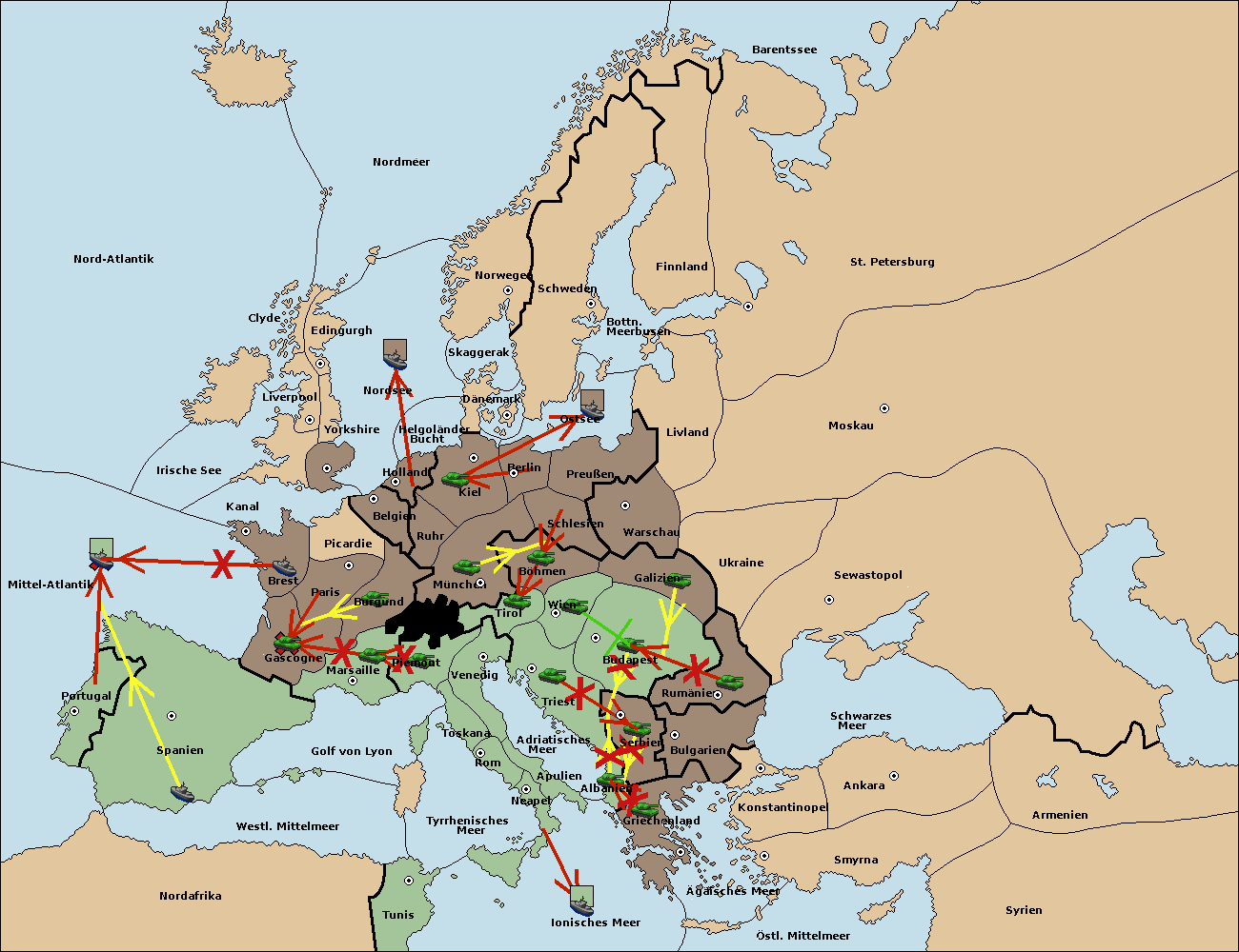 • Die Armee in Budapest support move nach Serbien von Triest. (gescheitert)