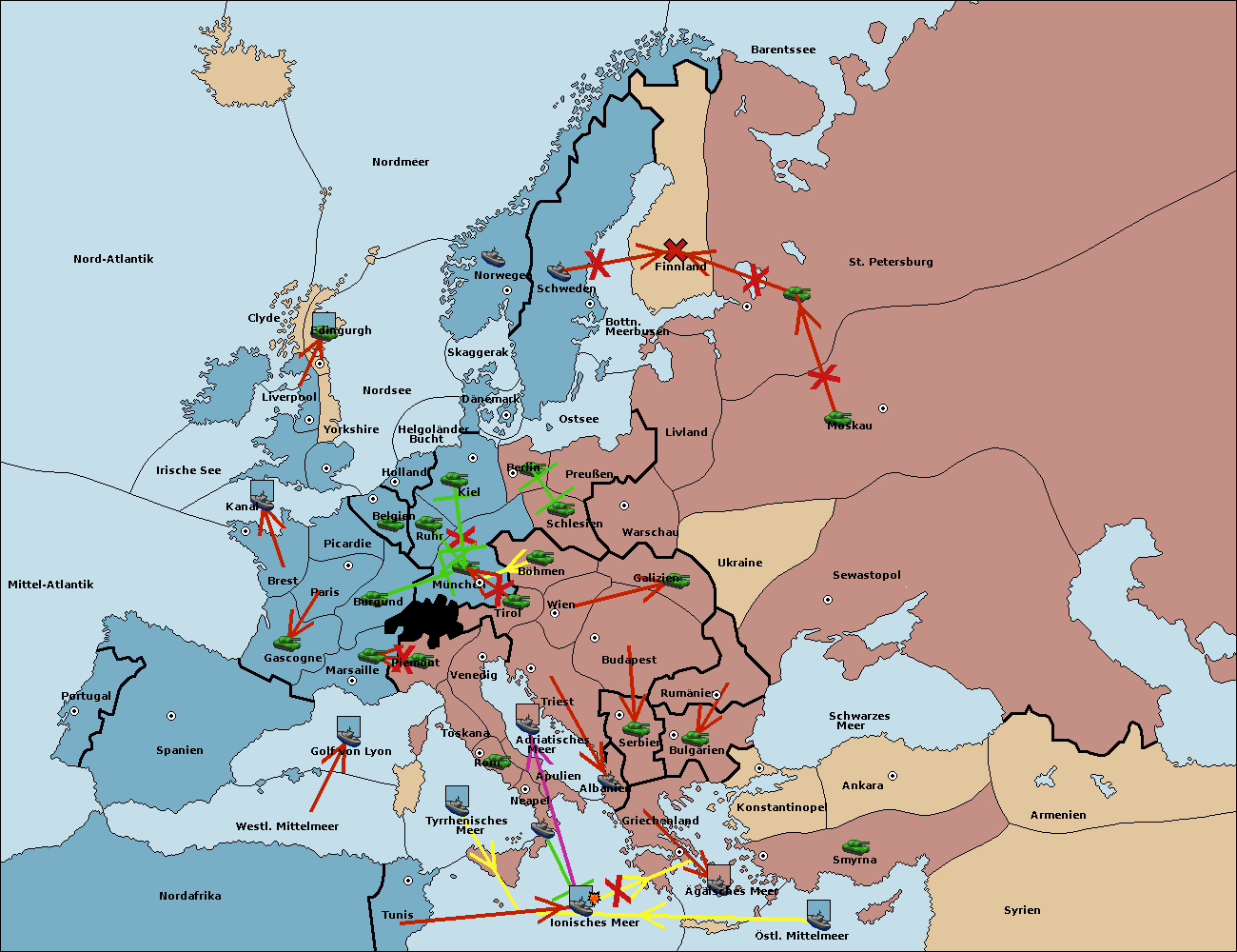 • Die Flotte in Tyrrhenisches Meer support move nach Tunis von westl. Mittelmeer.