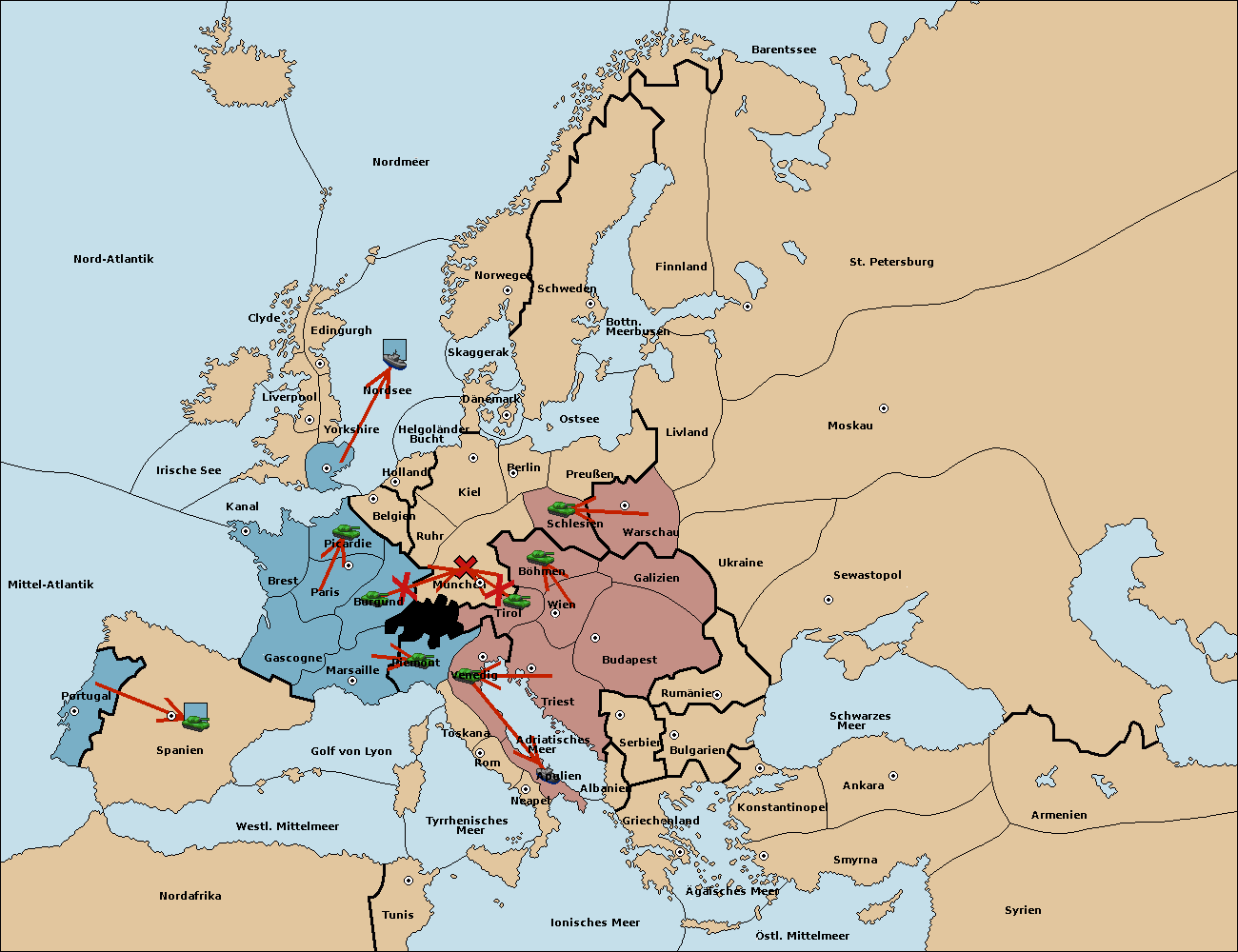 • Die Armee in Böhmen move nach München.