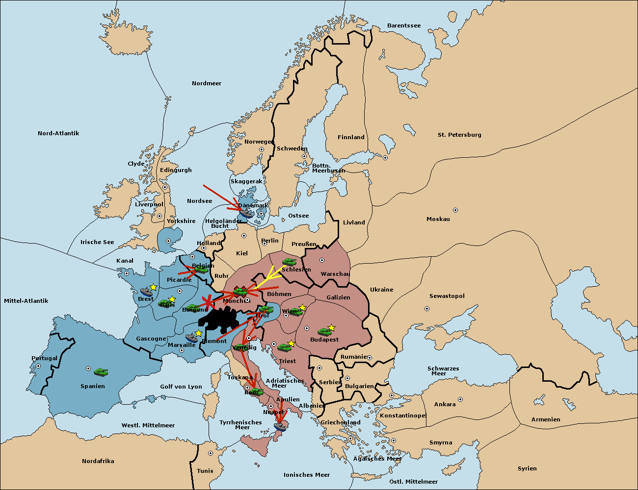 • Die Armee in Burgund move nach München. (gescheitert)