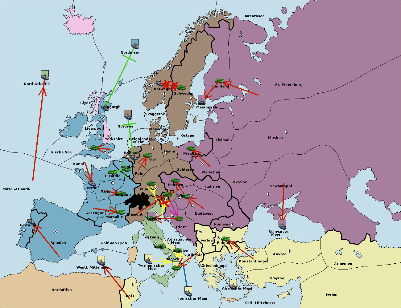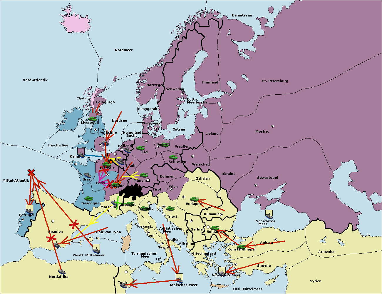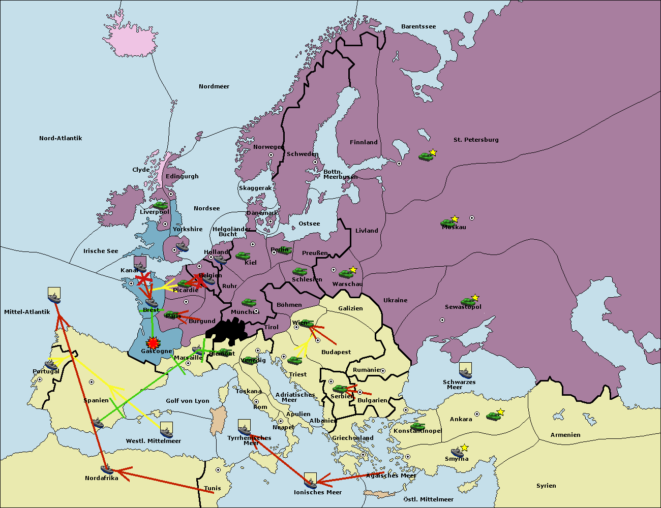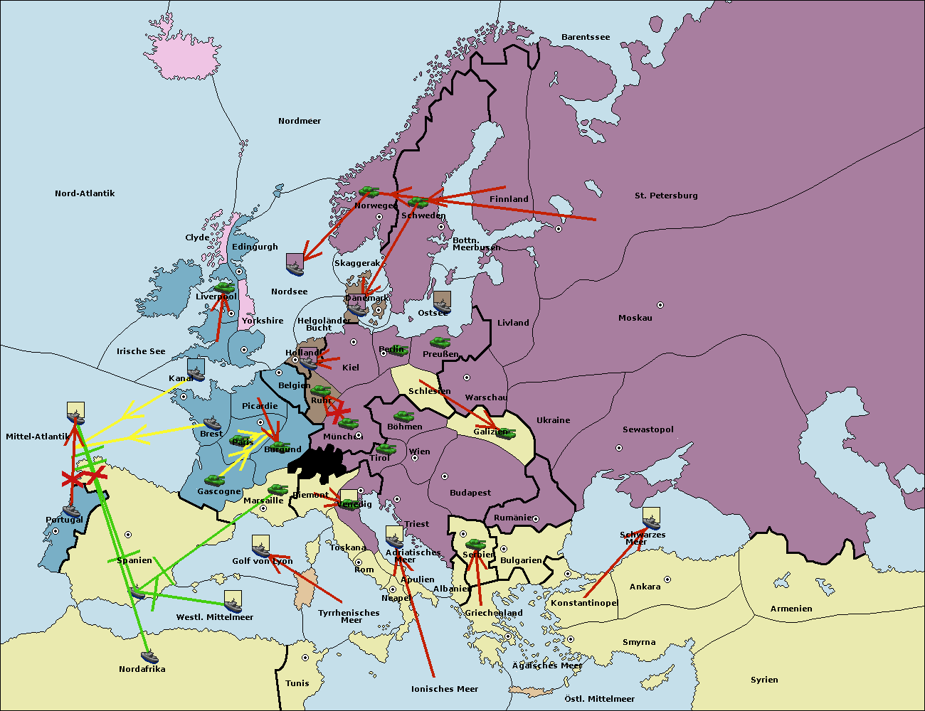• Die Flotte in Nord Afrika support move nach Mittel-Atlantik von westl. Mittelmeer.