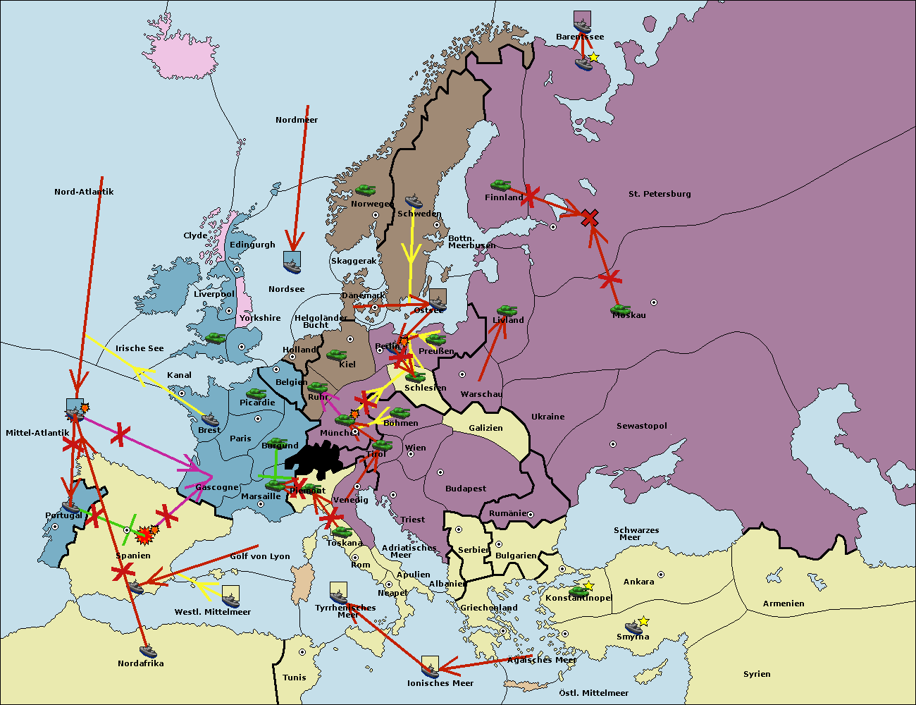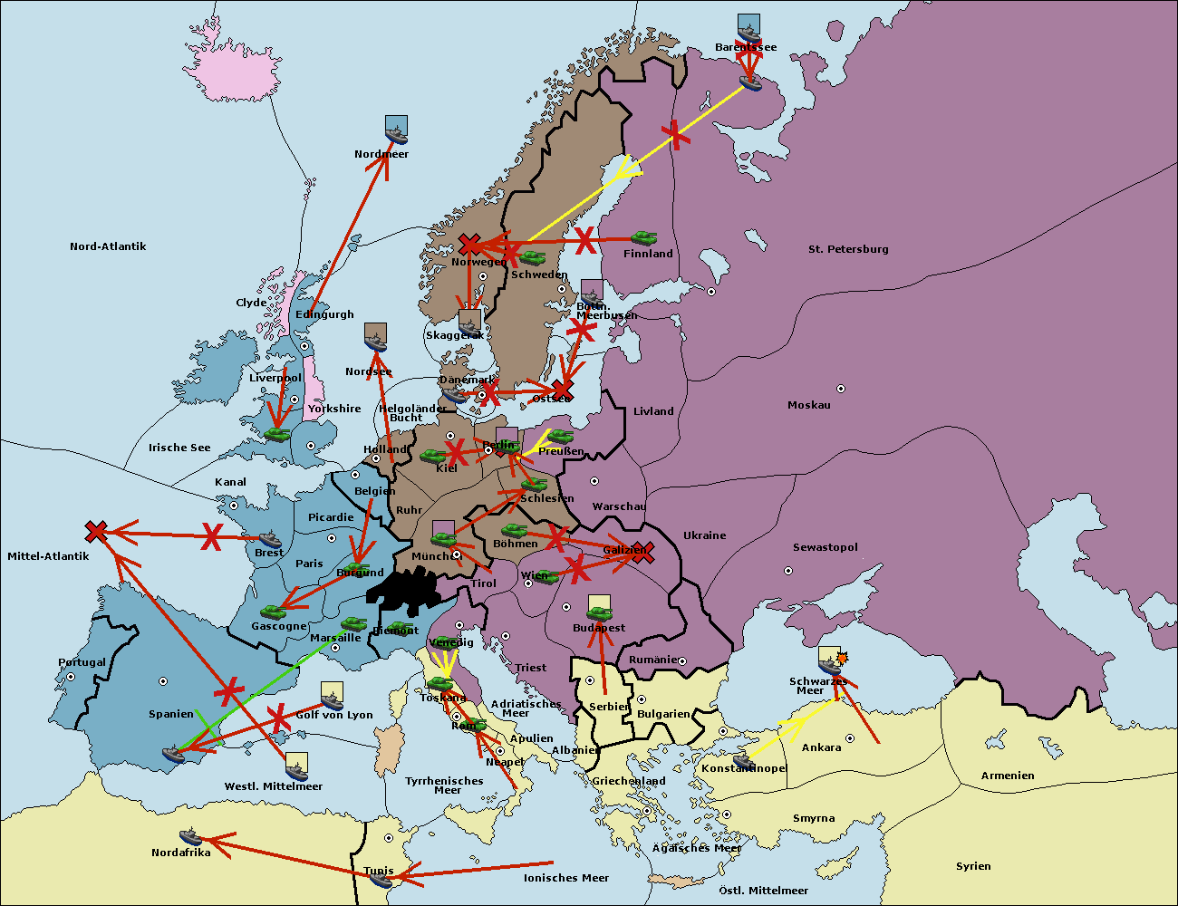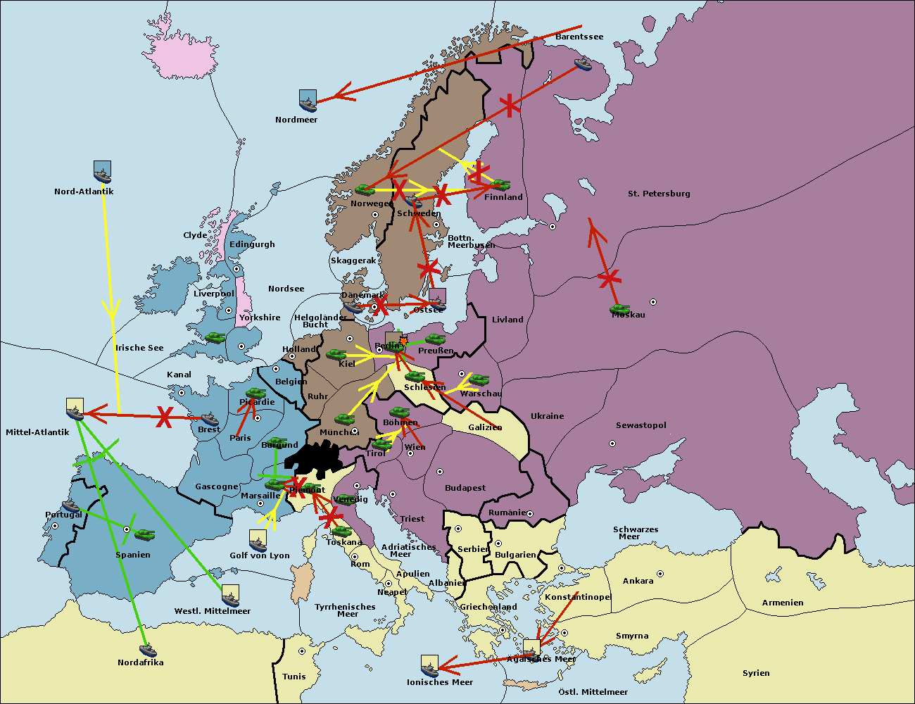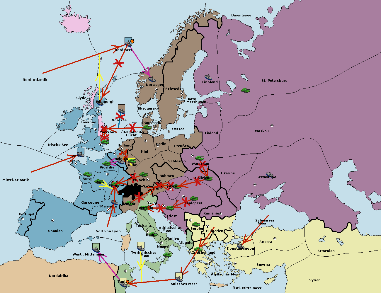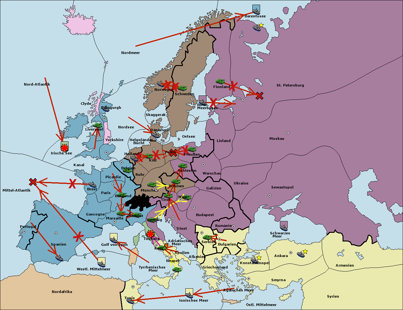 • Die Flotte in Nord Afrika support move nach Mittel-Atlantik von westl. Mittelmeer.