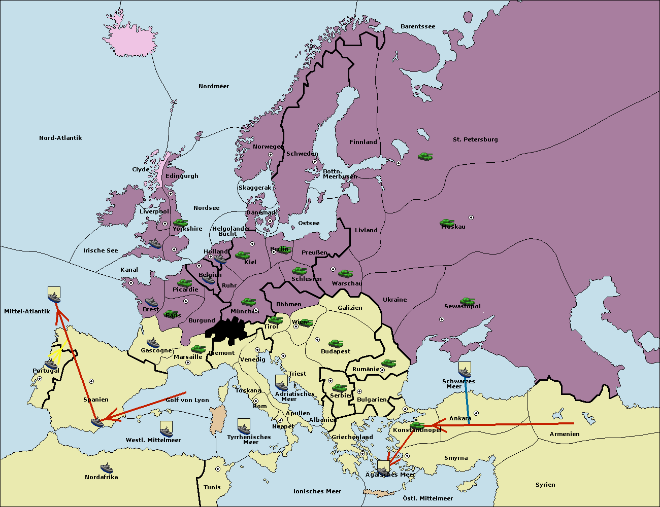 • Die Flotte in Schwarzes Meer support move nach Bulgarien von Konstantinopel.